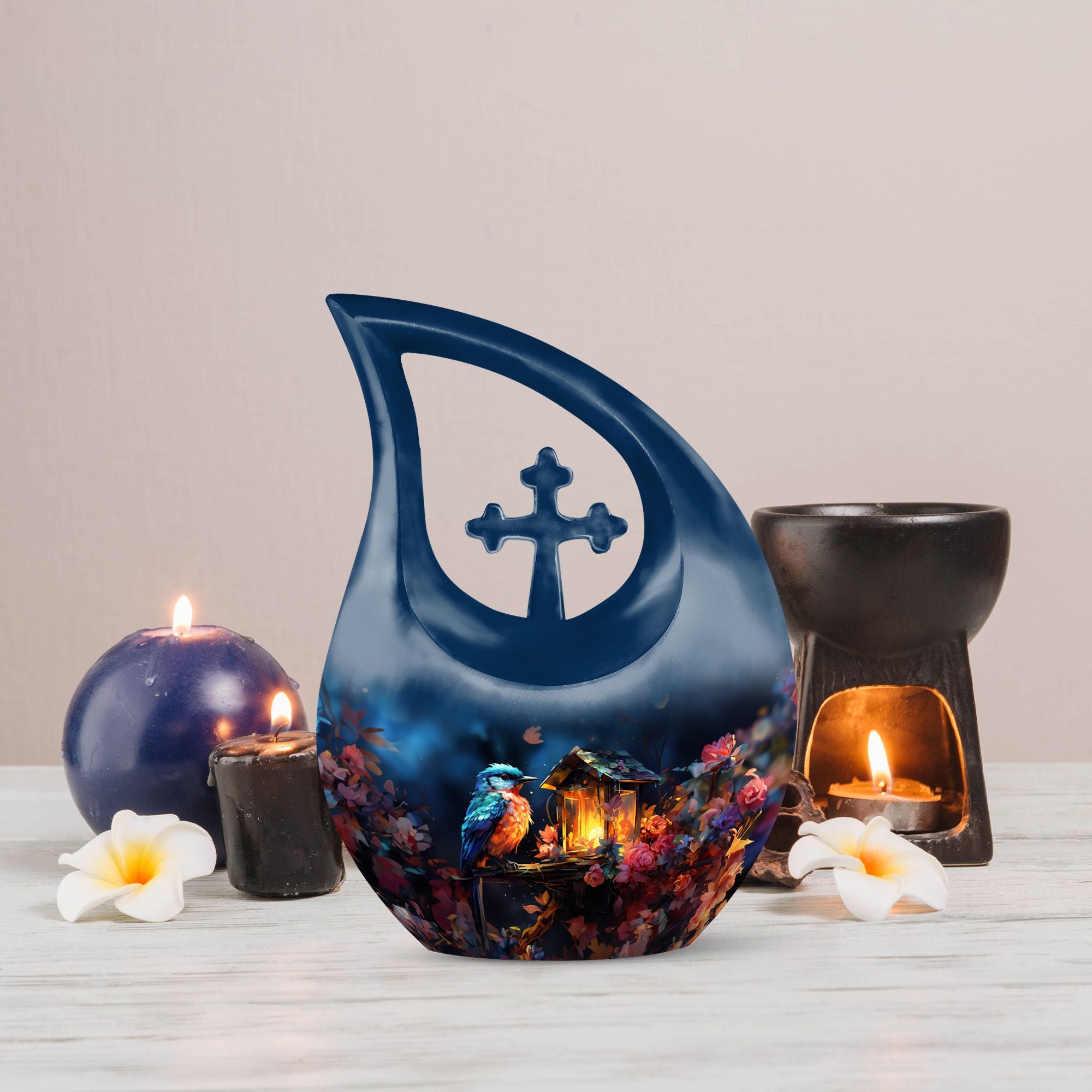 This Bird Nest Cremation Urn for Funeral offers a gentle, nature-inspired tribute to honor a cherished life. With its floral detailing and symbolic nest motif, it provides a comforting resting place and is ideal for families seeking a meaningful large urn for ashes for women or a dignified option for remembrance.