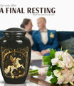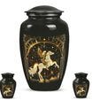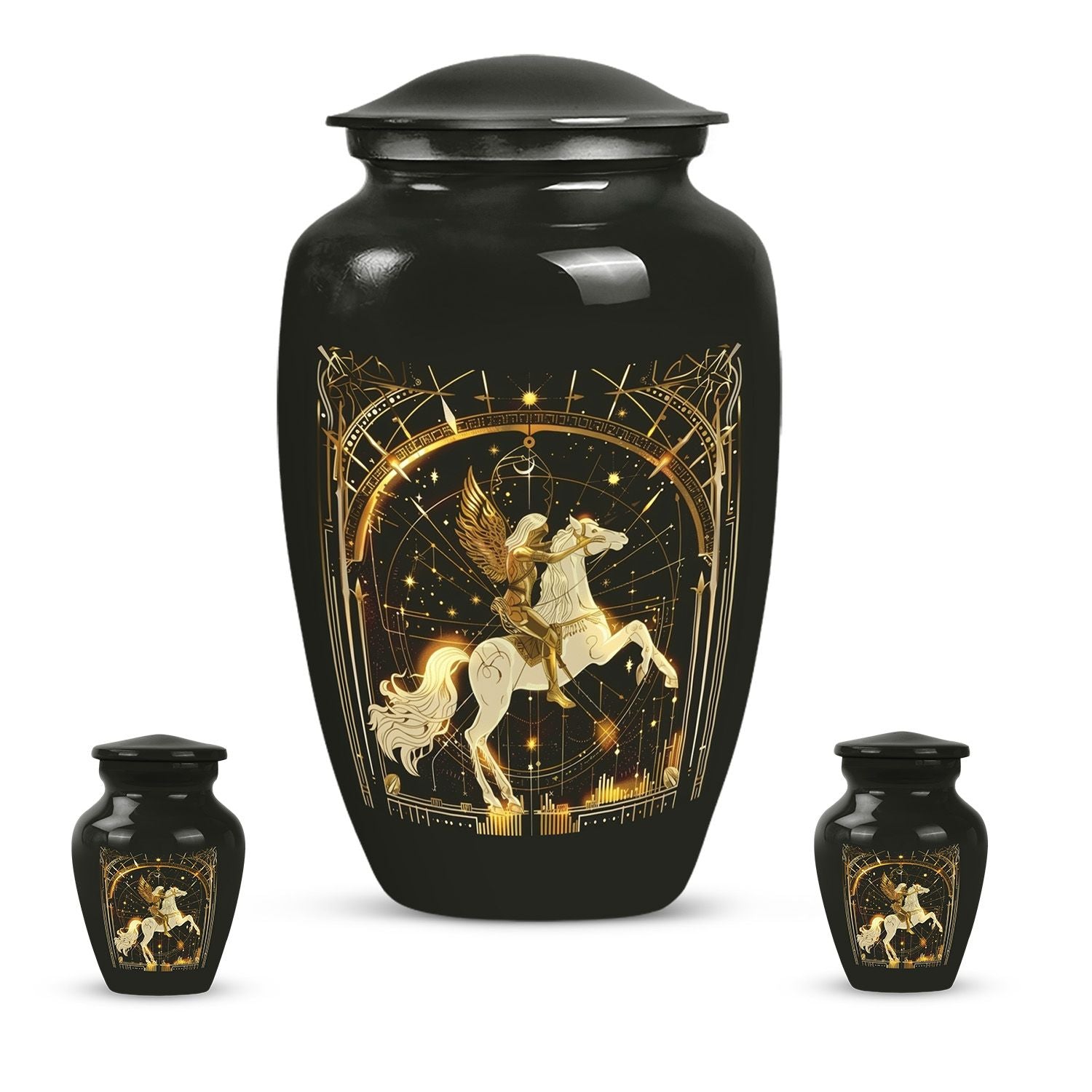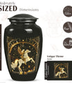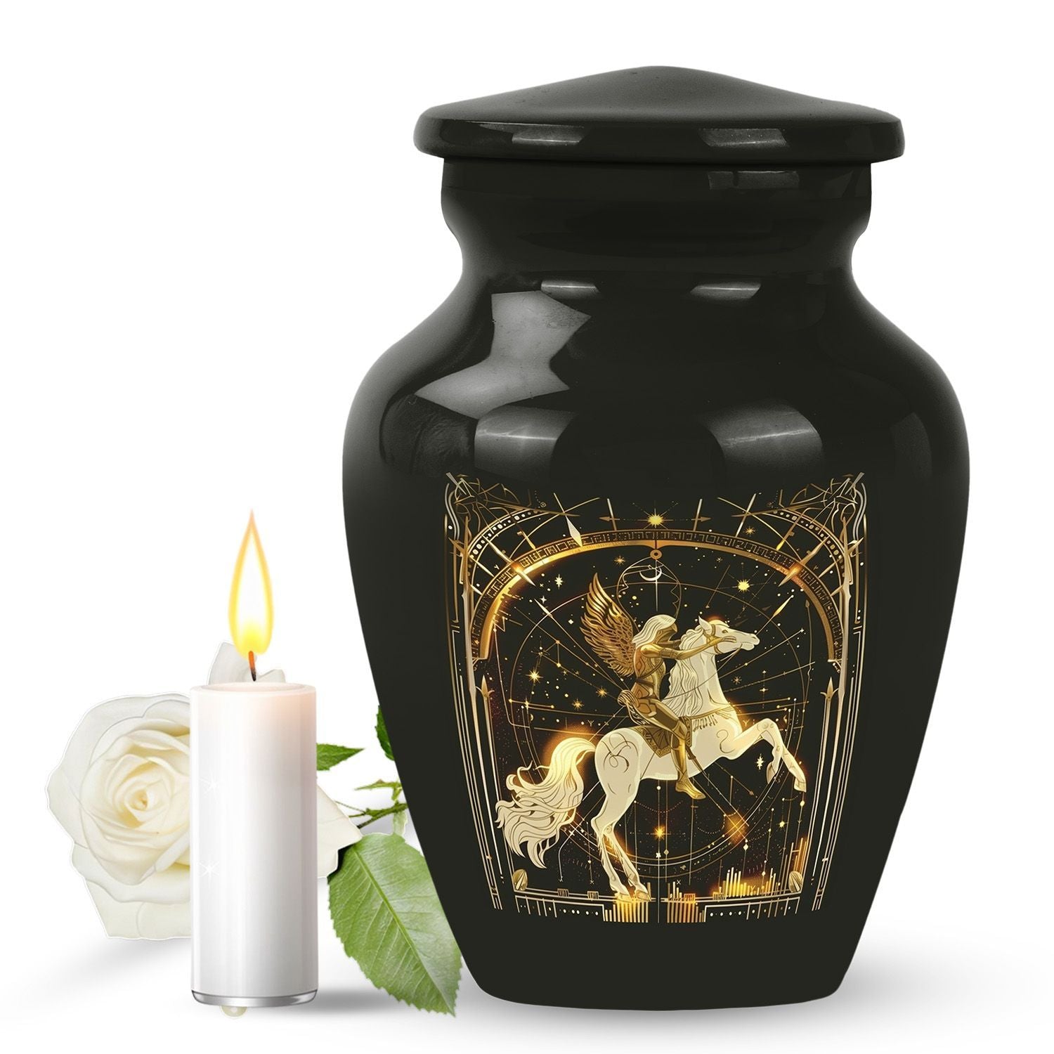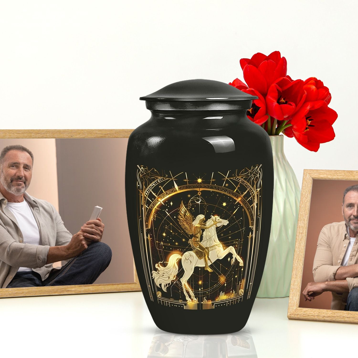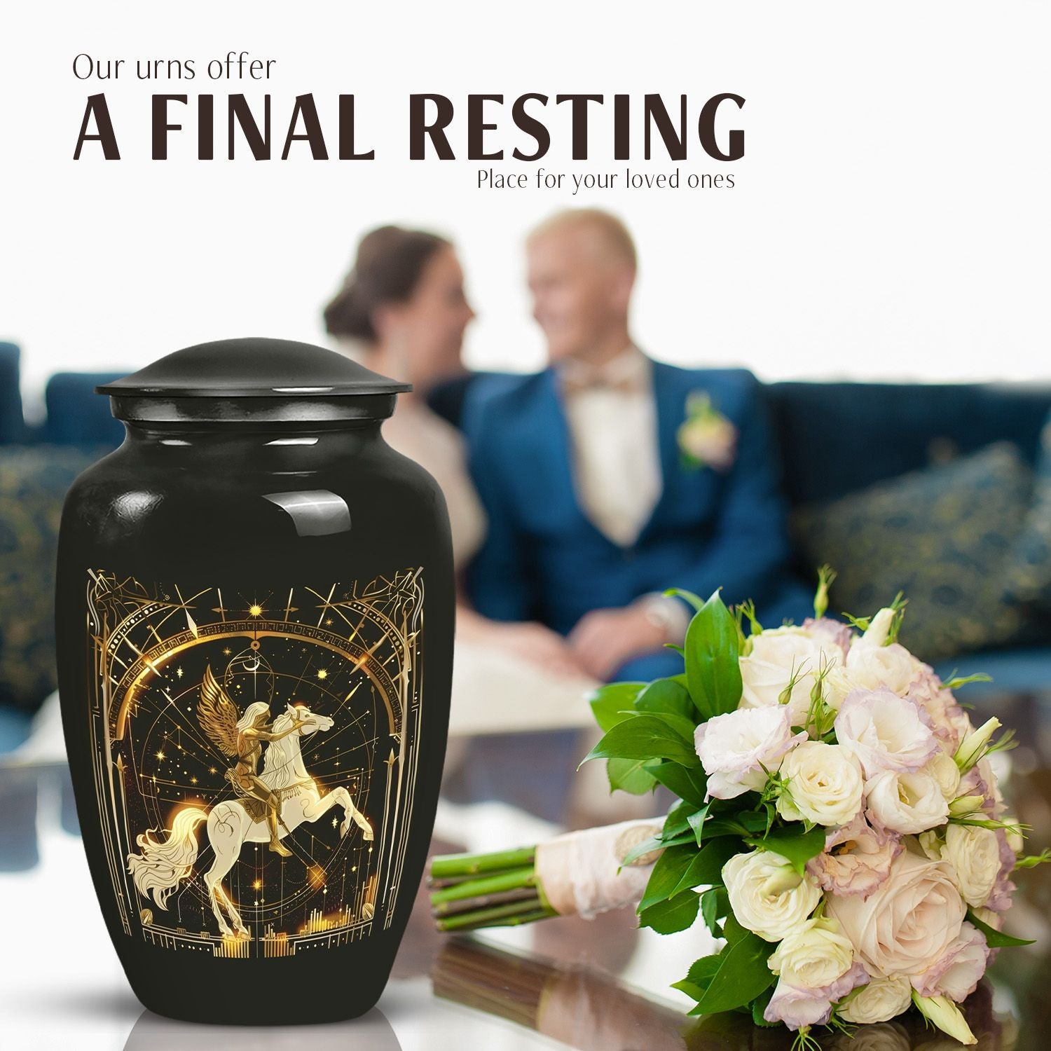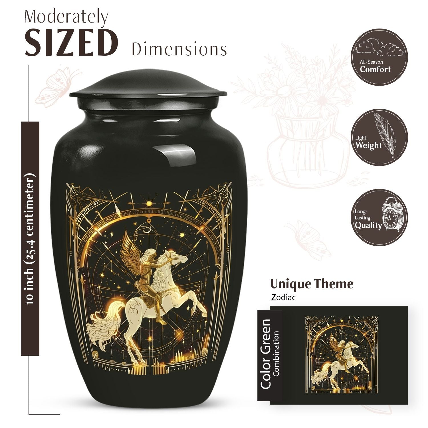 Immerse in serene reverence with our artistic Zodiac Urn, tastefully designed for adults and seniors. This 10-inch burial large urn transcends regular memorial ceremony supplies with its abstract theme that connects us to the profound mysteries of our universe. Meticulously crafted from high-grade aluminium, it exudes an enduring allure while ensuring lasting durability. Weighing a considerable 3.3 pounds, this cremation urn boasts a 200 cubic inch capacity that gracefully accommodates remains of a loved one. The package includes a velvet pouch, adding an extra layer of protection for the precious contents. For a more meaningful tribute, customers have the option to personalize our urns with engraved names. Let the timeless elegance of our Zodiac Urn honour and celebrate the memory of the departed while resonating with your search for memorial urns for ashes adult male, funeral extra large urn, and cremation urns for adult ashes women.