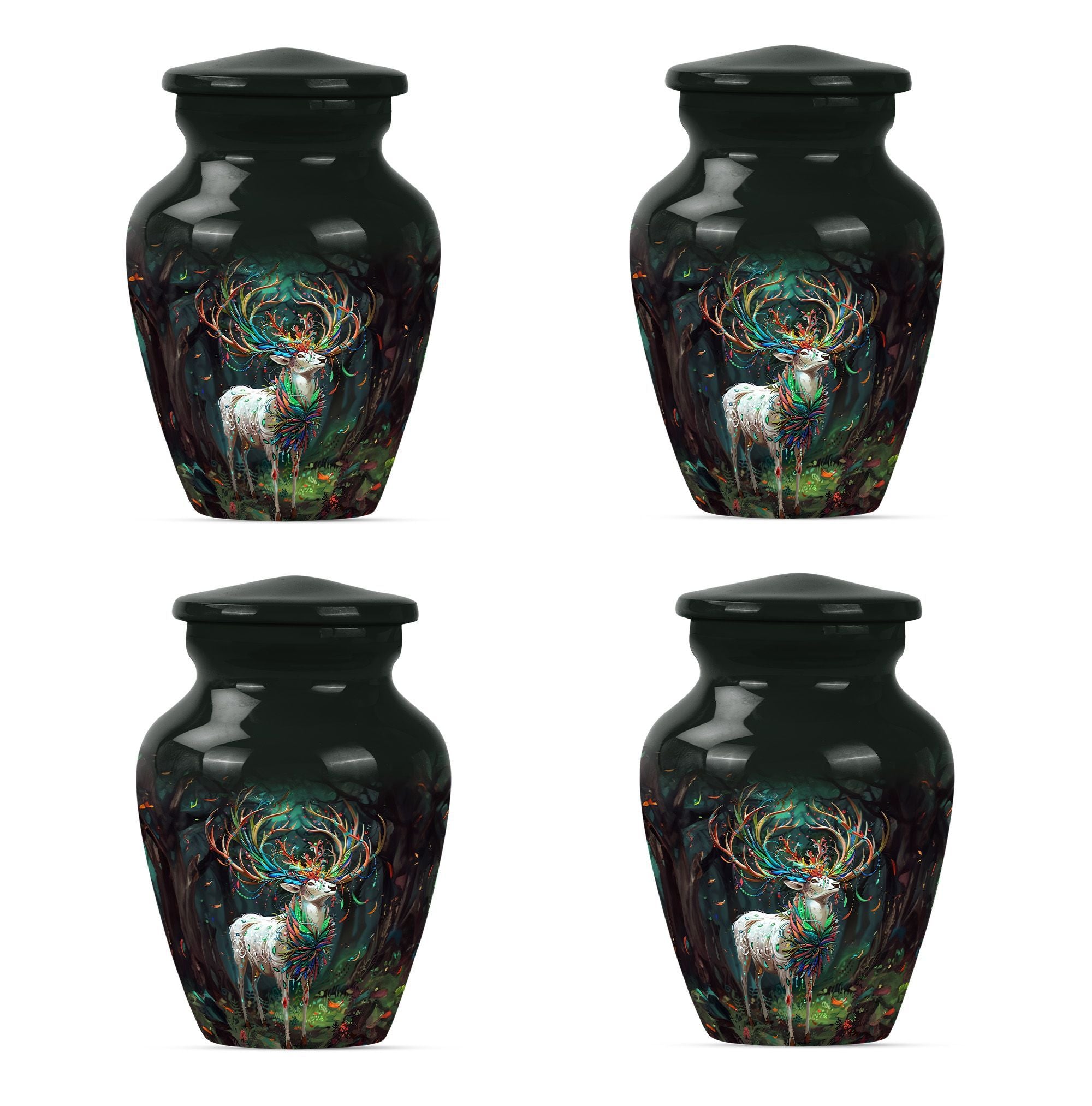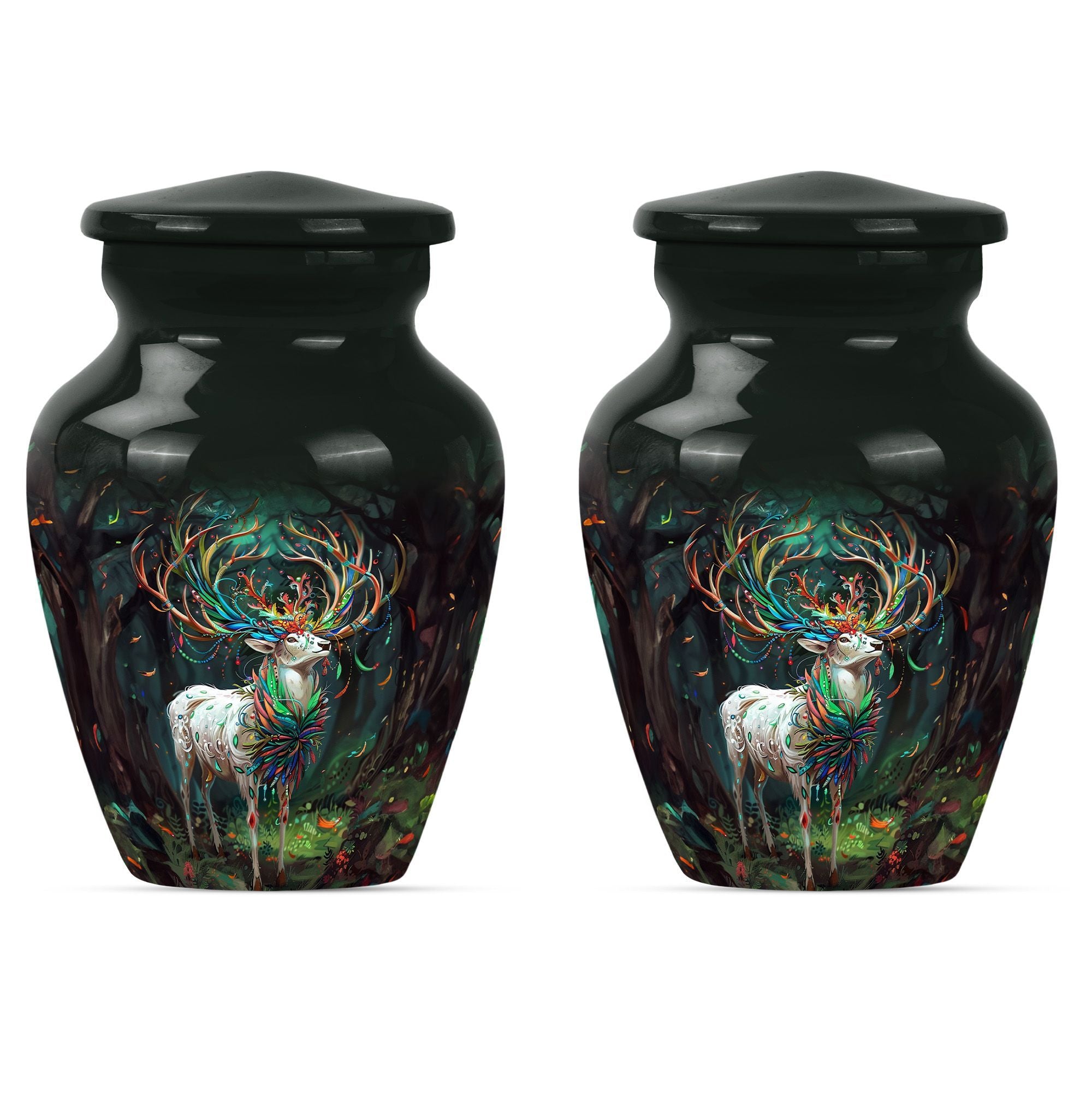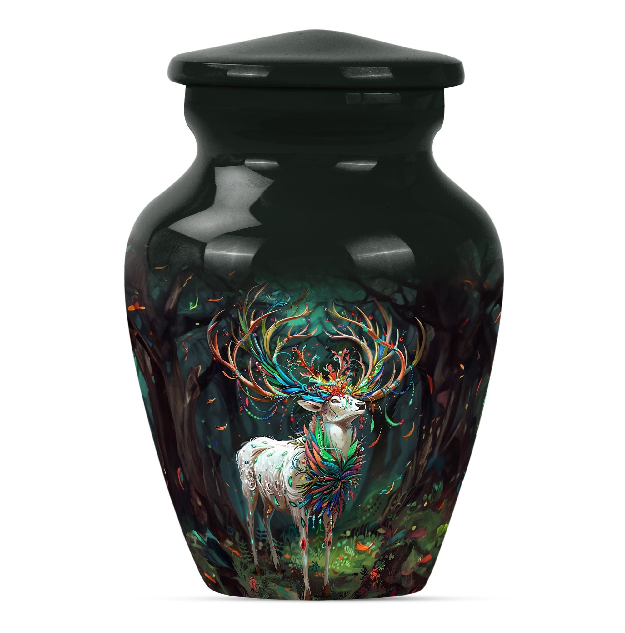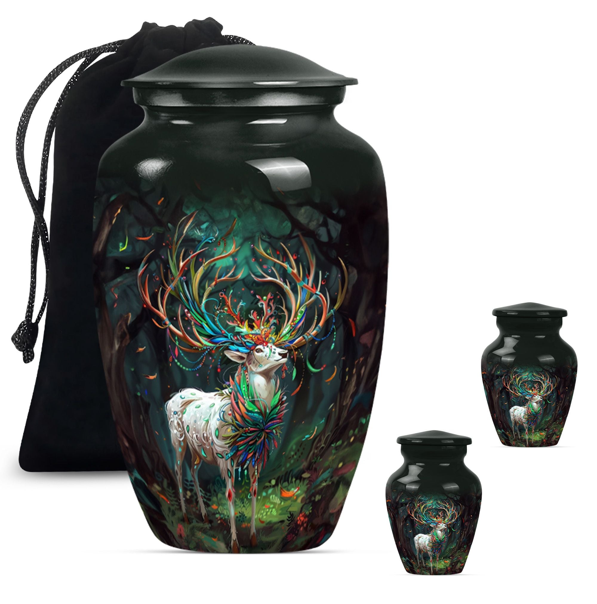Introducing the Deer Cremation Urn, an exquisite option for preserving the ashes of your loved one. This 10-inch large Urn, made with superior aluminium, reflects a traditional touch with its classic urn design. The theme is 'Wolf Howling', adding an element of natural serenity to the urn. The urn is not only distinctly designed but also functional with a capacity of 200 cubic inches. With a weight of 3.3 pounds, it is easy to handle, facilitating a smoother memorial ceremony. A notable feature of this cremation urn is its customization option. This allows the buyers to personalize it with engraved names, making it a unique, heartfelt tribute. The urn also comes with a velvet pouch for a dignified containment of ashes. Step away from the ordinary with this deer urn as you honor the memory of your beloved. Perfect for those searching for 'burial funeral urns for adult ashes women' or 'cremation memorial urns for human ashes'. A significant token of remembrance, give them the peace they deserve with our cremation box.