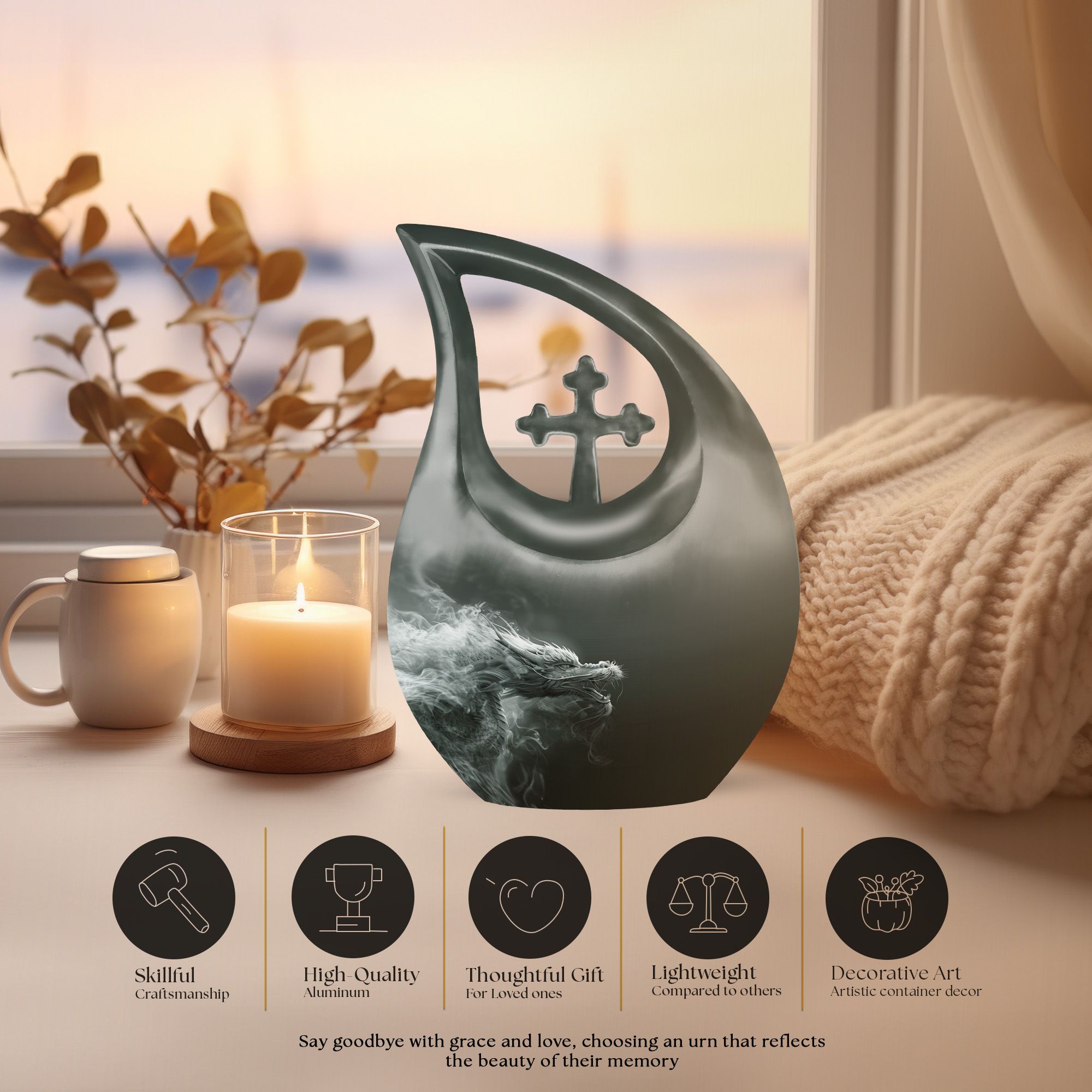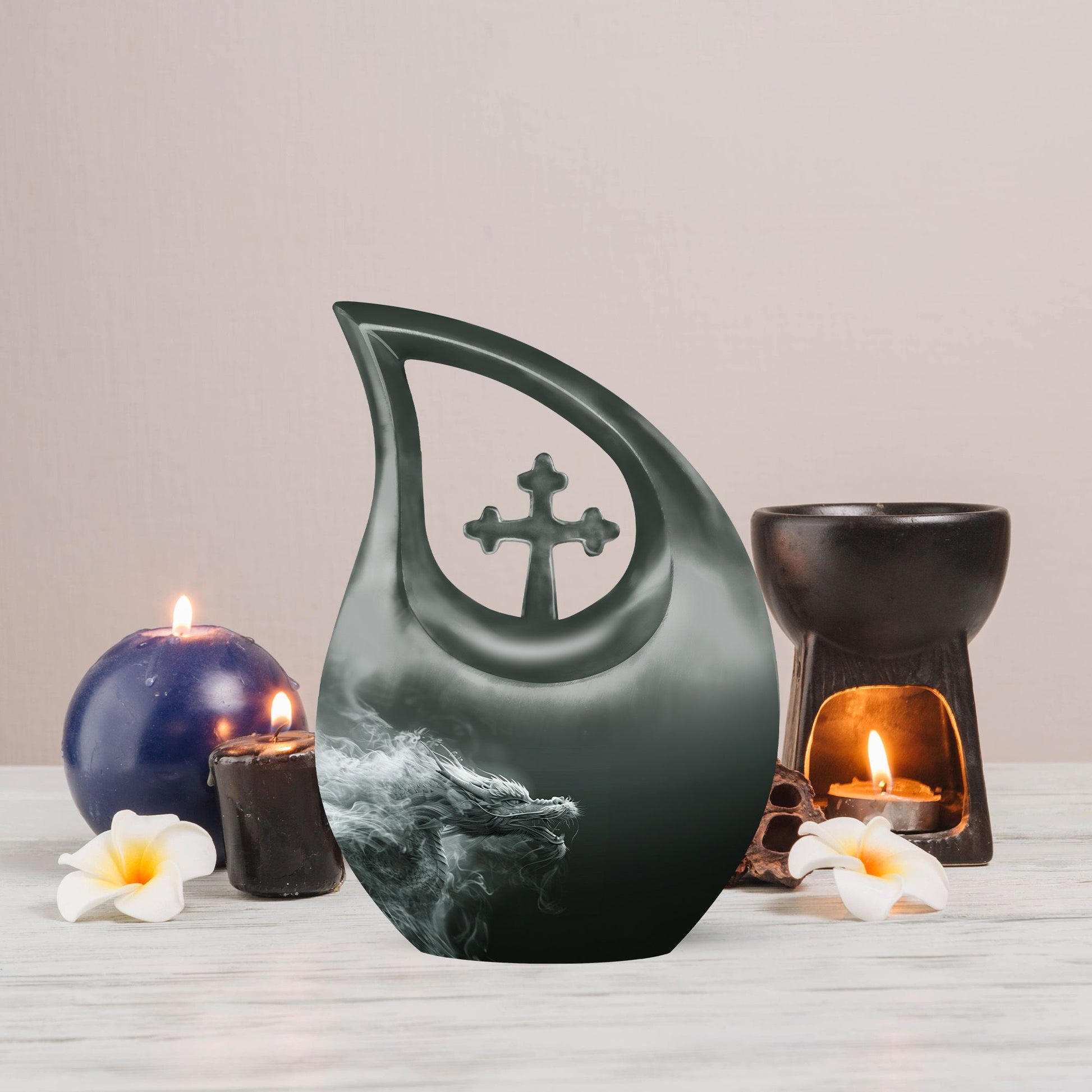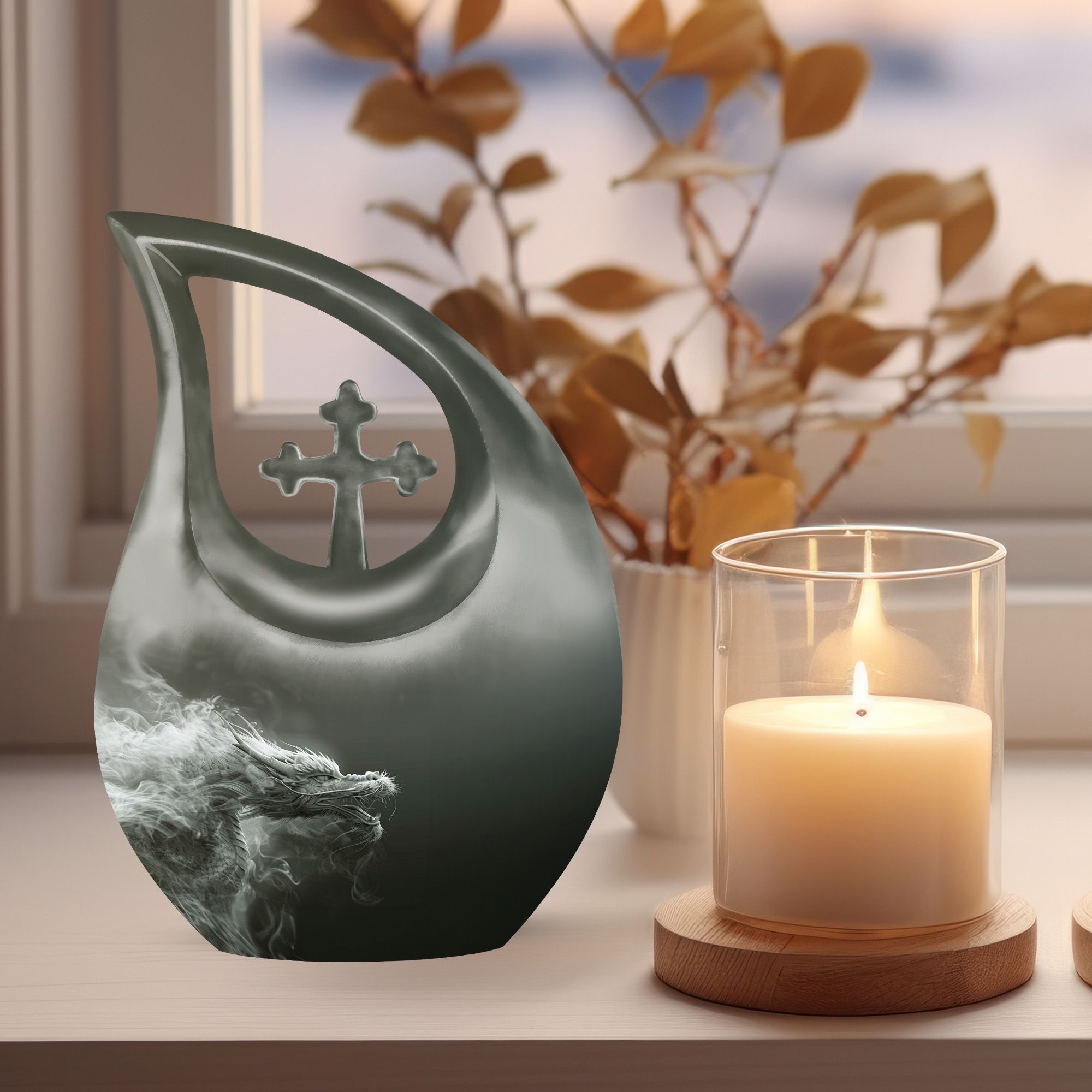 Honor the strength, wisdom, and spirit of your loved one with this Dragon Memorial Urn for Human Ashes, a beautifully handmade tribute crafted for families seeking Cremation Urns Large Adult. This large cremation urn features a bold dragon design symbolizing protection, courage, and eternal presence — a powerful representation of a life that left a lasting legacy.