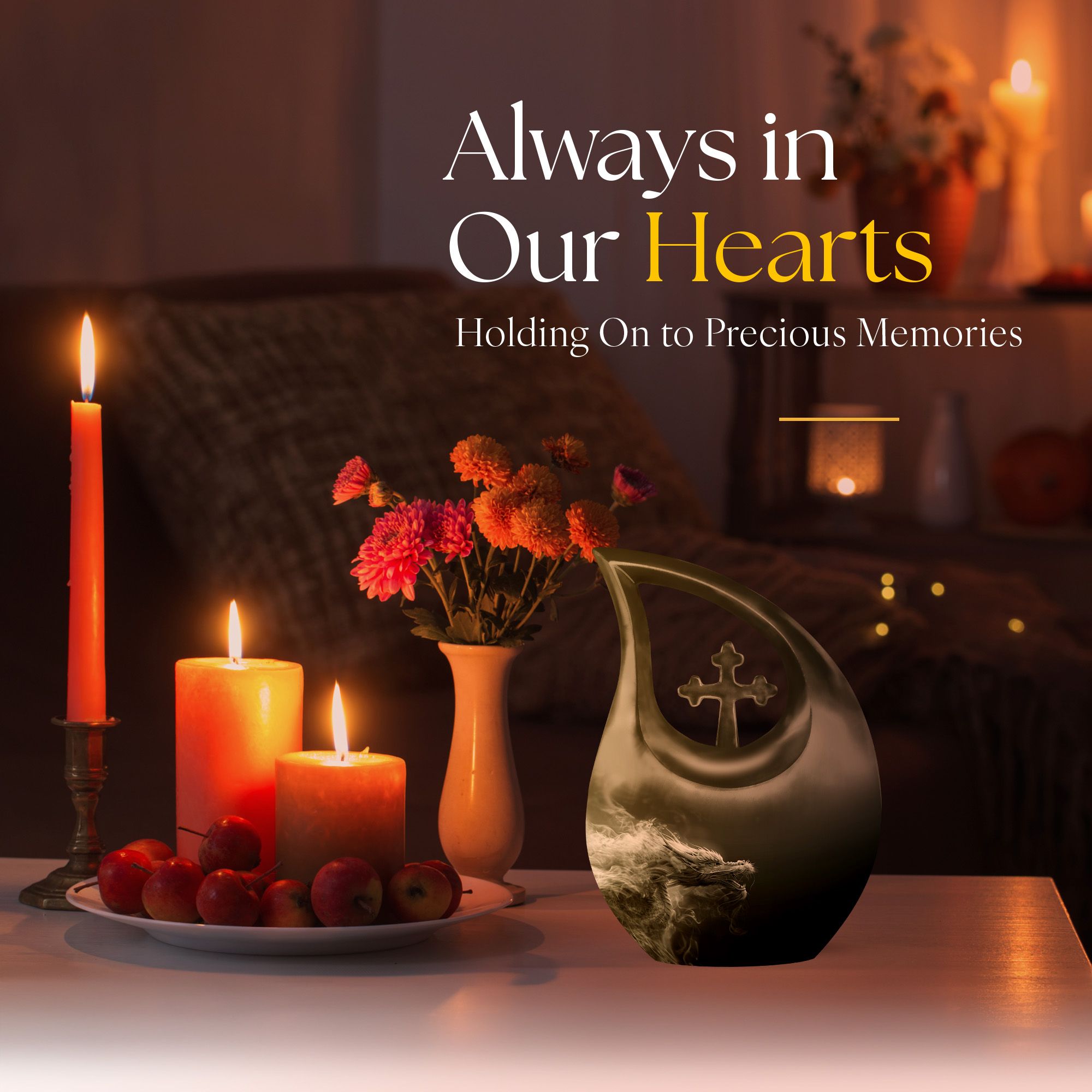 This striking cremation urn blends symbolism, craftsmanship, and secure functionality — giving your loved one the honorable resting place they deserve.