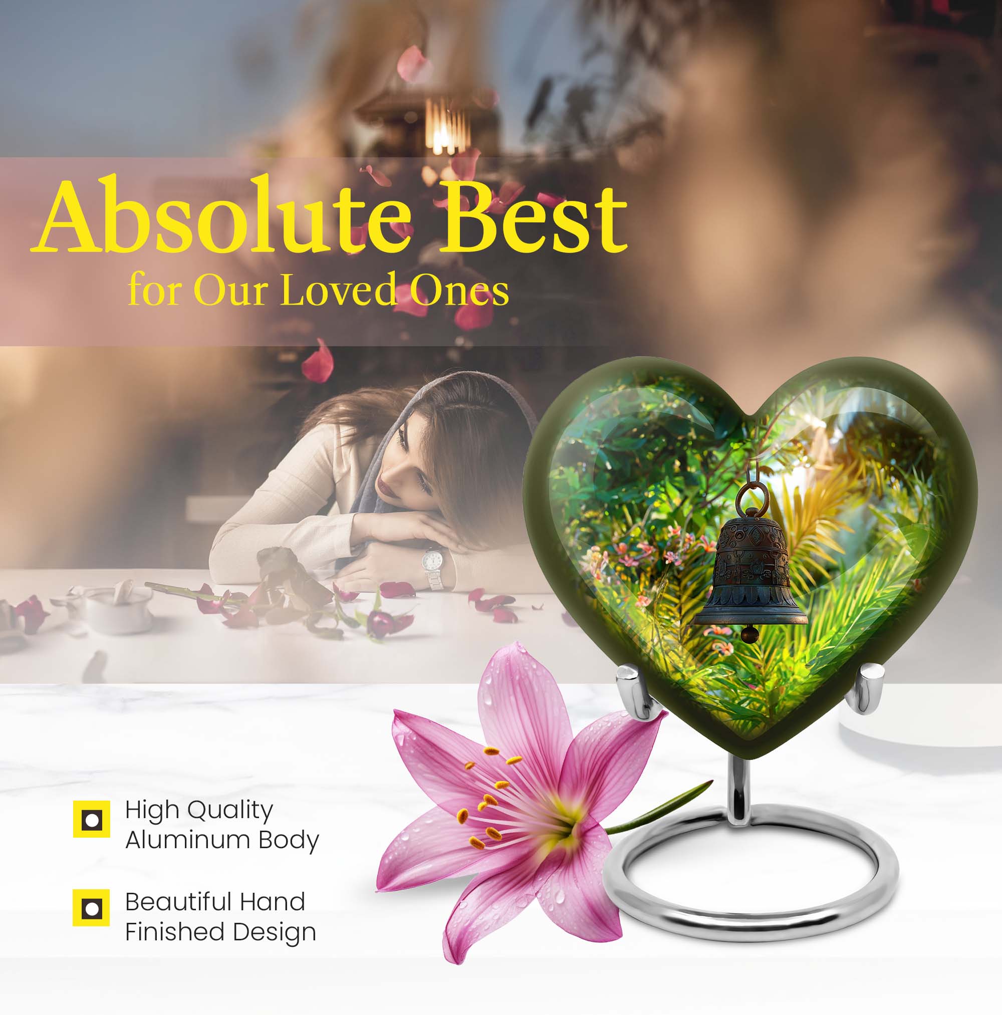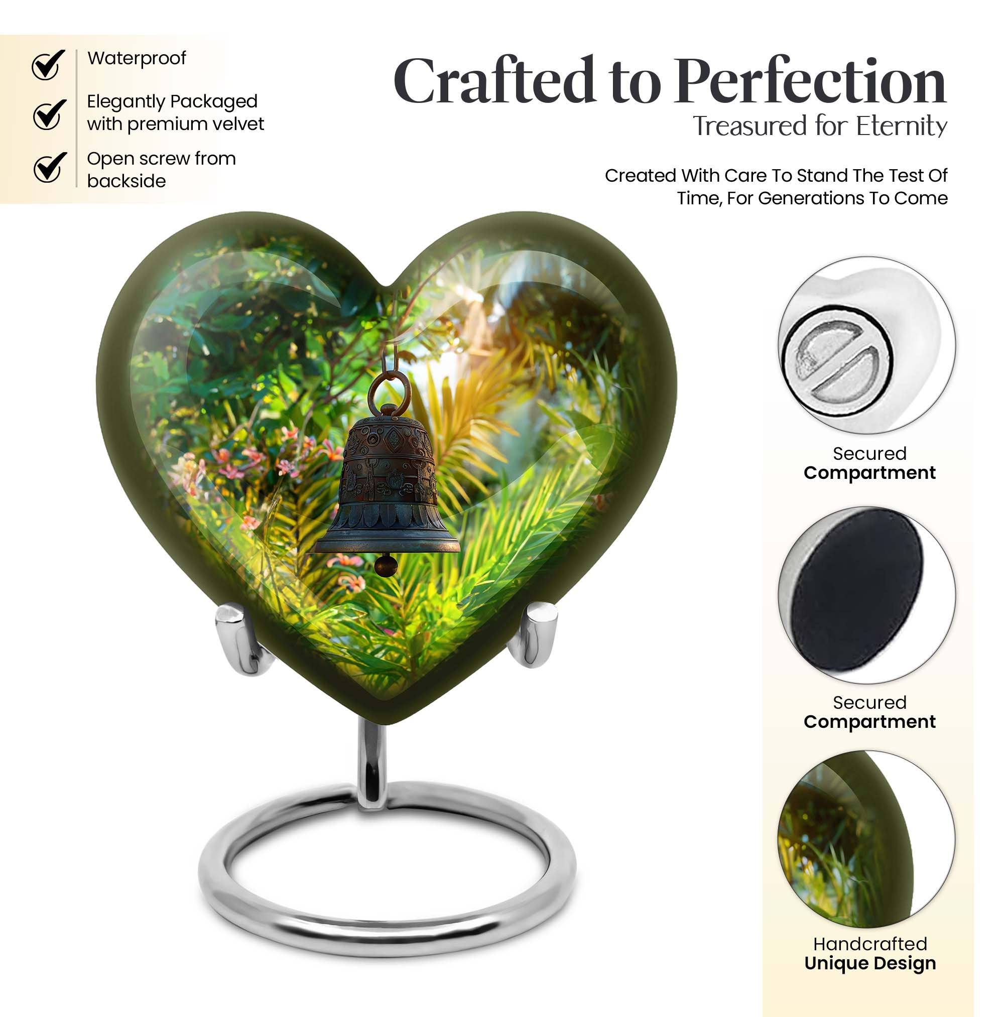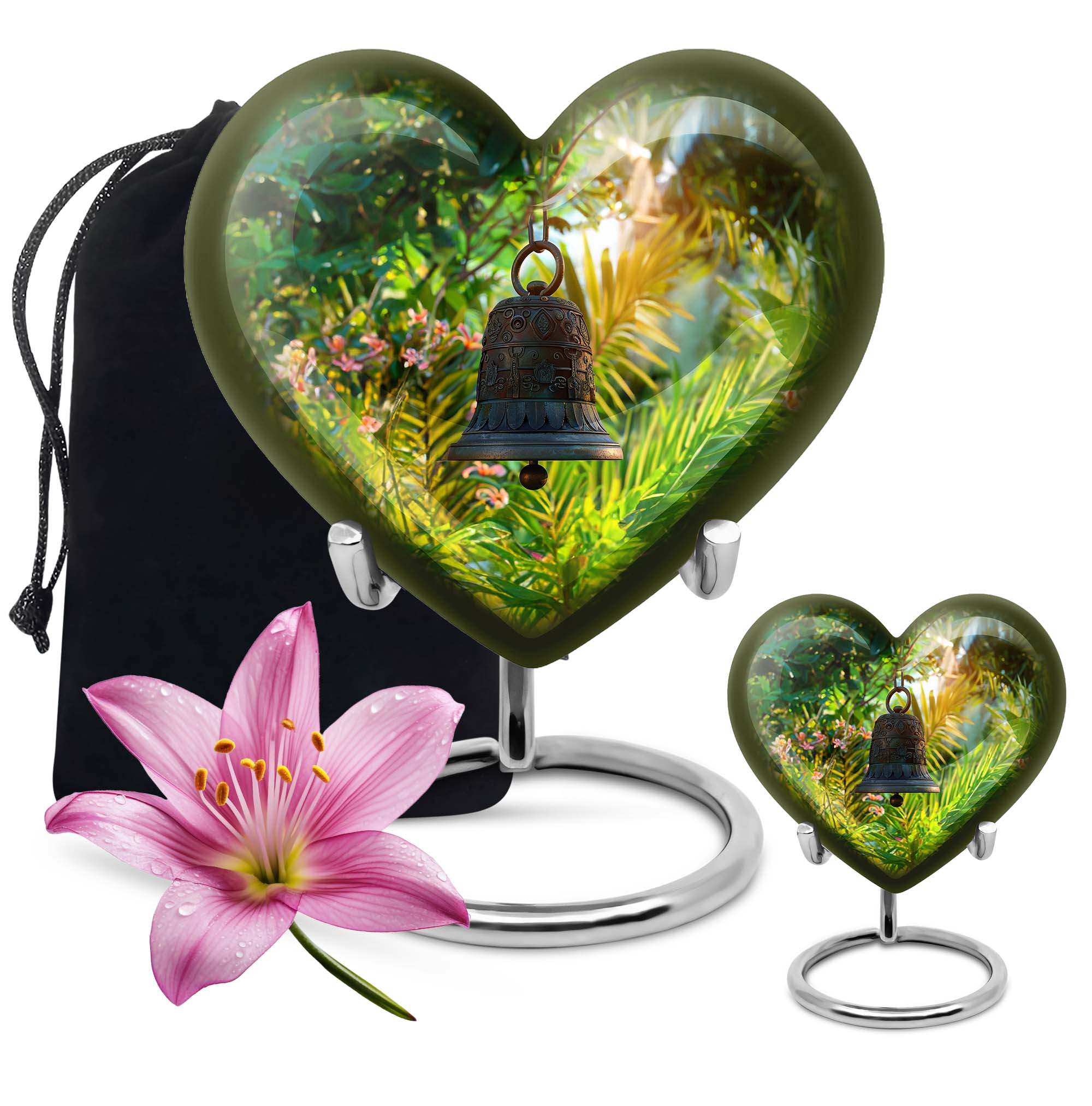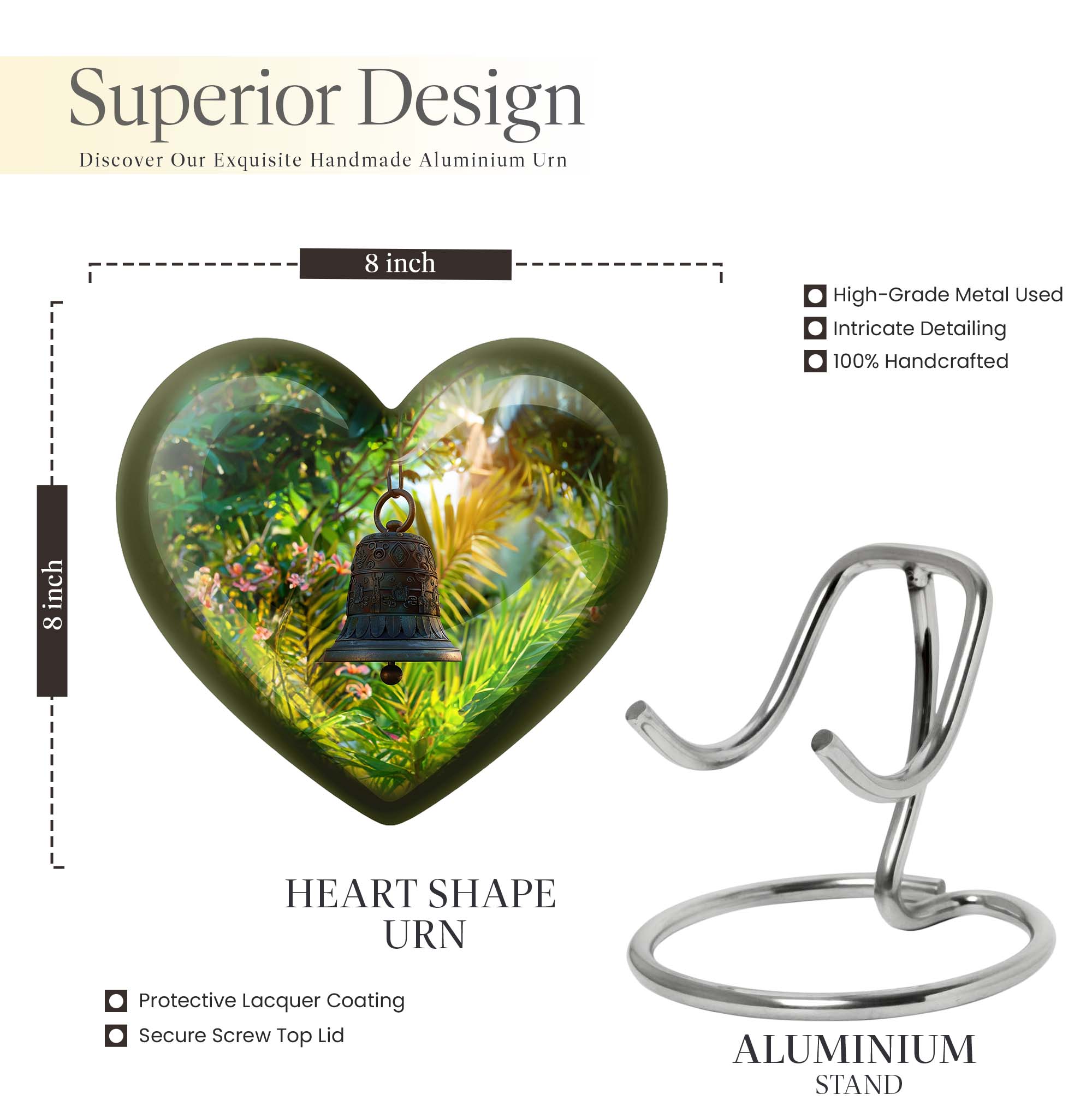 Cast a soothing shadow on your remembrance with this sublime abstract-themed Memorial Urn. Uniquely crafted from enduring aluminum, this Bell Urn allows you to preserve the essence of your beloved in a heartfelt manner. Its sturdy composition, weighing 3.3 pounds, coupled with its expansive capacity of 200 cubic inches, offers an assured resting place for your dear one. Towering at a serene height of 10 inches, this large urn lends itself as a respectful tribute suitable for adult men and adults, promising you the comfort of a loving care. The urn comes with an option to personalize with engraved names, further strengthening your bond with the departed. Adding value to your keepsake experience, this urn comes accompanied with a velvet pouch for containment of ashes. Resonate the echo of your devotion with this Memorial Funeral Urn, a quintessential token for memorial ceremonies.
