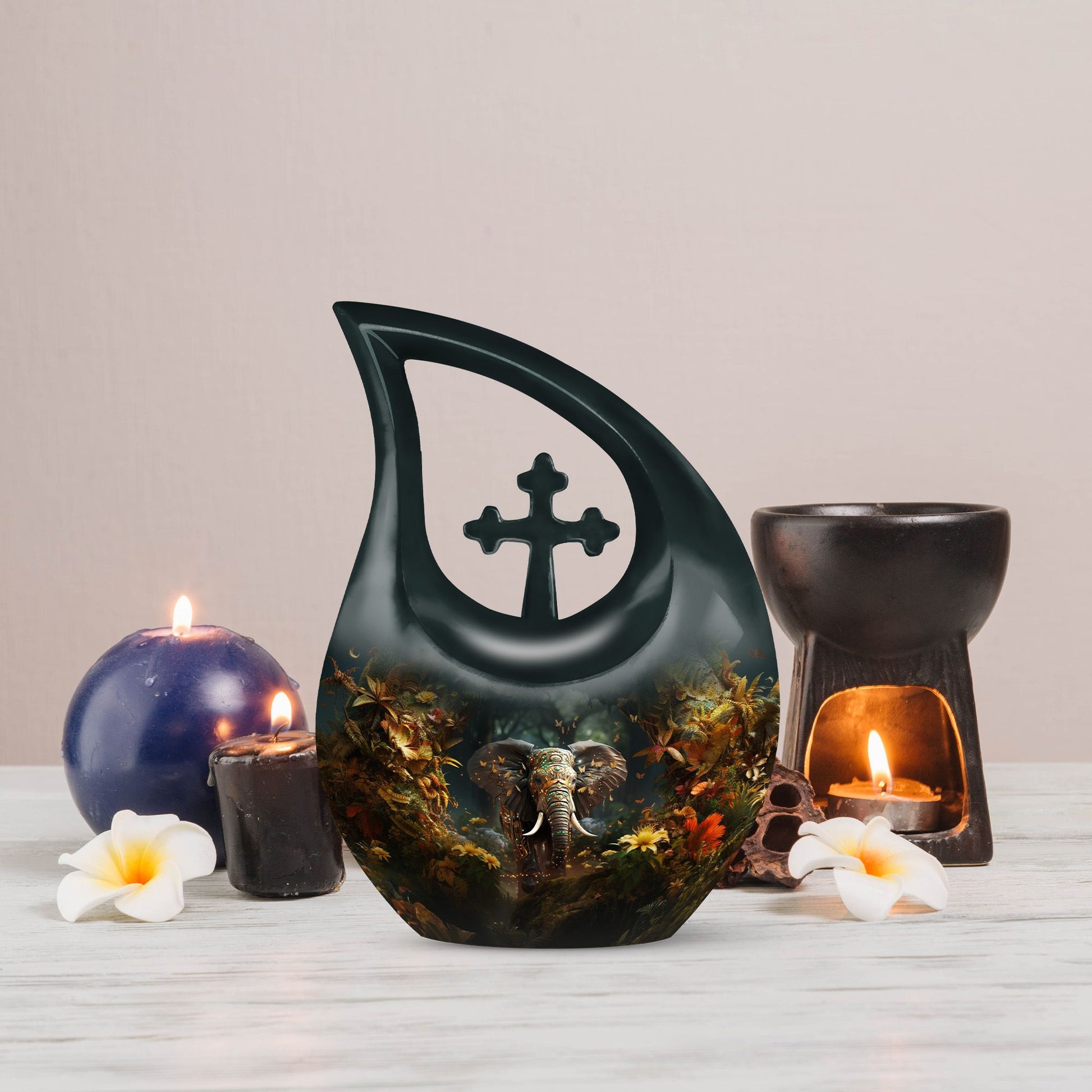 Celebrate the life and legacy of your loved one with this Elephant Cremation Urn for Human Ashes, a dignified memorial symbolizing loyalty, wisdom, and everlasting love. The rich dark tones and elegant teardrop shape convey calm and reverence, making it an ideal choice among urns for human ashes large adult and funeral urns for human ashes adult.