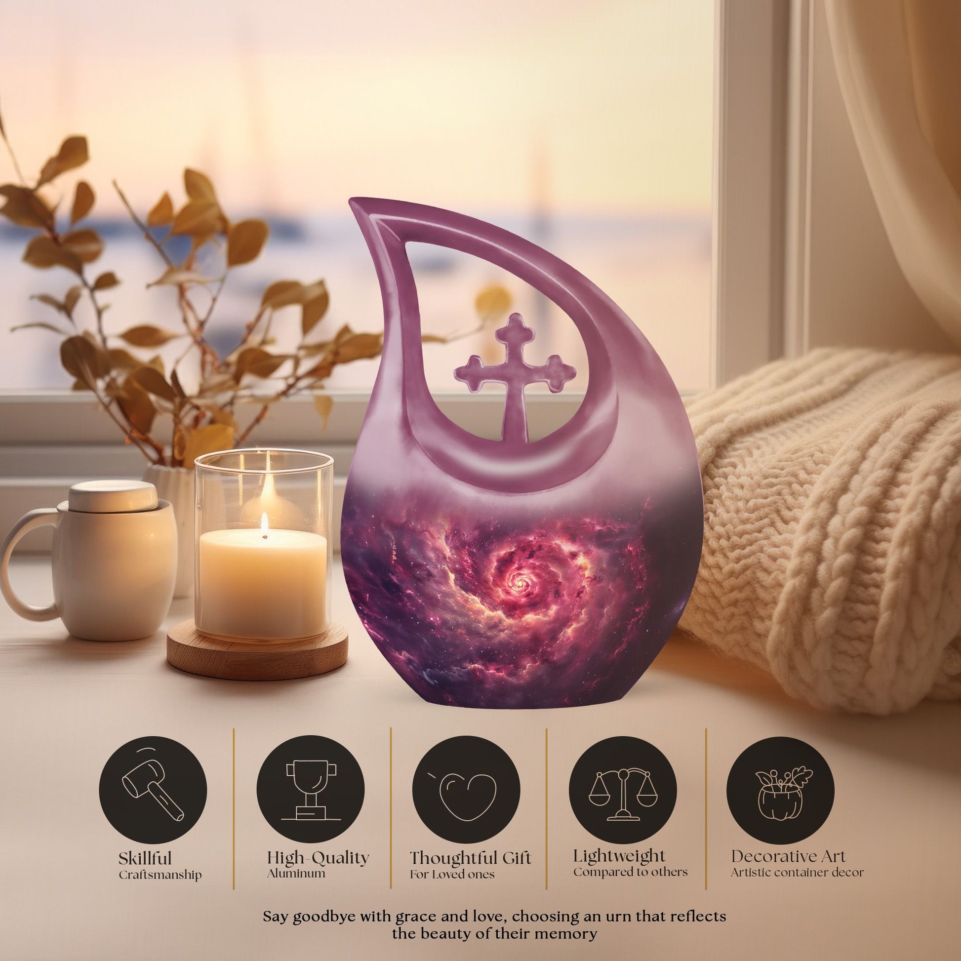 The Galaxy Funeral Urn – Personalised Cremation Urn for Human Ashes offers a serene and cosmic tribute to honor a cherished life. Its swirling galaxy design symbolizes peace, eternity, and a guiding light, making it a meaningful choice for families seeking a beautiful large urn mom or a loving tribute for women.