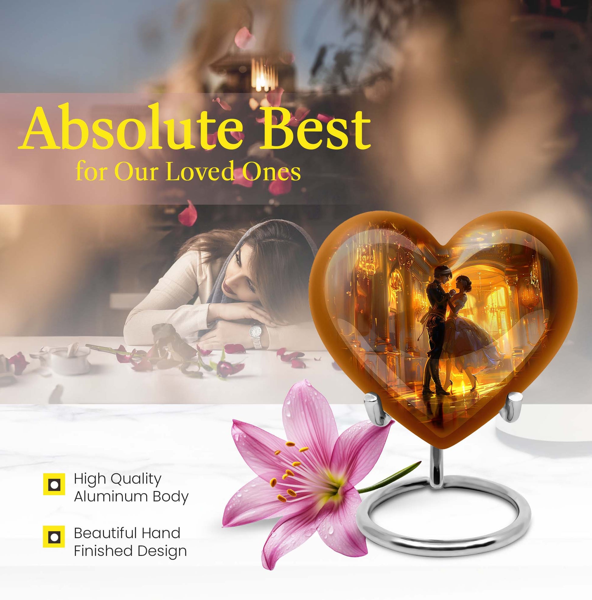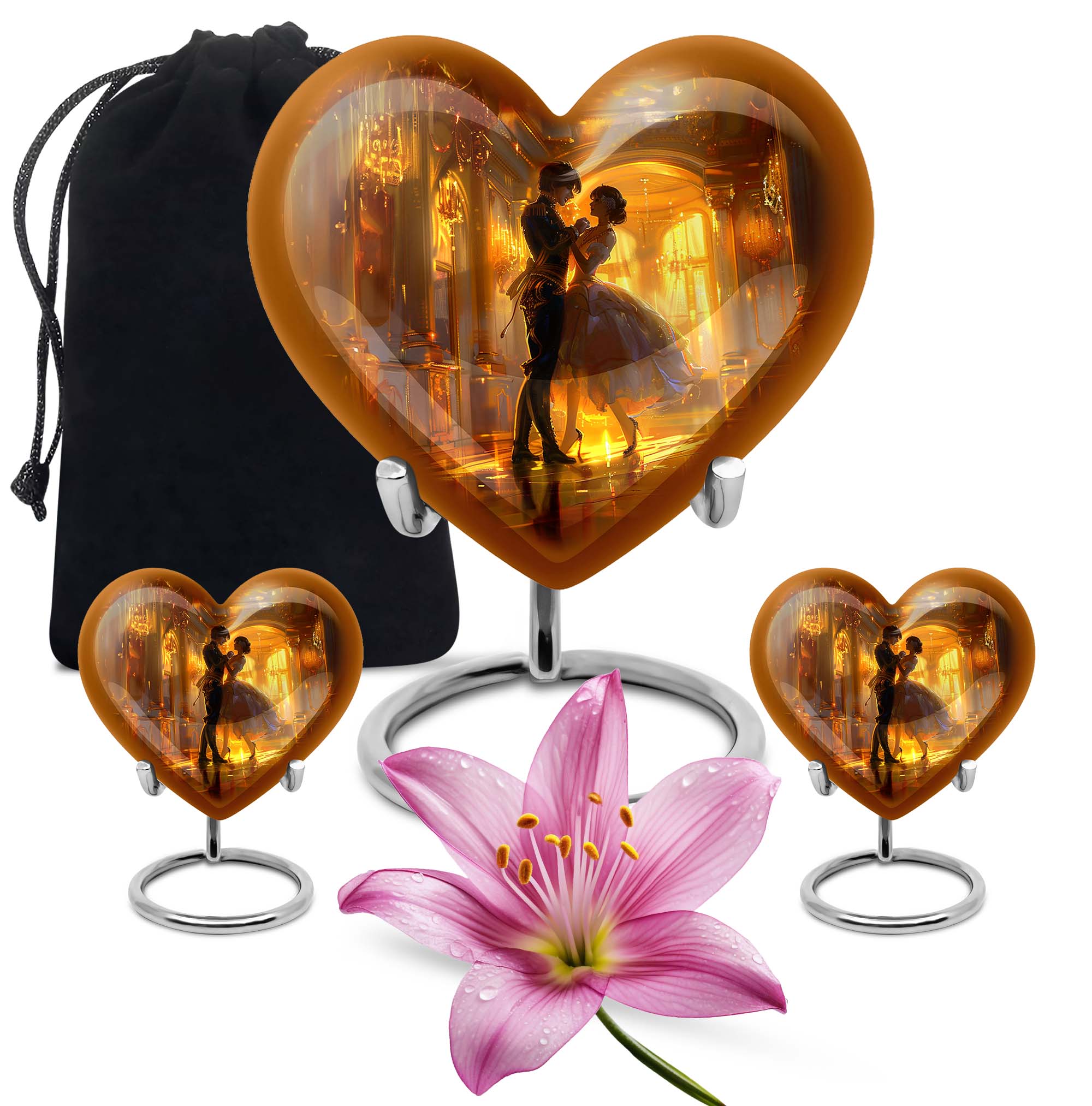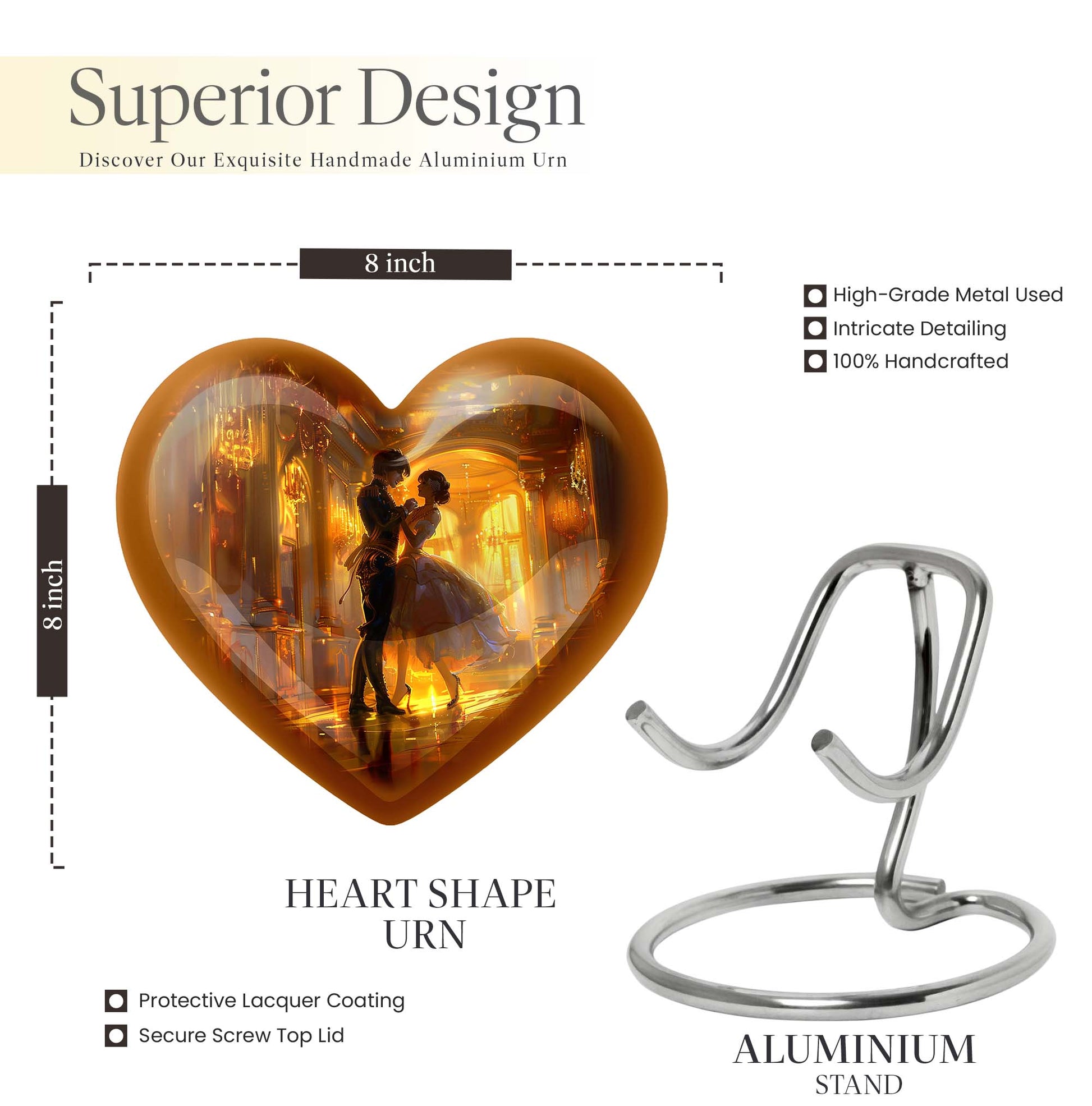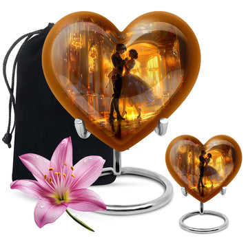 Cherishing the memory of a departed loved one necessitates a vessel that encapsulates both your love and reverence. The Dancing Urn is an exceptional piece, tailored for adults and seniors, and a precious addition to religious and memorial ceremony supplies. Sized at 10 inches, this heart-shaped large urn is tailored from superior aluminium and weighs 3.3 pounds. It exhibits an abstract theme that adorns its surface, subtly adding visual appeal. The sizable capacity of 200 cubic inches holds a significant amount of ash. The package includes a velvet pouch, ensuring respectful containment of ashes. You also have the option to personalize this burial large urn with engraved names, a touch that is sure to make it a unique commemorative piece. The dancing urn stands as an epitome of honour and respect for those embraced in eternal sleep. Note: The keywords 'cremation urn', 'ash adult funeral urns', 'urn for cremation ashes mother', and 'funeral cremation urn' can be useful for those seeking such memorial ceremony supplies.