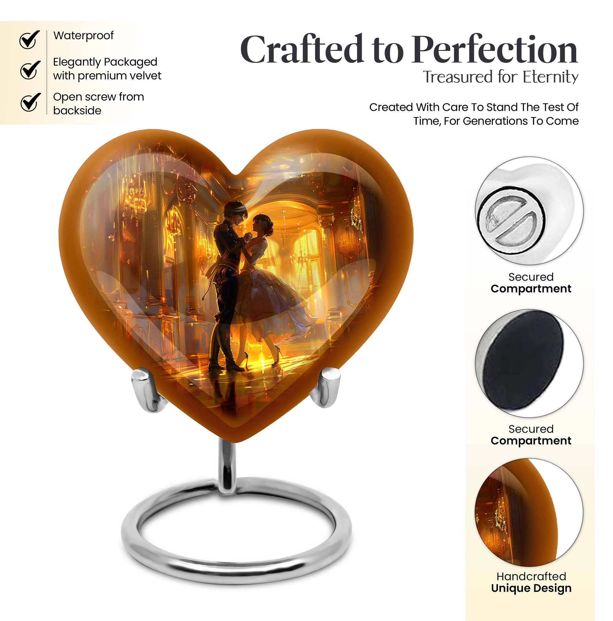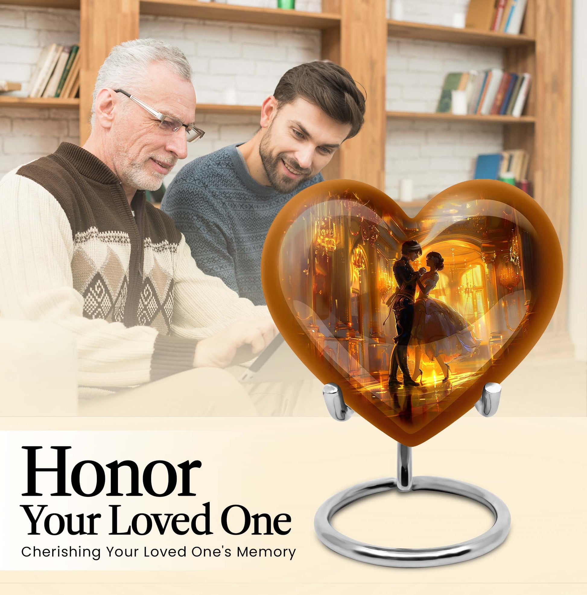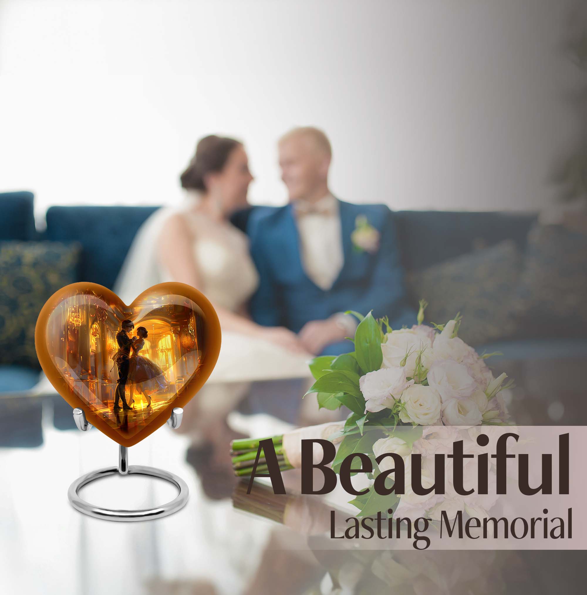 Cherishing the memory of a departed loved one necessitates a vessel that encapsulates both your love and reverence. The Dancing Urn is an exceptional piece, tailored for adults and seniors, and a precious addition to religious and memorial ceremony supplies. Sized at 10 inches, this heart-shaped large urn is tailored from superior aluminium and weighs 3.3 pounds. It exhibits an abstract theme that adorns its surface, subtly adding visual appeal. The sizable capacity of 200 cubic inches holds a significant amount of ash. The package includes a velvet pouch, ensuring respectful containment of ashes. You also have the option to personalize this burial large urn with engraved names, a touch that is sure to make it a unique commemorative piece. The dancing urn stands as an epitome of honour and respect for those embraced in eternal sleep. Note: The keywords 'cremation urn', 'ash adult funeral urns', 'urn for cremation ashes mother', and 'funeral cremation urn' can be useful for those seeking such memorial ceremony supplies.
