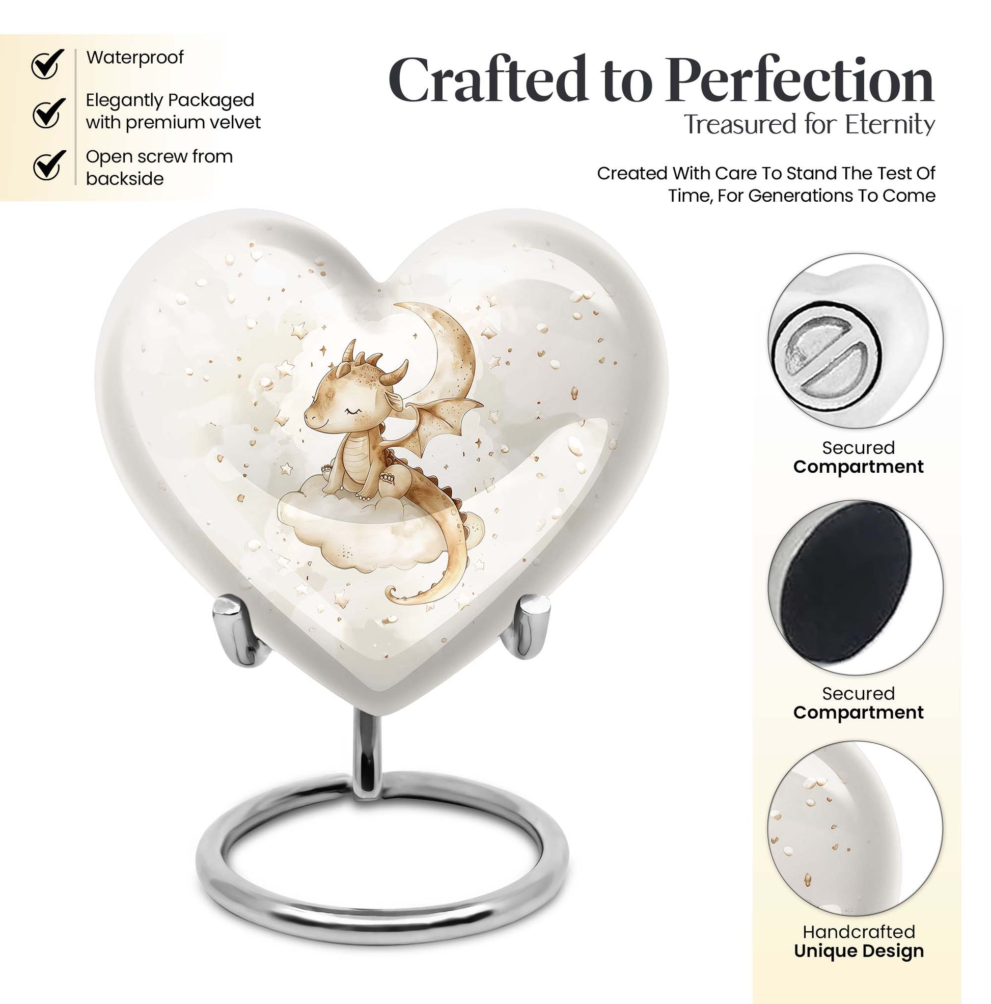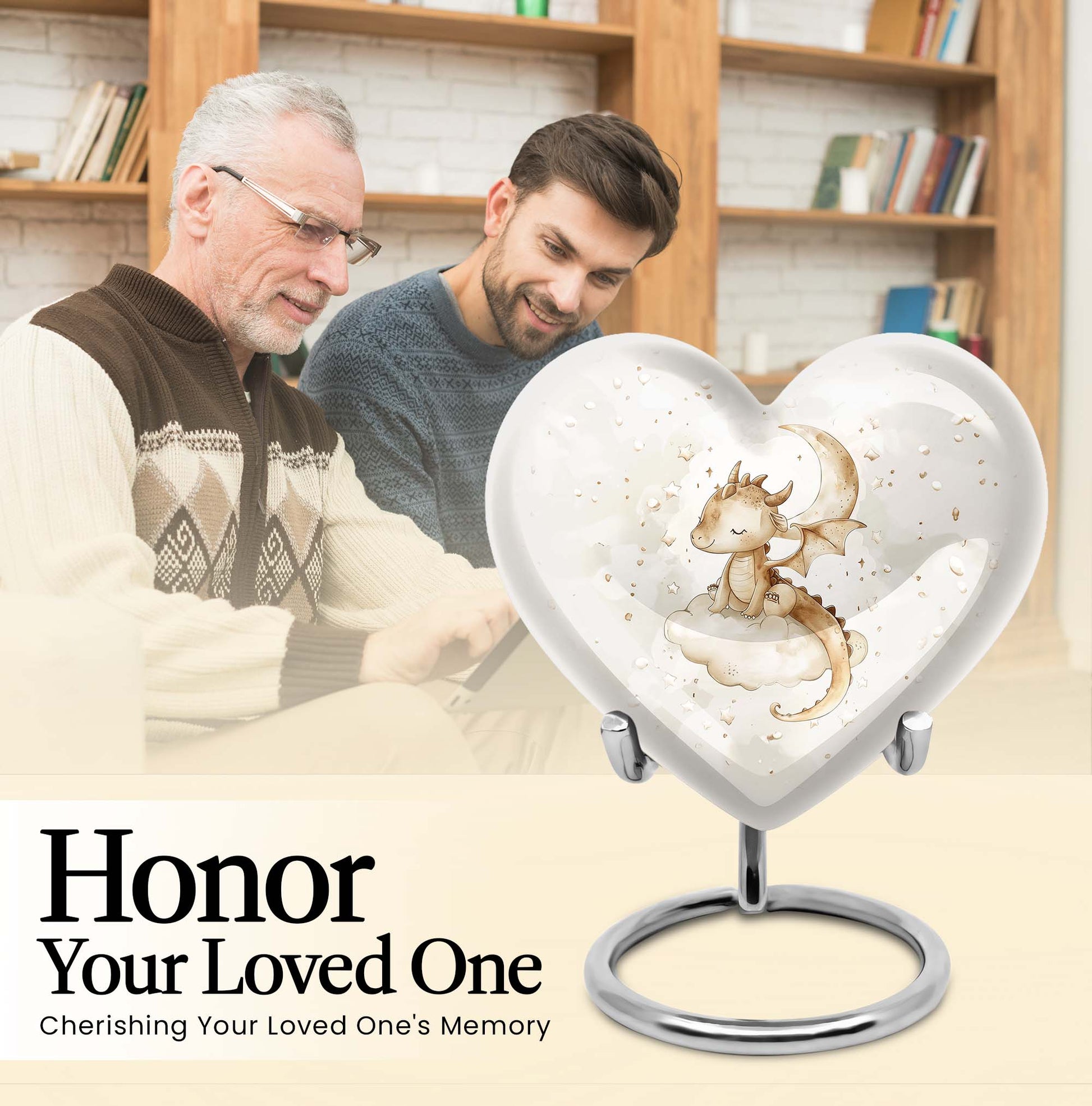 Celebrate your loved one’s memory with the Harmony Dragon Heart Urn, a handcrafted memorial designed to symbolize protection, love, and eternal strength. With its elegant heart shape and intricate dragon detailing, this piece is a meaningful and secure option among premium adult cremation urns for human ashes.