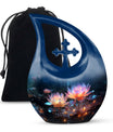 This large human ashes urn stands as a timeless tribute to faith and serenity. Ideal for families seeking urns for ashes large or cremation urns large adult, it reflects eternal love and remembrance in every detail. The soft radiance of the lotus serves as a comforting reminder that peace blossoms even through loss.