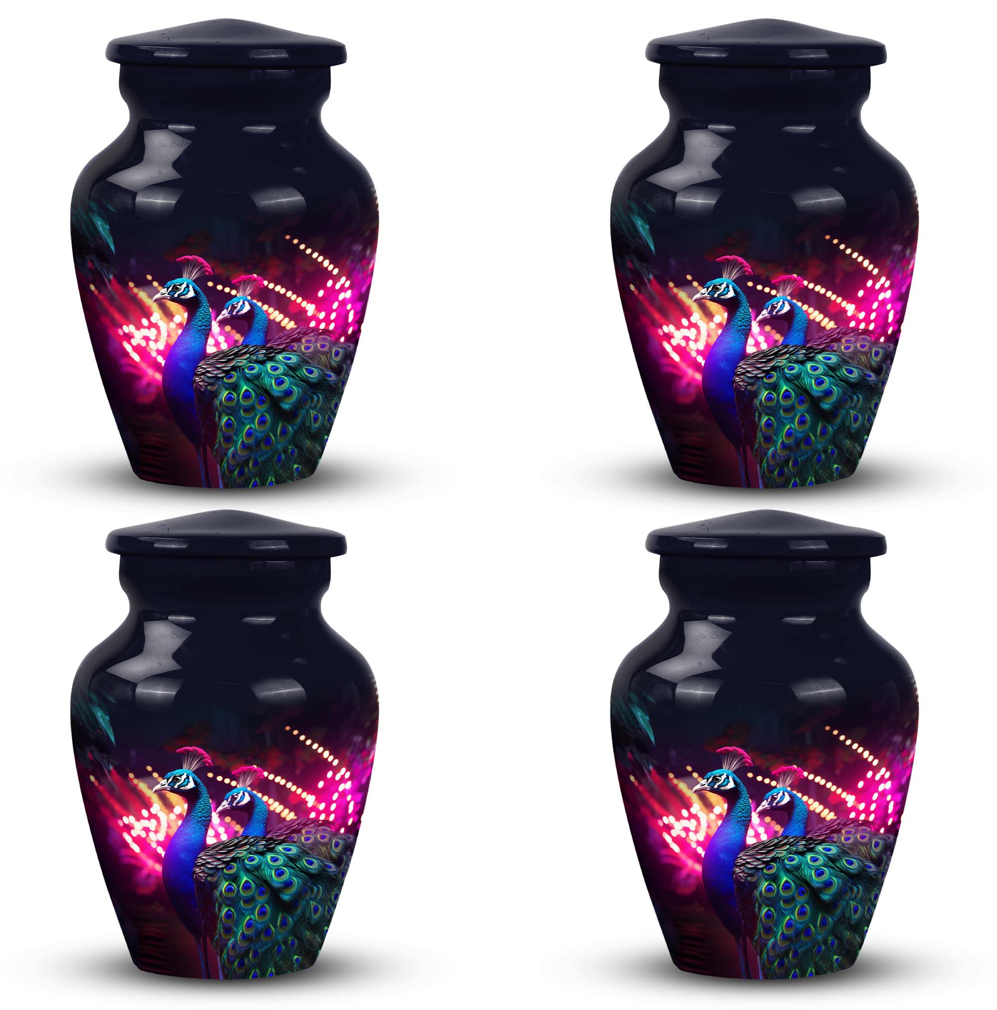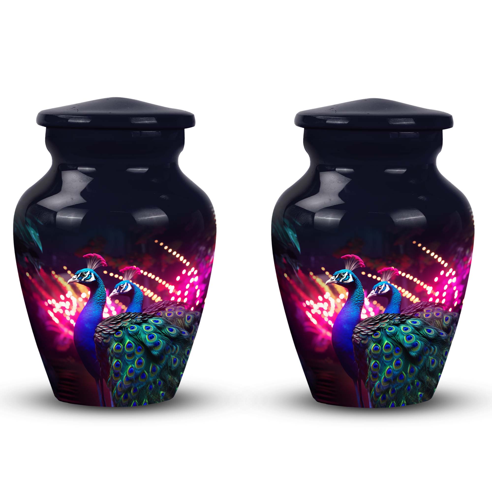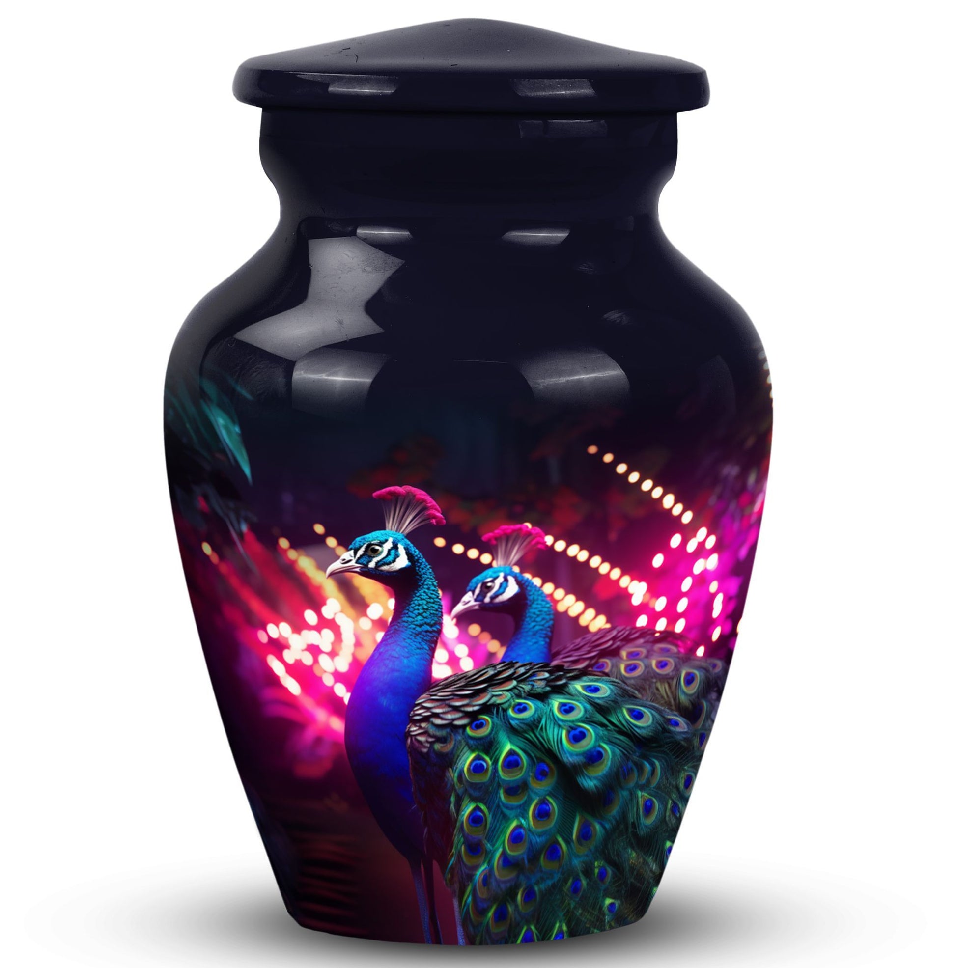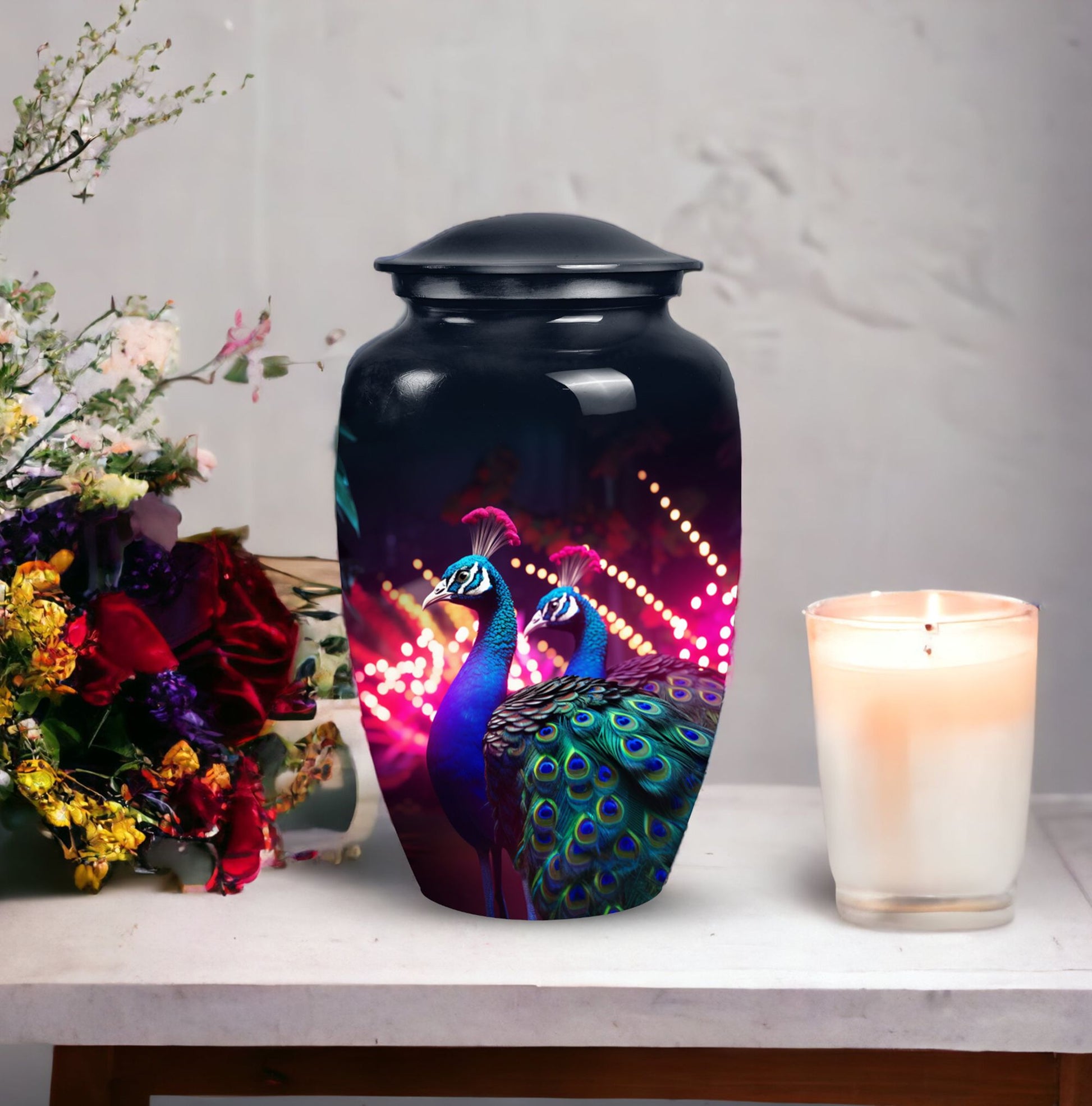 Presenting our Classic 3 inch Peacock Cremation Urn, a truly heartfelt token of remembrance for your loved one. Our urn stands at 10 inches, carefully crafted from superior aluminium for long-term durability. We recognize the significance this bears in holding a very special person's memory, thus it offers a generous capacity of 200 cubic inches. While the urn radiates with the sophistication of the usual 'Classic Urn' style, its uniqueness sets it apart as an ideal pick for those seeking 'Unique Urns for Dad' or 'Urns for Ashes for Mom'. On receipt, you'll find your memorial urn well protected in a plush velvet pouch, intended for the safekeeping of the ashes. For that extra touch of sentiment, we offer customization so that you can personalize your urn with engraved names. At a weight of 3.3 pounds, this large urn reinforces its quality while being manageable to handle. Whether you're conveying a 'sorry for your loss' message or searching for 'Metal Urns for Human Ashes', consider this item as more than just a decorative urn for human ashes—it's a relished memorial tribute.
