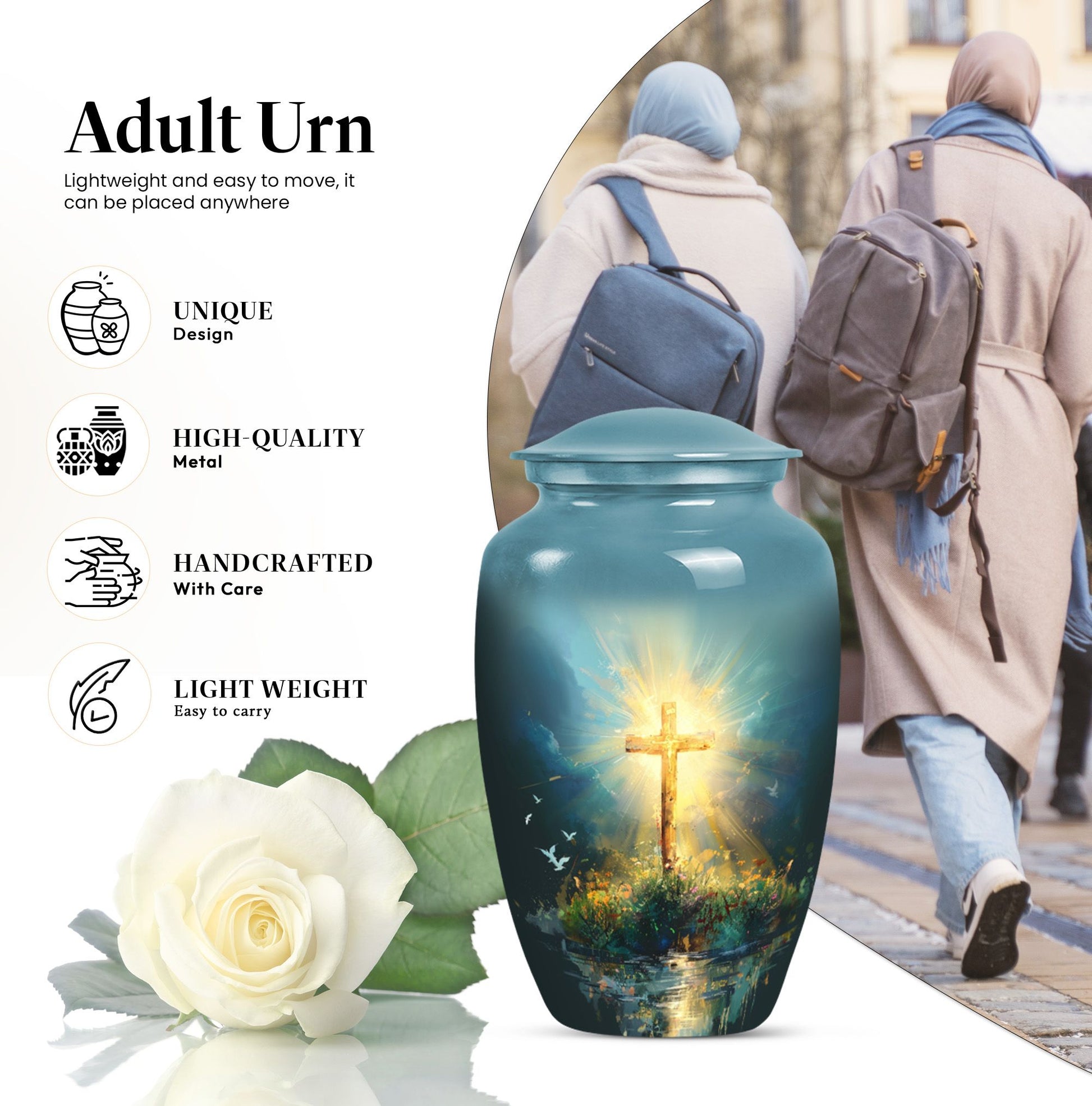 A perfect balance of beauty and faith, the Glowing Cross Urn is a lasting tribute to a cherished life.