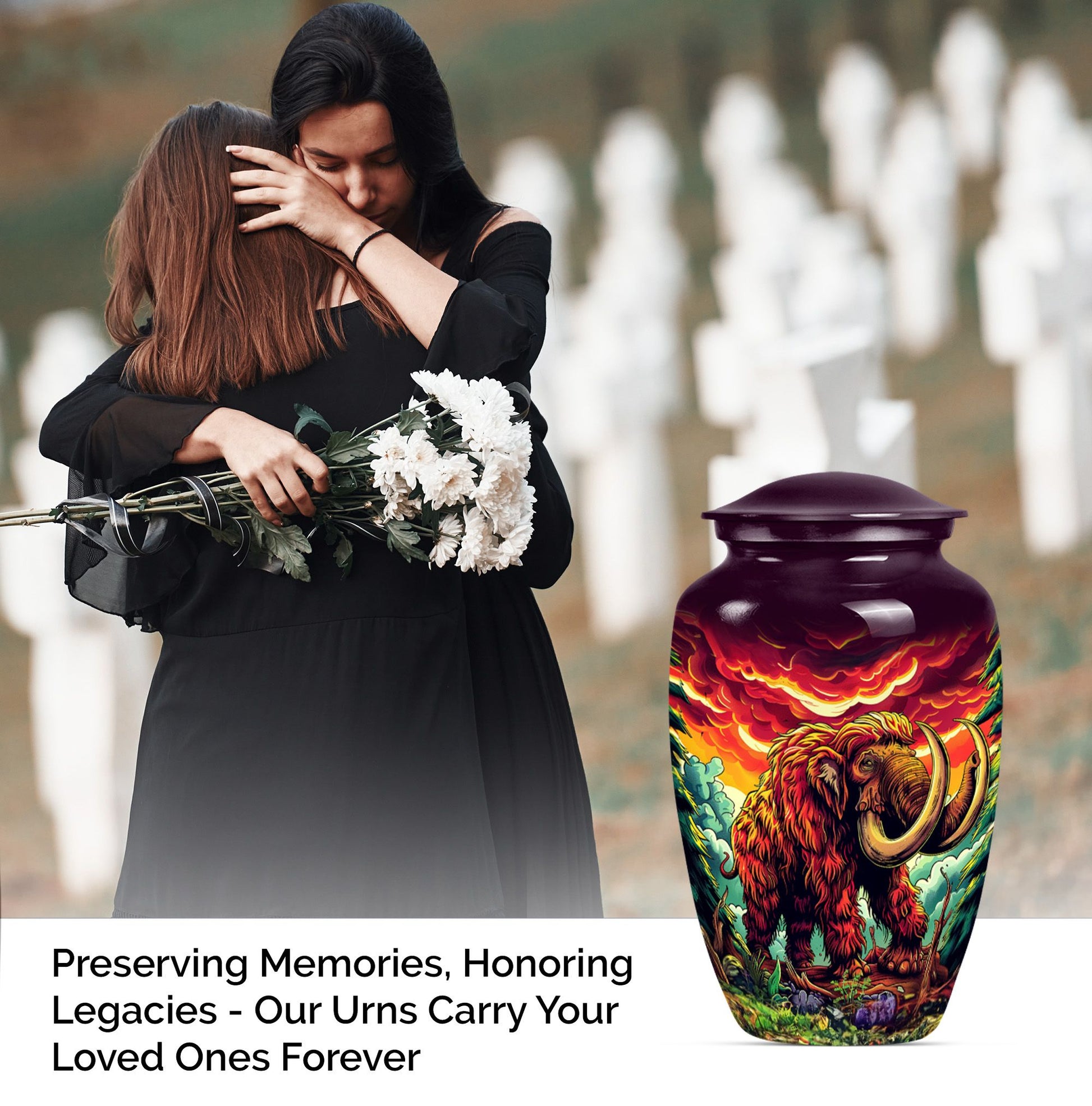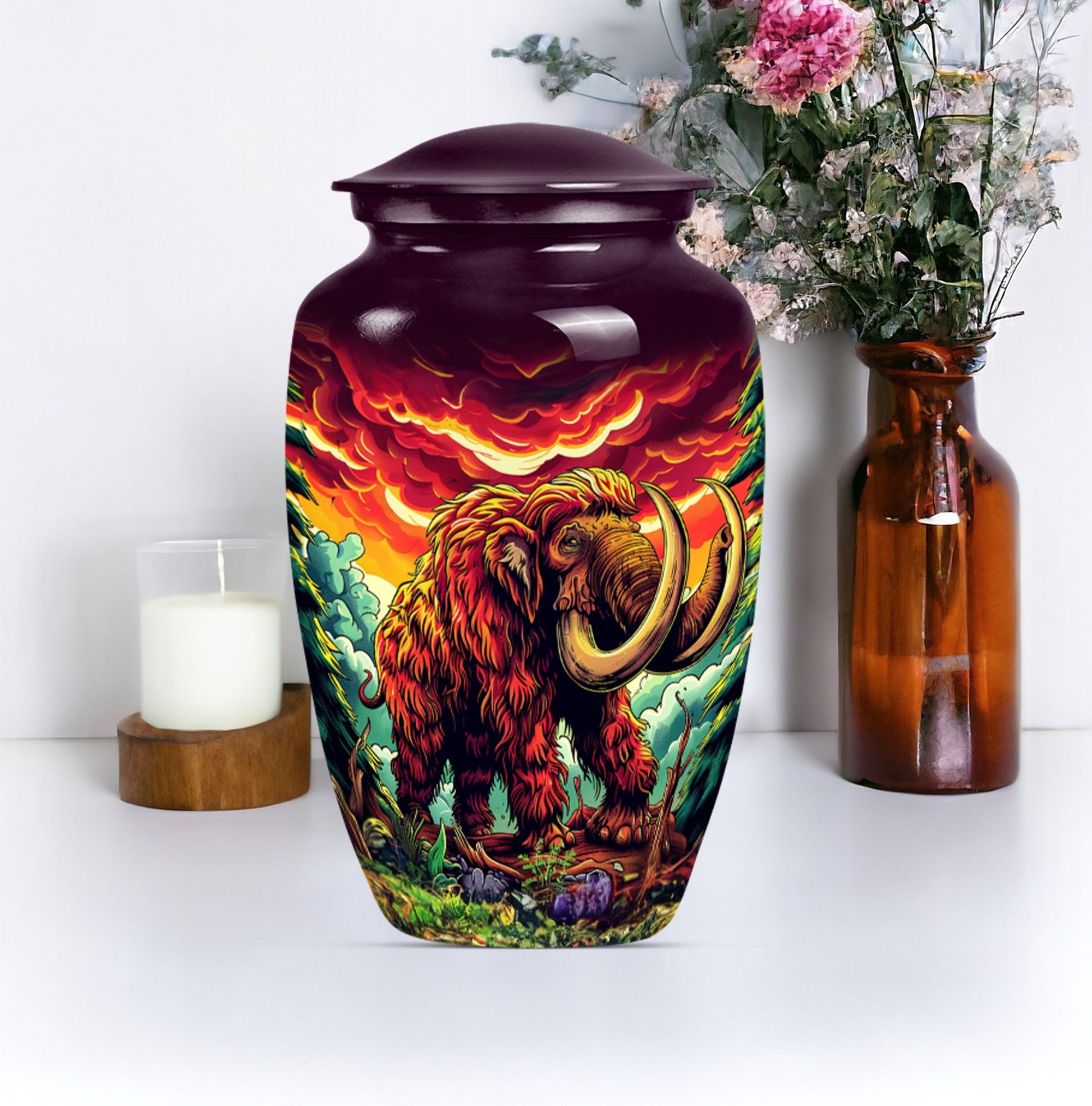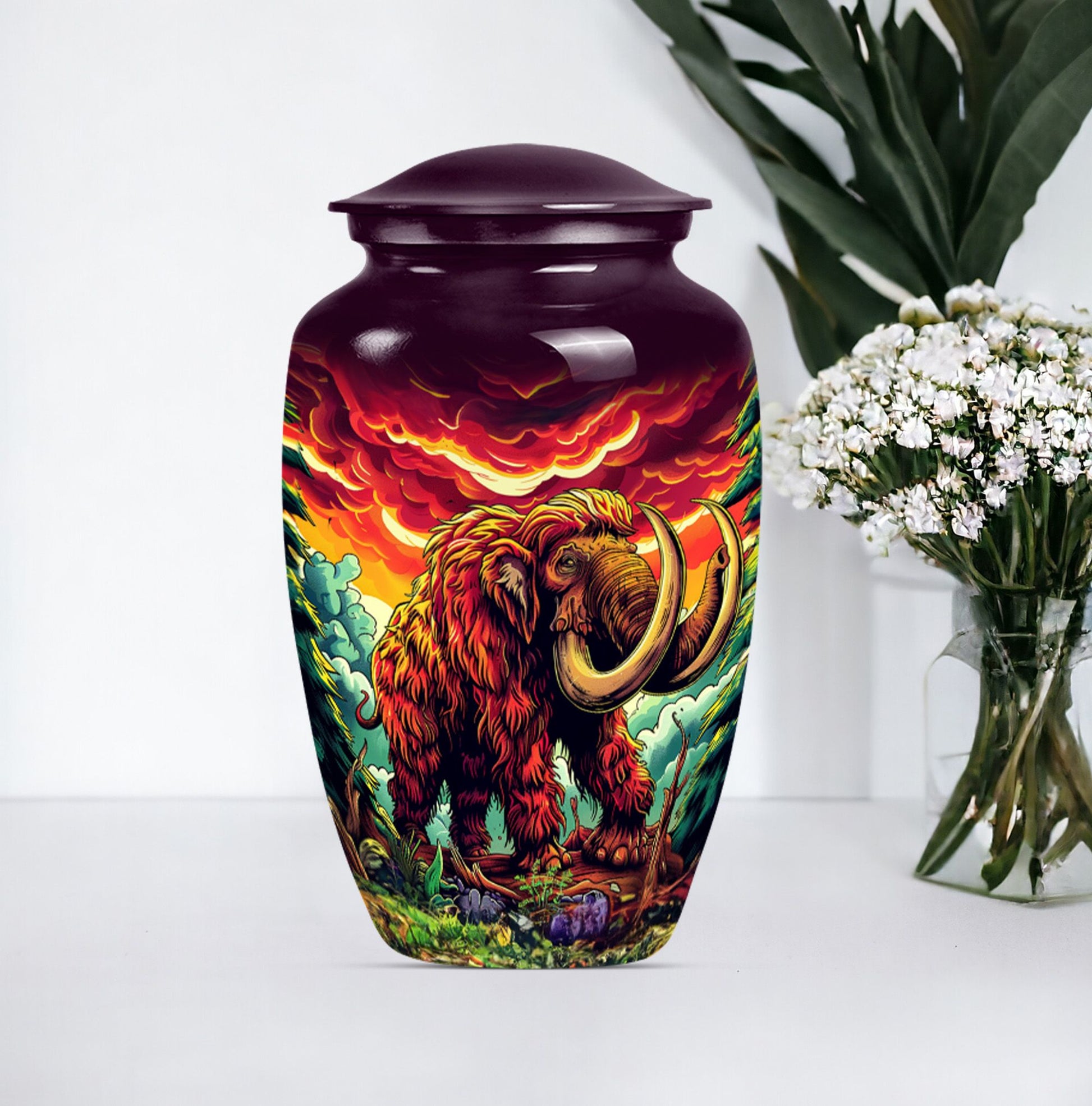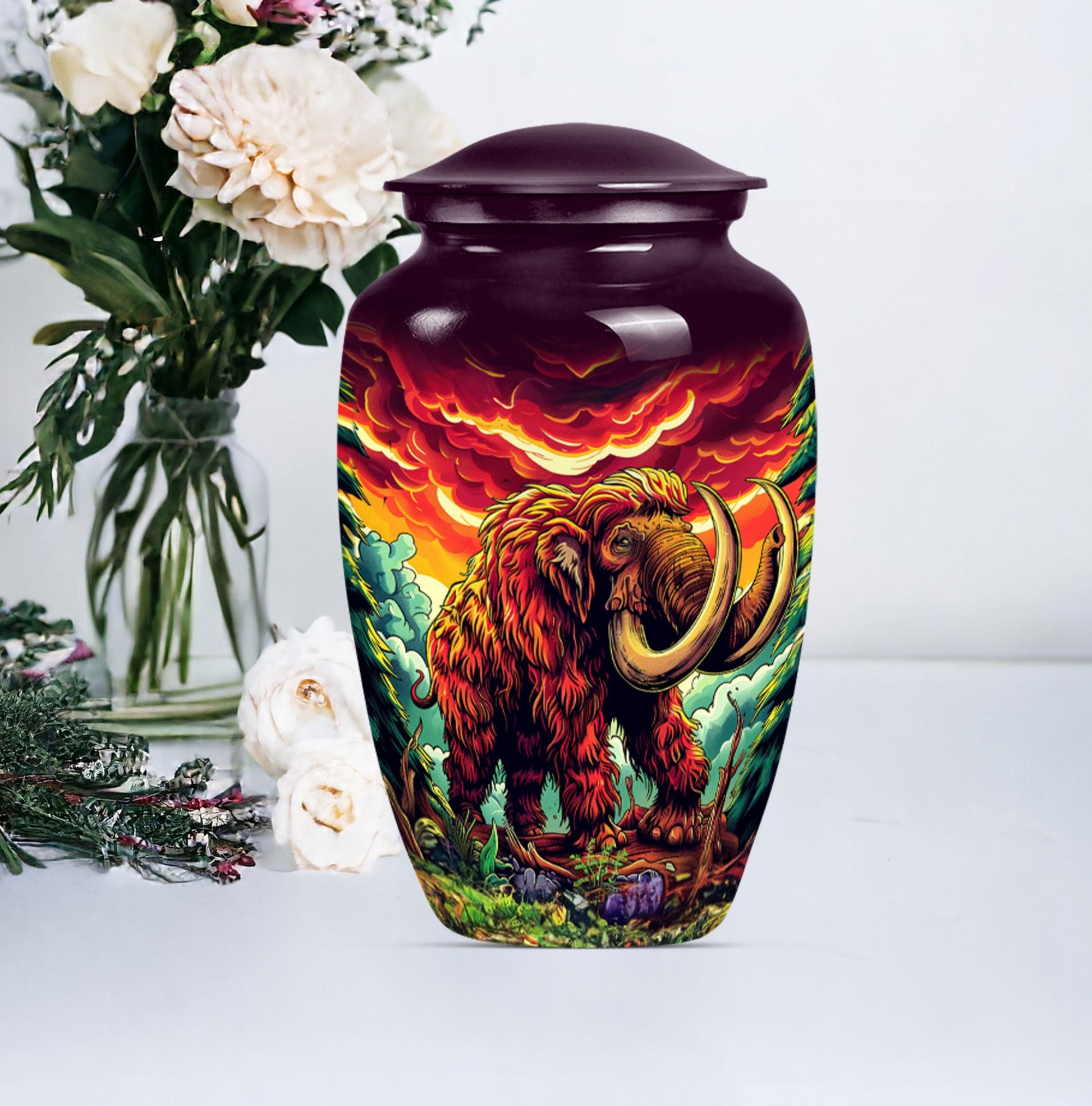 Experience comforting commemoration with our tasteful and elegant 'Mamoth Urn,' a perfect choice in the category of Memorial Ceremony Supplies. Precisely crafted from aluminium, this 10-Inch cremation urn for dad radiates an aura of dignity and tranquillity. Its weight of 3.3 pounds combined with dimensions of 10 inches in height cleverly creates an admirable and grand presence. Further enhancing its characteristics is the capacity of 200 cubic inches, making it suitable for large urn requirements. Drawing a perfect balance between tribute and aesthetic, the urn captures natural beauty with a theme inspired by flowers. Adding a touch of personalization, our urns can be engraved with names, encapsulating memories uniquely. The product arrives snugly packed in a velvet pouch, ensuring secure containment of the cherished ashes. One can also find valuable attributes in 'Burial urns for adult men ashes', 'human urns', 'affordable urns', and 'large urn iridescent metal'. Reflect your sincere sentiments with this delicately designed cremation urn that harmoniously combines functionality and elegance. Honor your loved ones in a profound manner with our Mamoth Cremation Urn.