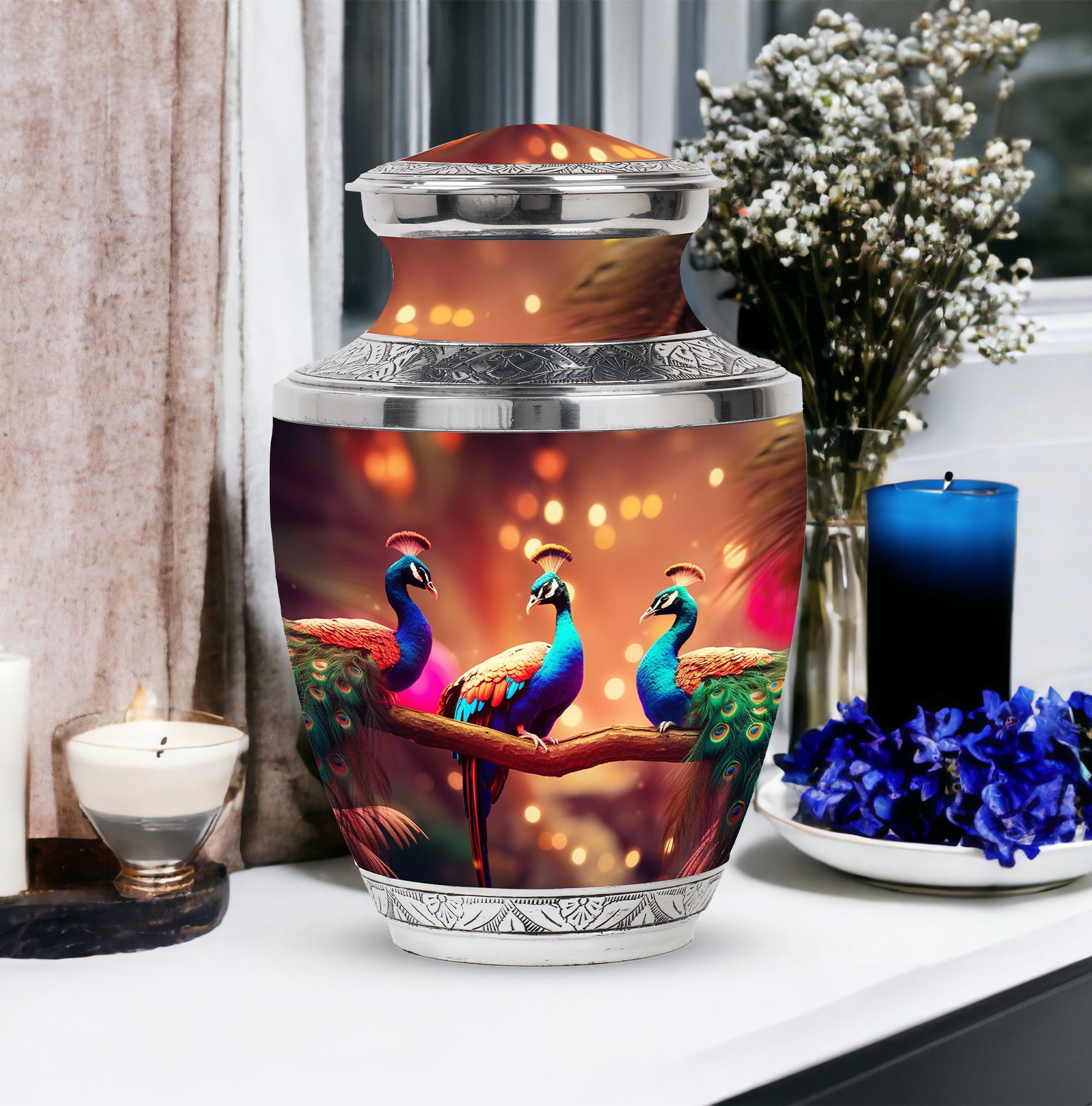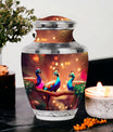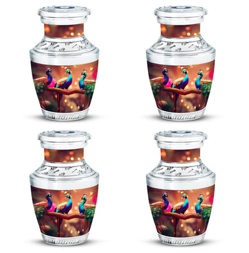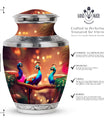 Gracefully preserve and honor memories of your cherished ones with our 'Peacock Cremation Urn'. Notable for its rich material, this large urn is meticulously crafted from wear-resistant aluminium, ensuring the lingering love is sheltered for the ages. Regal in its simplicity, this cremation urn stands 10 inches tall, has a weight of 3.3 pounds, and an impressive capacity of holding up to 200 cubic inches of ashes. For further individual meaning, we offer an inclusive service to customize the urn by engraving names onto it. Your order comes with a premium velvet pouch, perfect for safeguarding the ashes securely. This 3-inch size urn is a respectful choice for memorial ceremonies. Whether you're searching for 'Urns for Moms Ashes' or 'Urinary for Human Cremation Ashes', this Peacock Cremation Urn provides an elegant solution to keep the essence of your loved ones close to you.