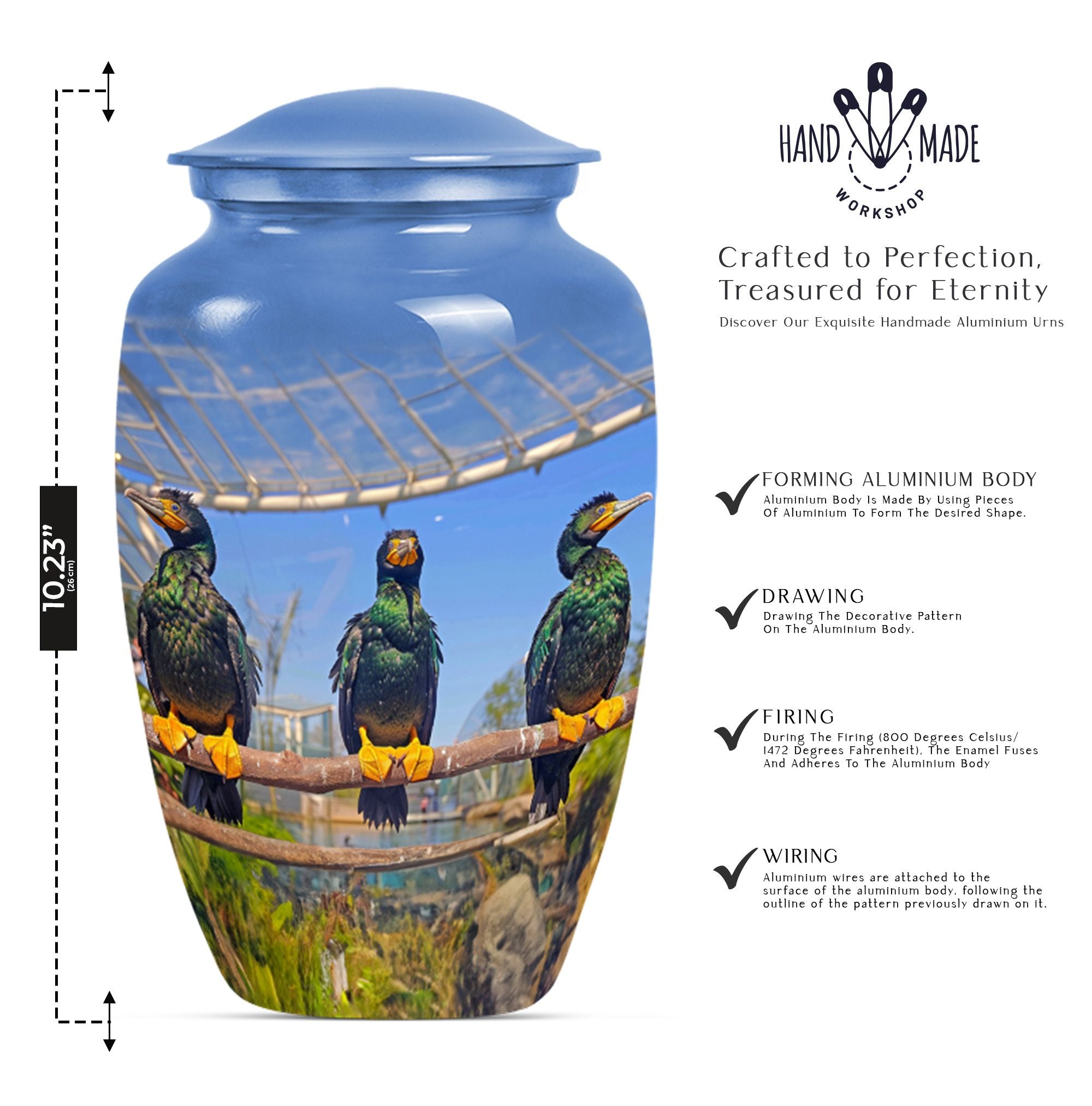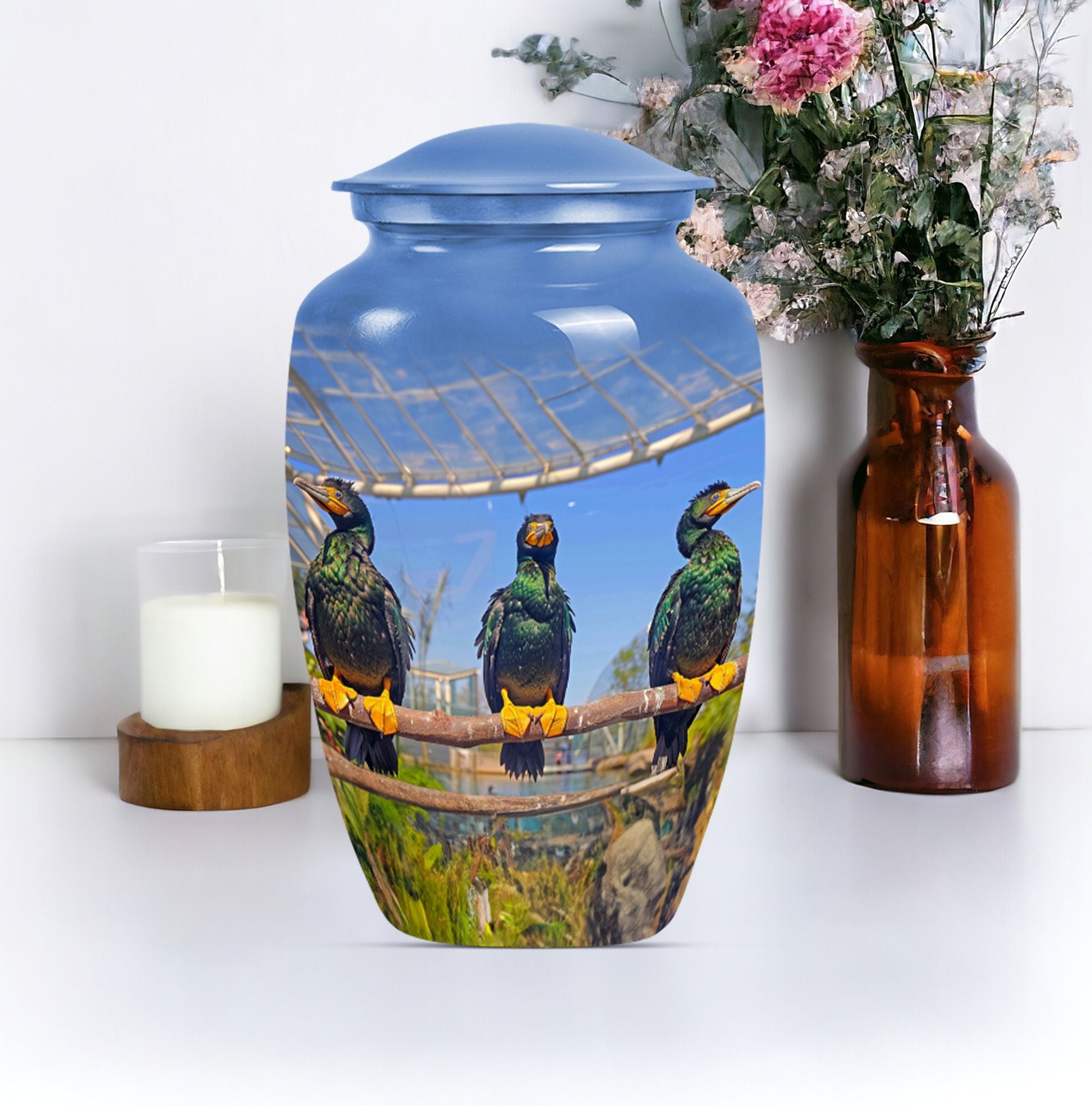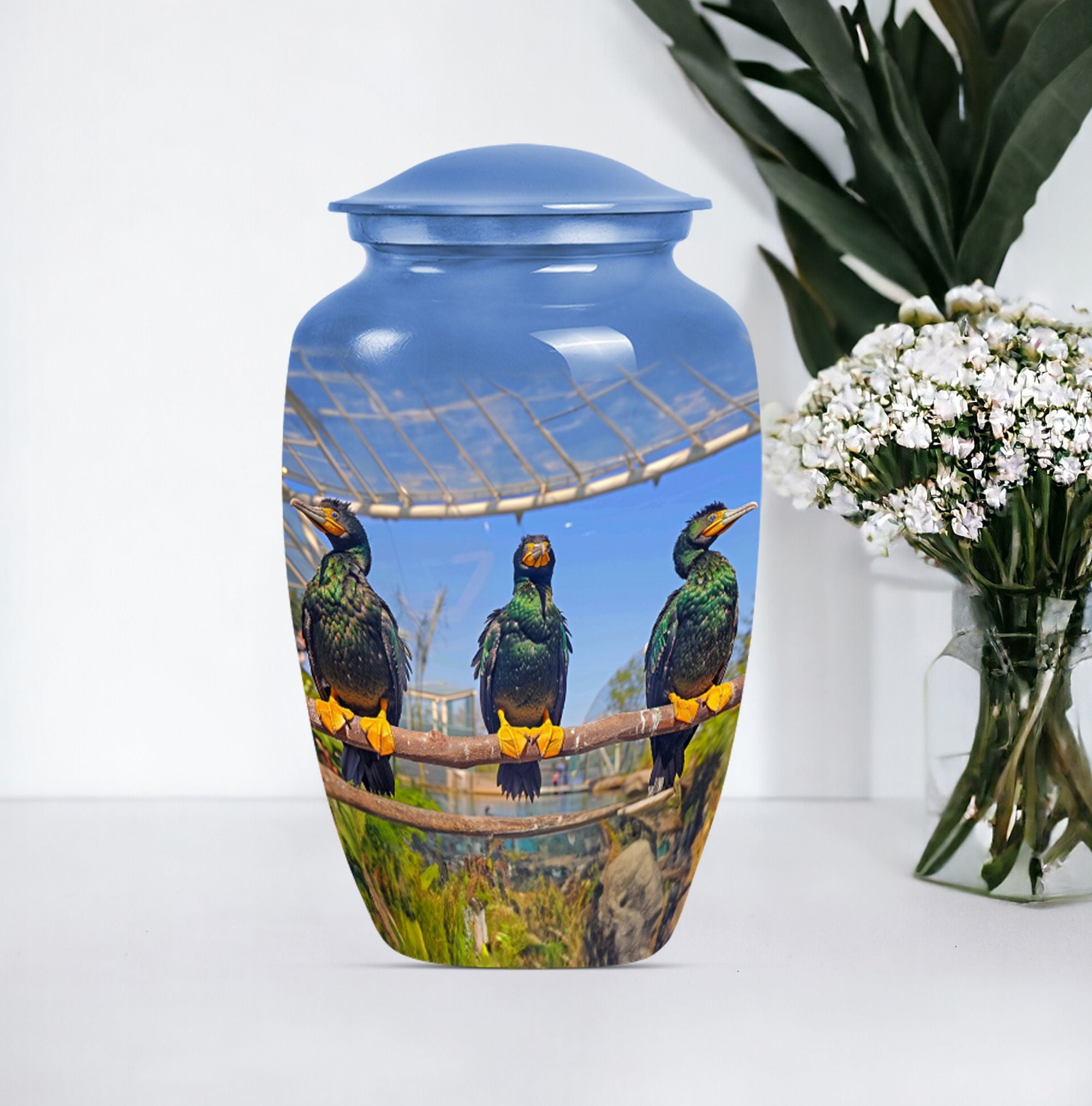 Honor the memory of your loved ones with our Puffin Bird Urn- a unique piece blending an abstract theme with functionality. With dimensions of a perfect 10-inch height, this memorial piece serves as an inherently comforting medium urn for ashes. The urn, weighing a substantial 3.3 pounds, showcases the charm of aluminium material, combined with the austere appeal of a classic urn-type design. The urn possesses a spacious capacity of 200 cubic inches, ensuring a respectful containment of your beloved's memory. Included in the package is an elegant velvet pouch for the discreet and dignified storage of ashes. Adding to its allure, this urn offers personalization options where names can be intricately engraved to create a one-of-a-kind tribute. From the category of memorial ceremony supplies, the Puffin Bird urn mounts as a top choice for those in search of burial urns for human ashes adult, as well as cremation urns for burial.