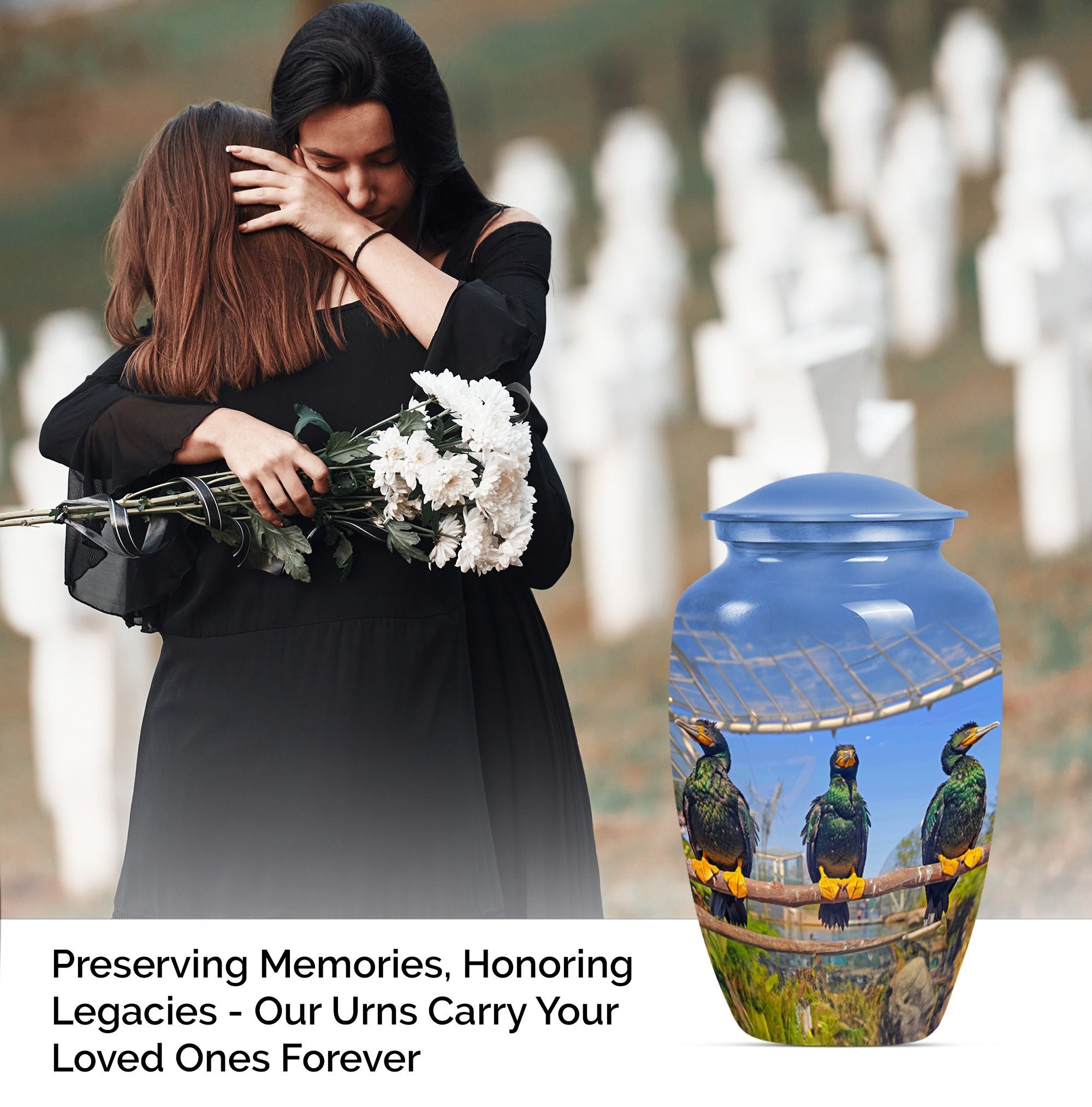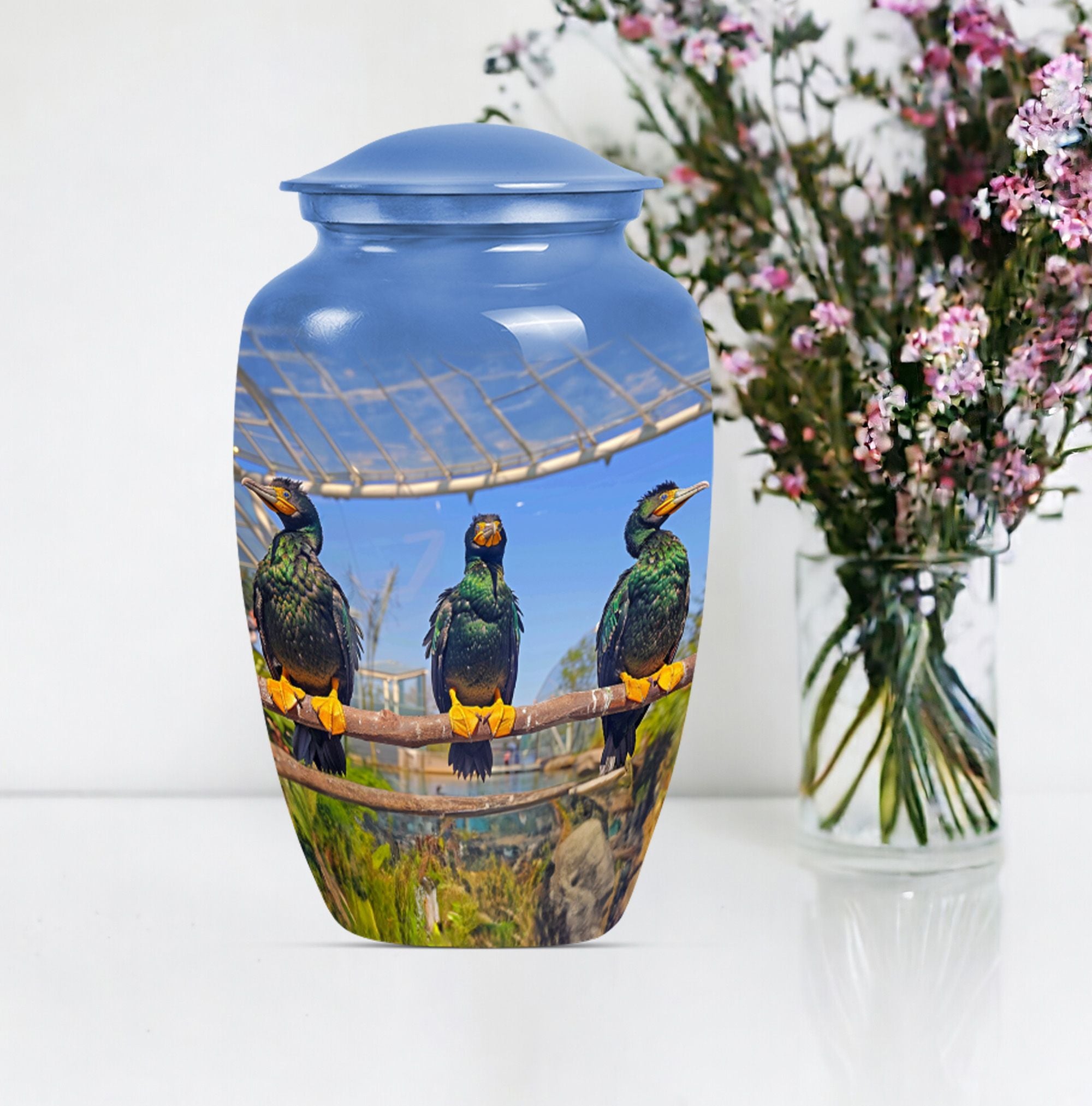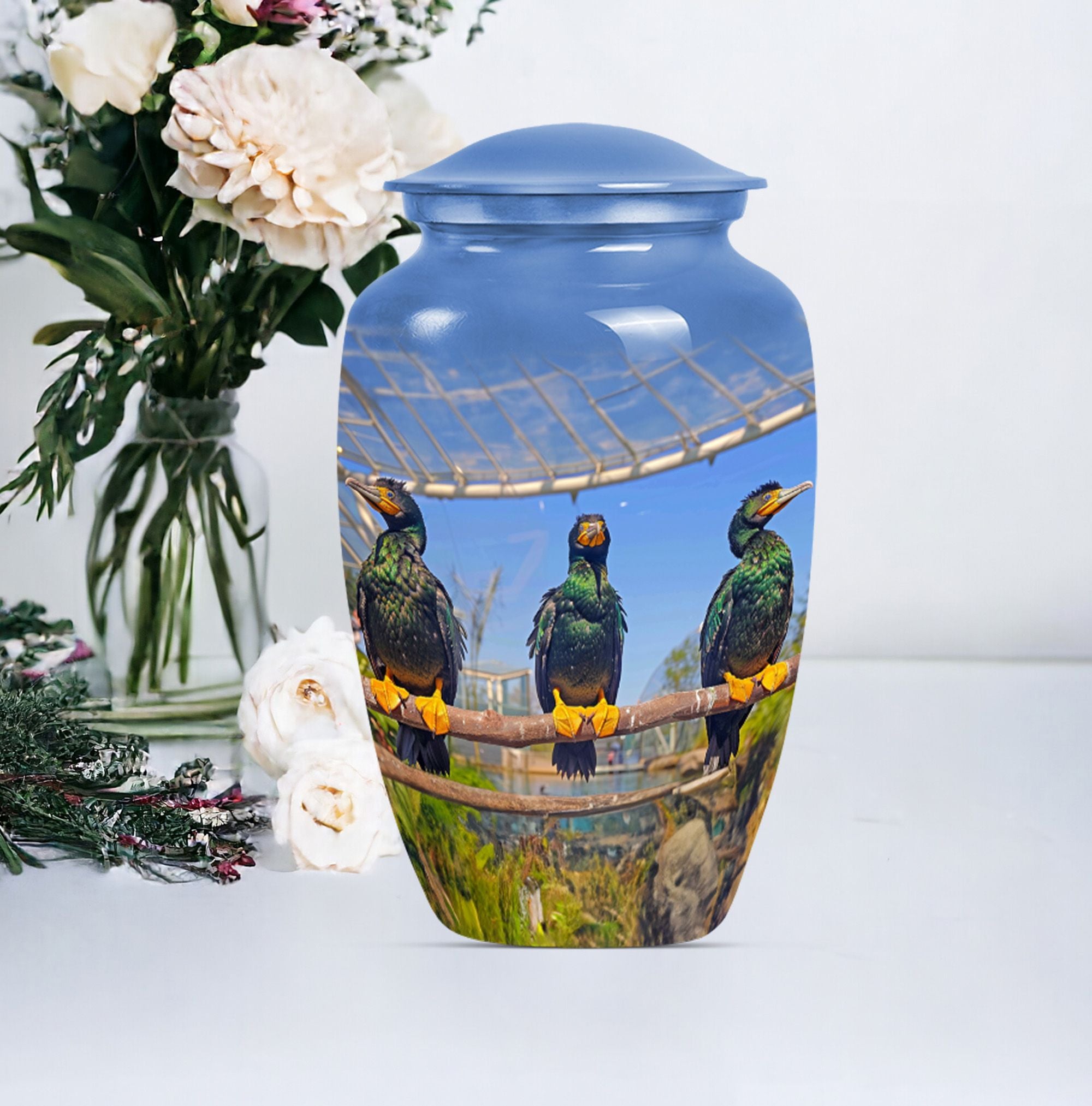 Honor the memory of your loved ones with our Puffin Bird Urn- a unique piece blending an abstract theme with functionality. With dimensions of a perfect 10-inch height, this memorial piece serves as an inherently comforting medium urn for ashes. The urn, weighing a substantial 3.3 pounds, showcases the charm of aluminium material, combined with the austere appeal of a classic urn-type design. The urn possesses a spacious capacity of 200 cubic inches, ensuring a respectful containment of your beloved's memory. Included in the package is an elegant velvet pouch for the discreet and dignified storage of ashes. Adding to its allure, this urn offers personalization options where names can be intricately engraved to create a one-of-a-kind tribute. From the category of memorial ceremony supplies, the Puffin Bird urn mounts as a top choice for those in search of burial urns for human ashes adult, as well as cremation urns for burial.