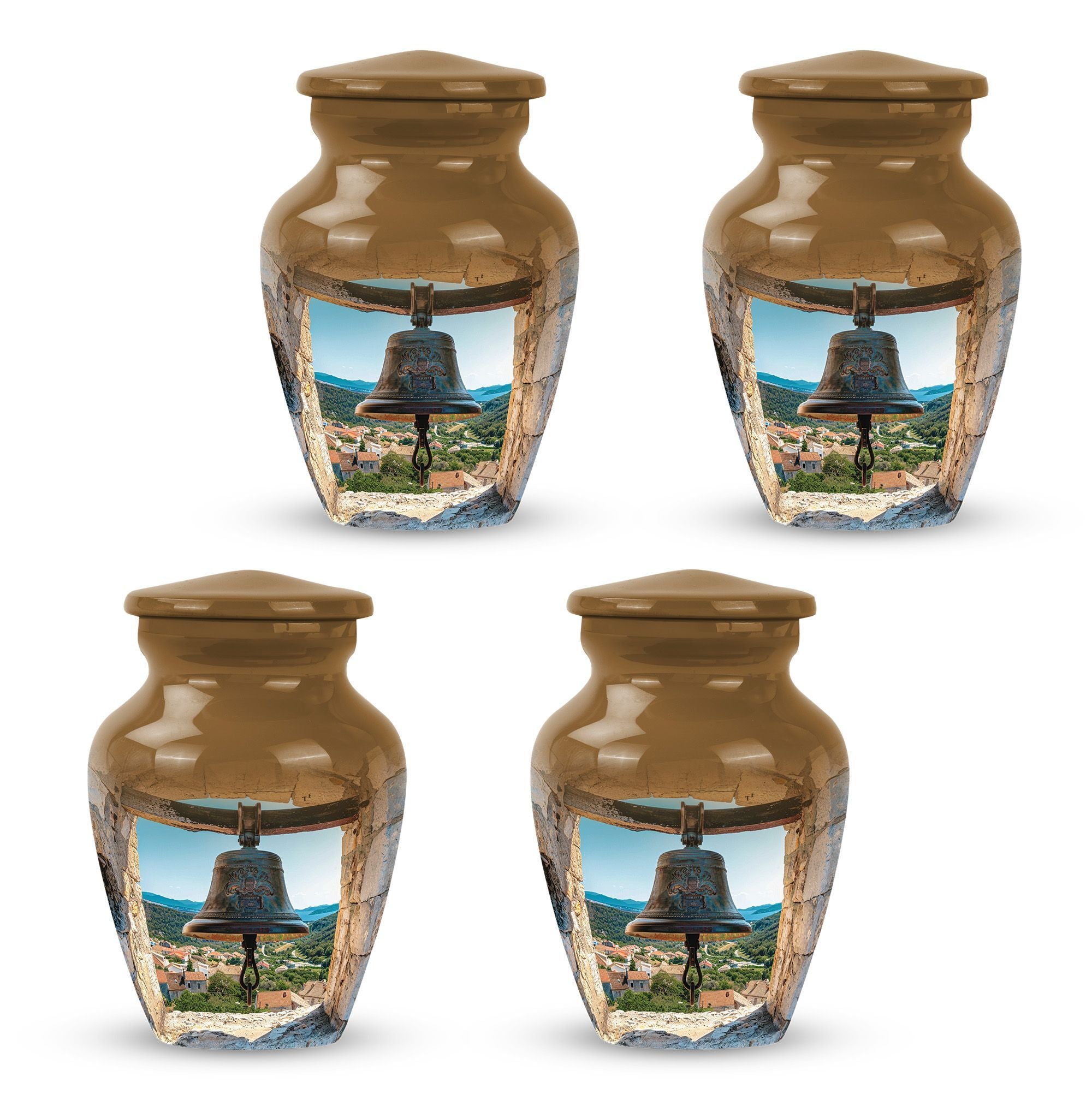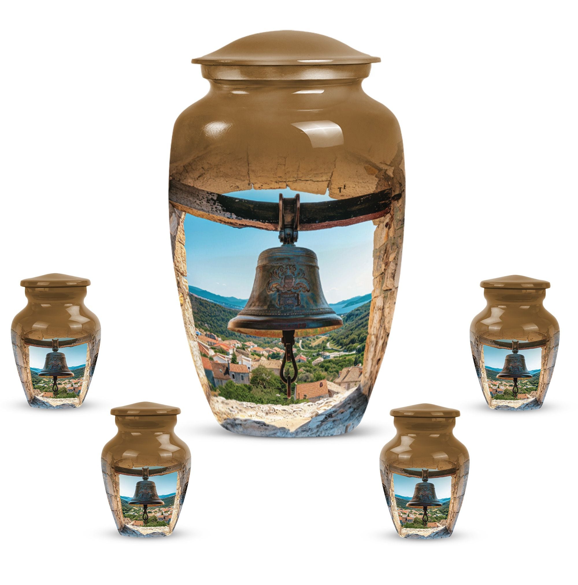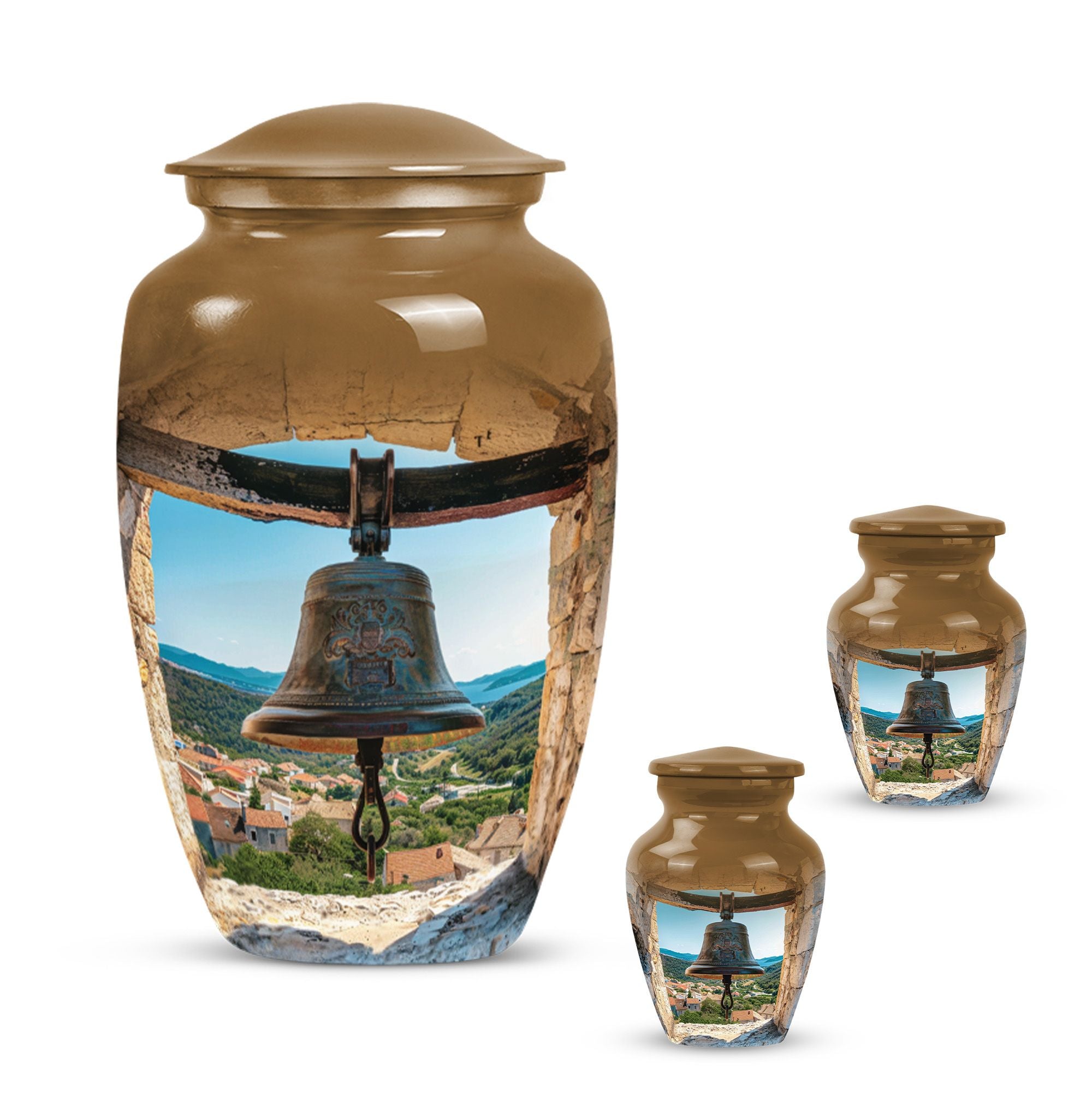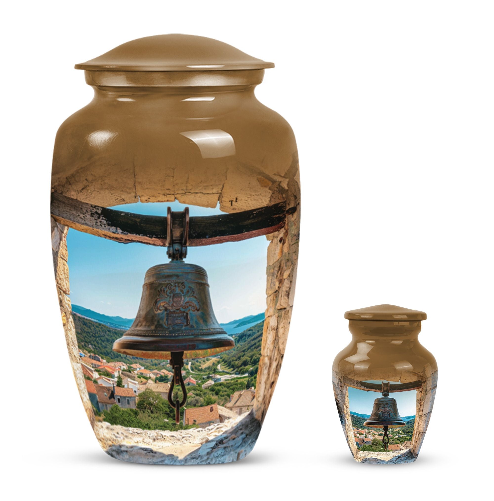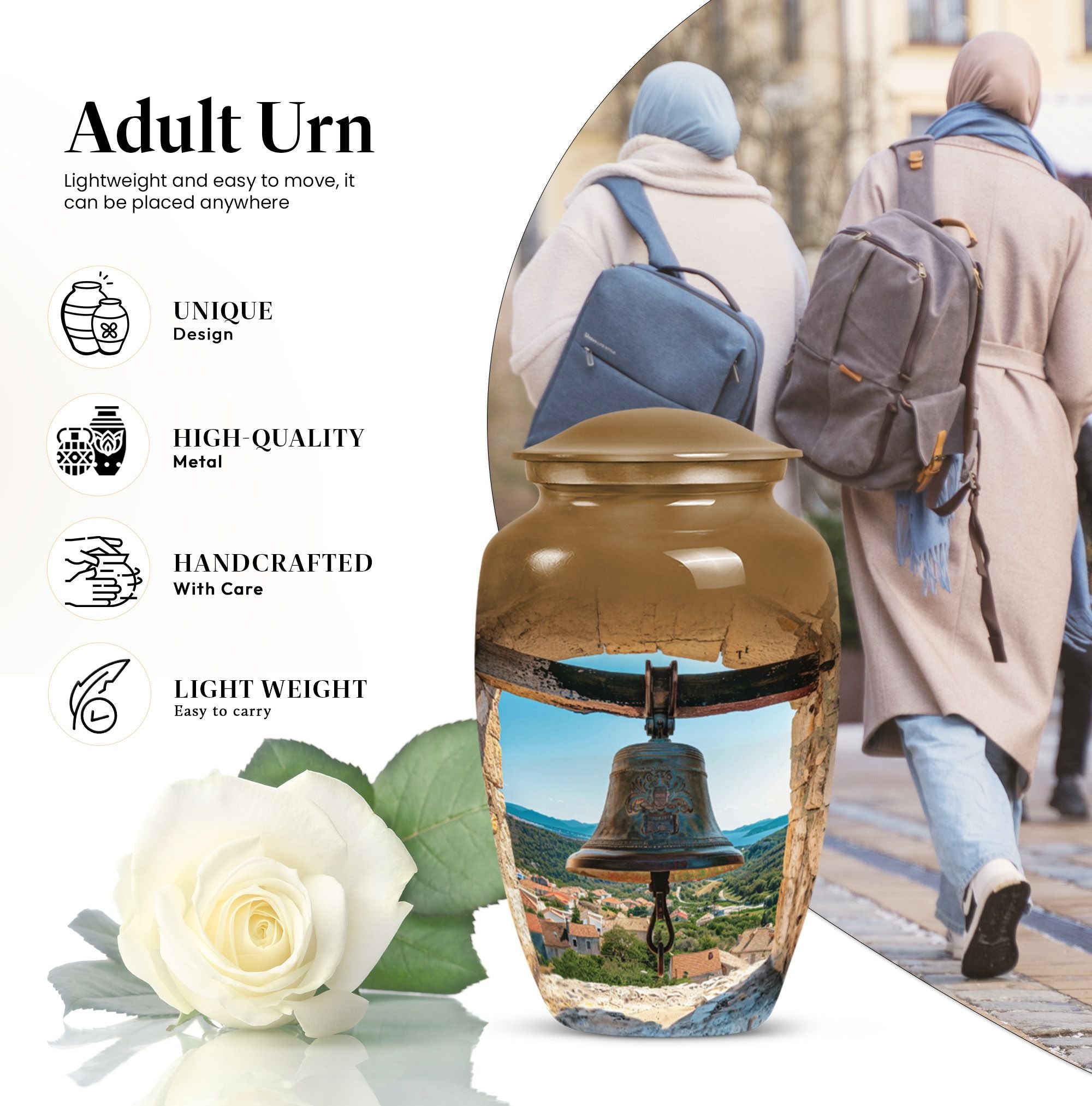 Indulge in a timeless tribute to your beloved with this sophisticated 10-inch Bell Urn - a unique choice amongst memorial urns. This cremation large urn for ashes resonates a classic aura, handcrafted from quality aluminium, weighing a substantial 3.3 pounds. Its 200 cubic inches capacity is exceptionally spacious, perfect for safeguarding the treasured ashes of your dear one. Each urn arrives with a luxurious velvet pouch, designed to securely contain the sacred ashes. Displaying an abstract theme, the Large Urn reflects a visual symphony that transcends cultures and traditions. Enrich your urn with a personalized touch, as you the option to engrave the names in the spirit of immortal memories. The urn, robust yet elegant, makes a soulful addition to your home or a heartfelt funeral gift. Our catalogue also includes cremation medium urns and metal urns for human ashes - nurturing memories with unique expressions.