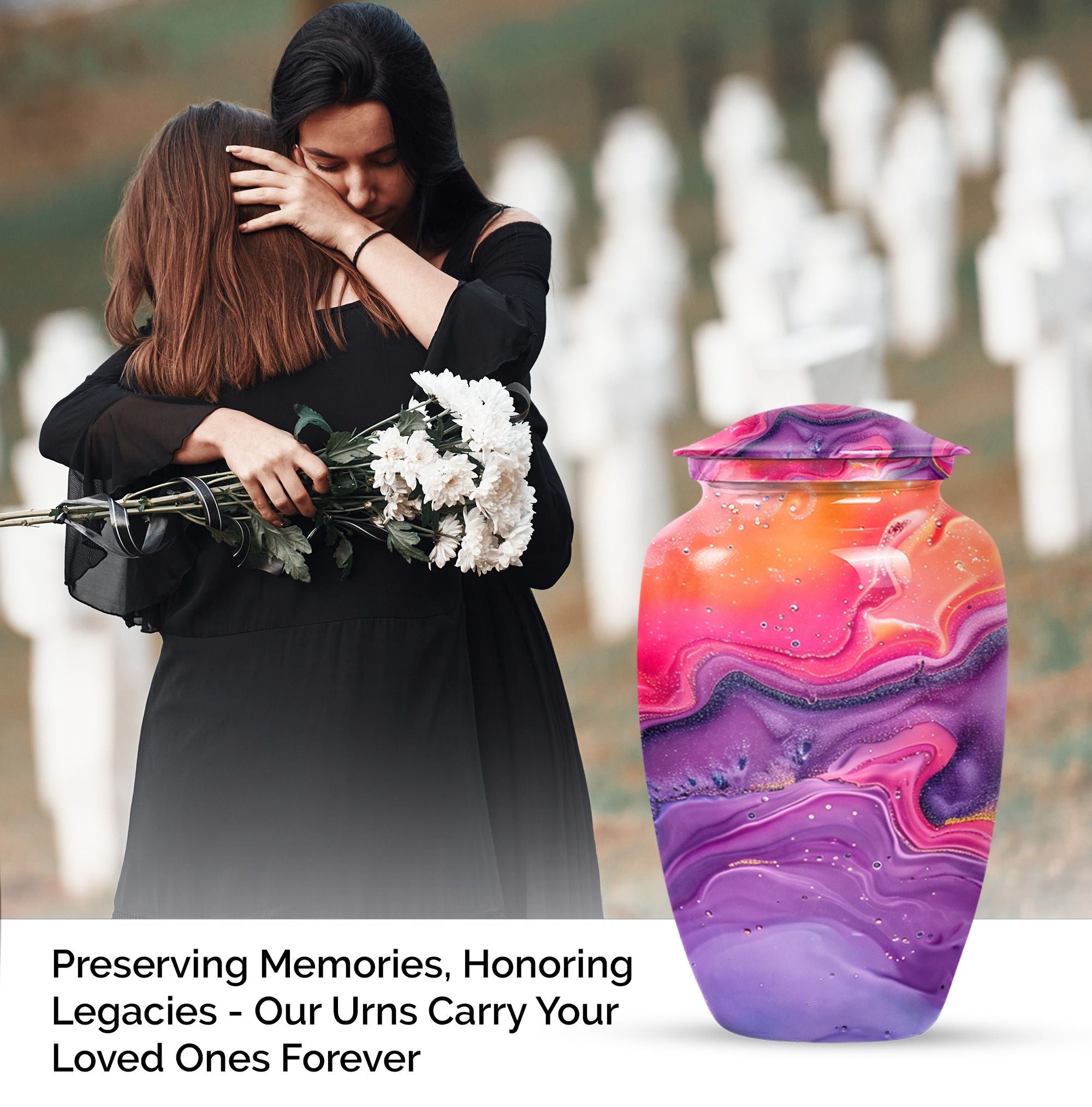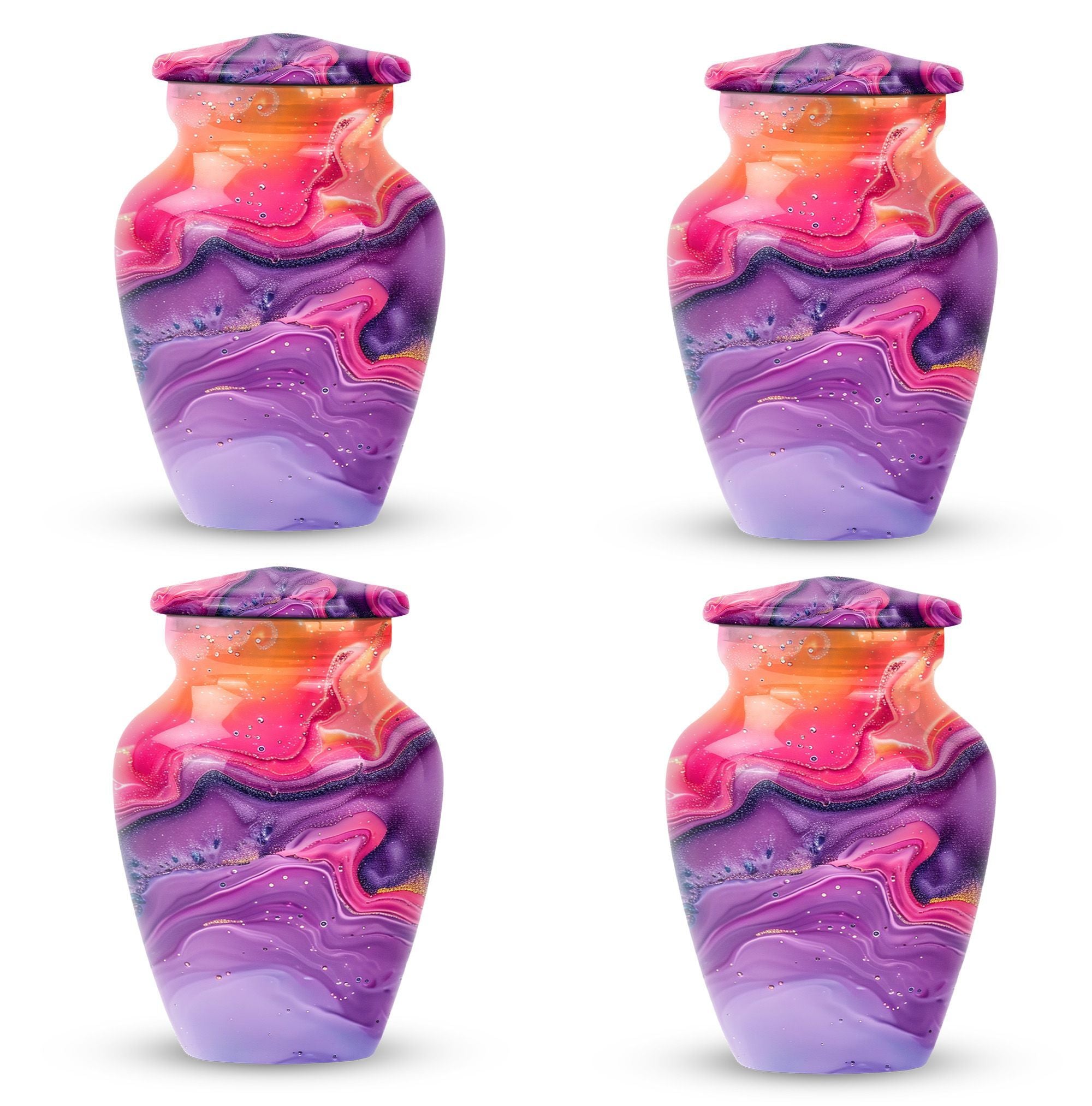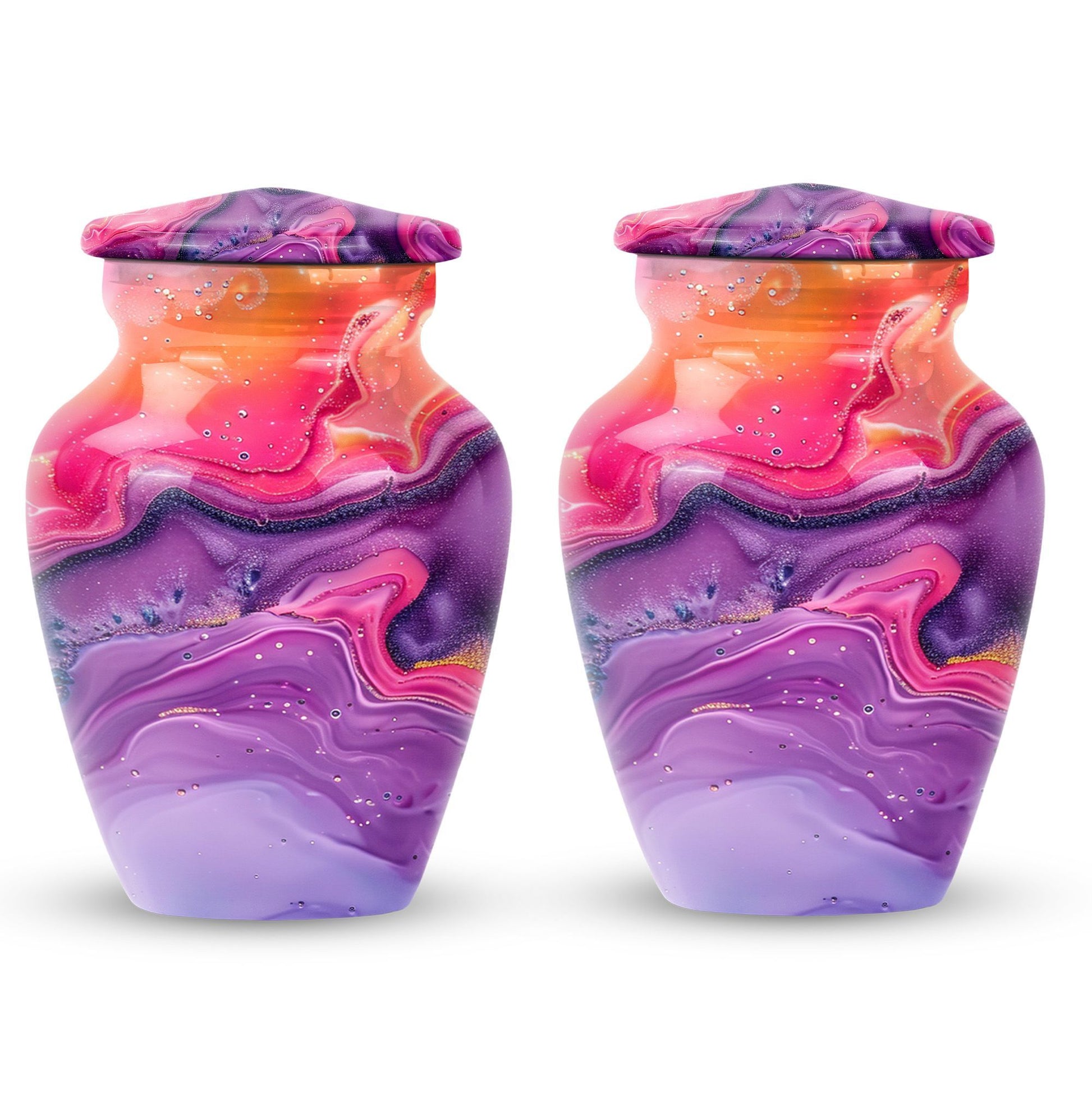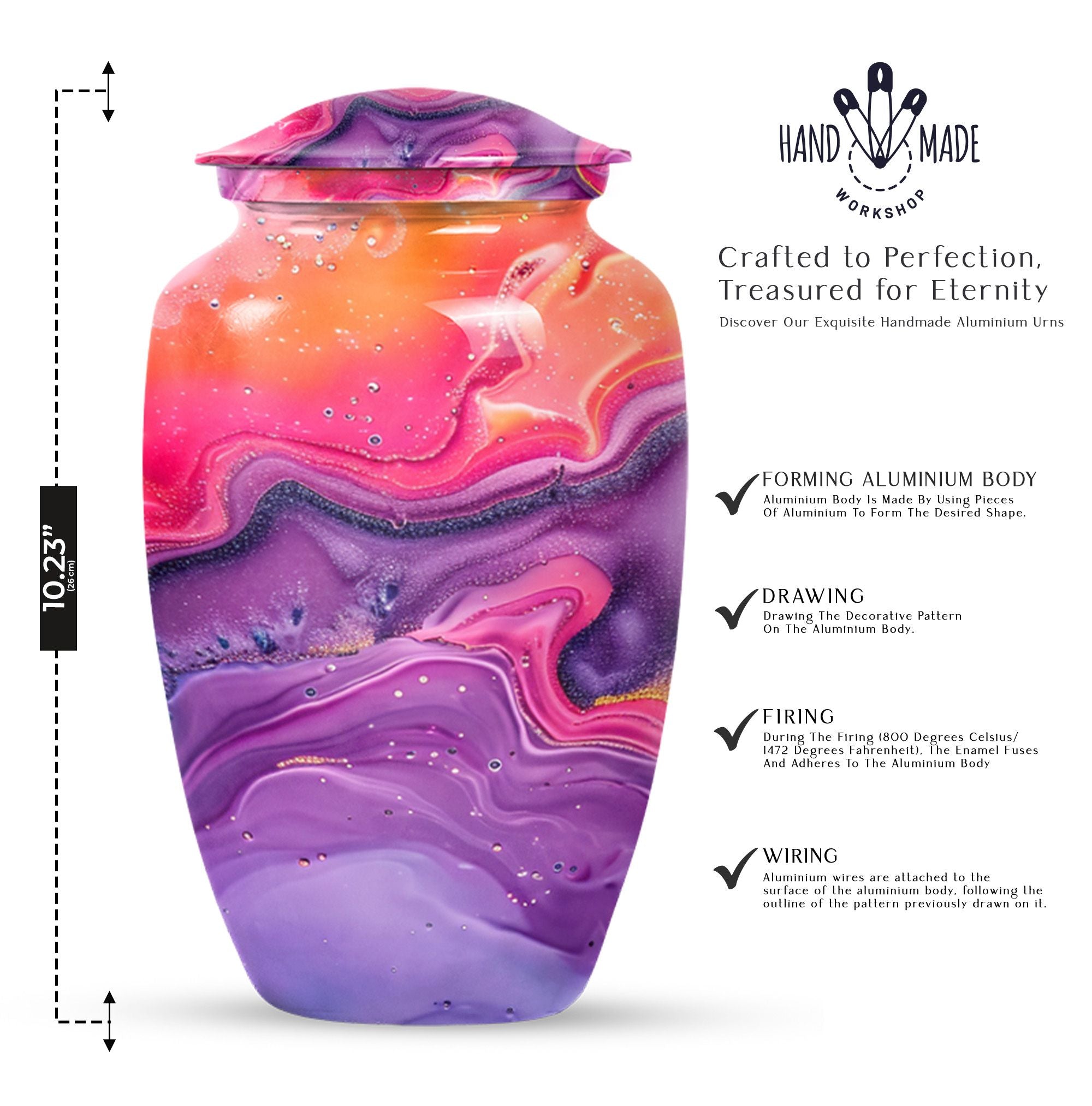Imprint your everlasting memories in our artisan-crafted Abstract Urn, a standout choice for burial large urns amidst the flurry of generic memorial urns. This majestic 10-inch urn reignites an old-world charm, its robust build accredited to the quality aluminium used. Highly accommodating with a capacity of 200 cubic inches, this urn has enough room to house the ashes without difficulty. Weighing in at a sound 3.3 pounds, its sturdiness speaks of longevity - a permanent home for your beloved's essence. The package includes a velvet pouch, beautifully styled to confine the ashes, adding a touch of decorum to an otherwise heart-wrenching exercise. Our abstract urns are large, aptly fitting for adult funeral ceremonies. Additionally offered are customizations; engrave names to impart a personal touch. This cremation urn doubles as a timeless memento for your loved one, blending modernity with the ageless charm of traditional funeral cremation urns.