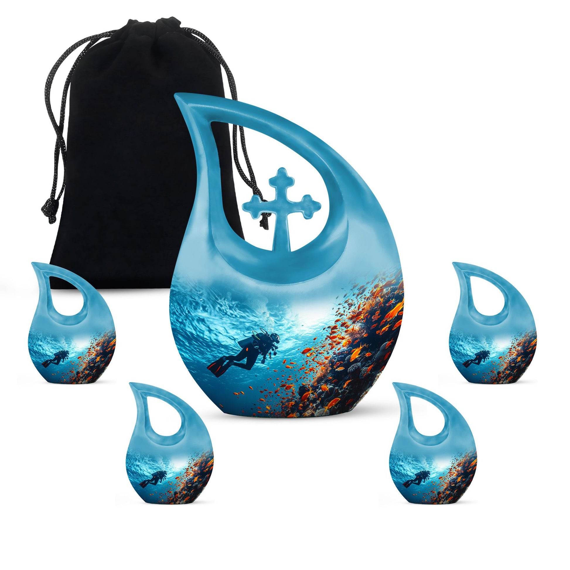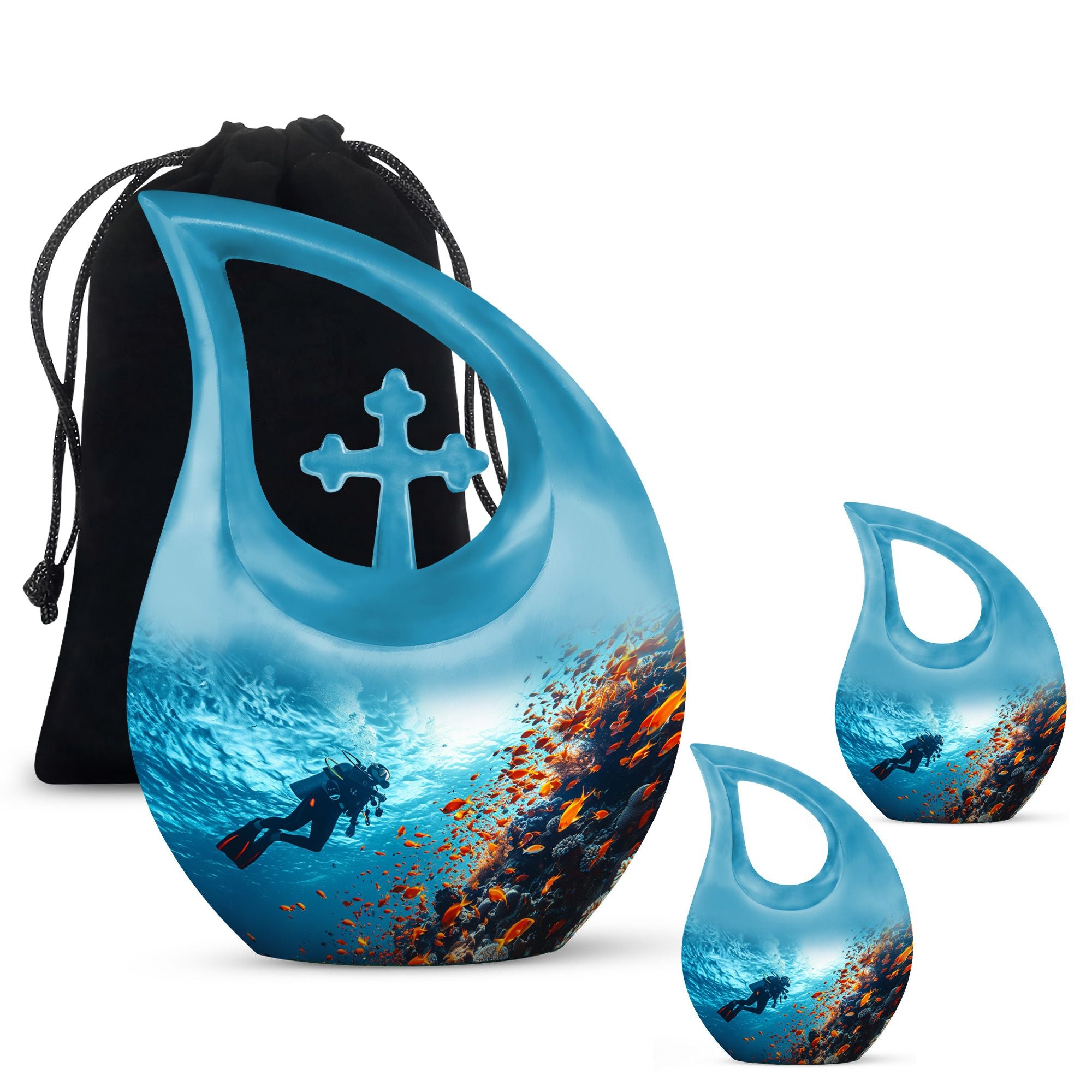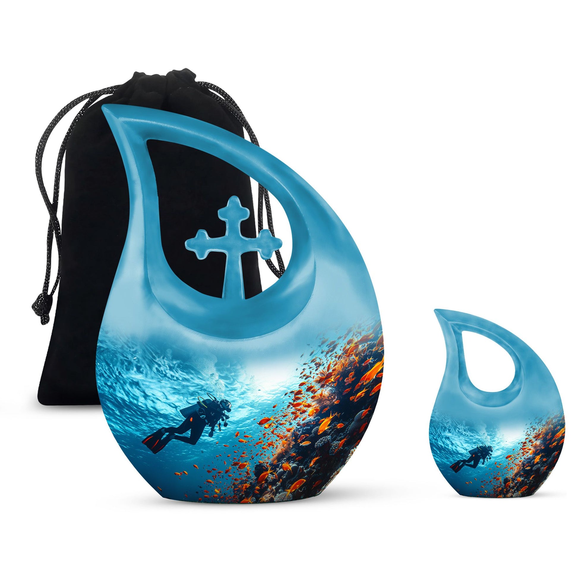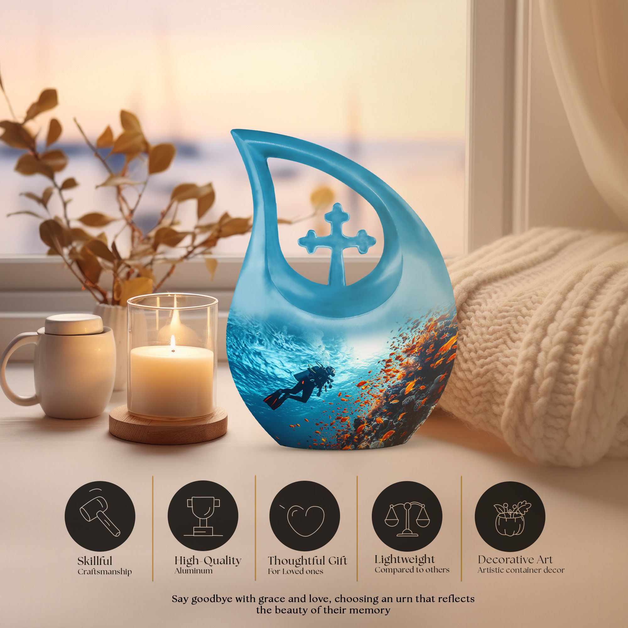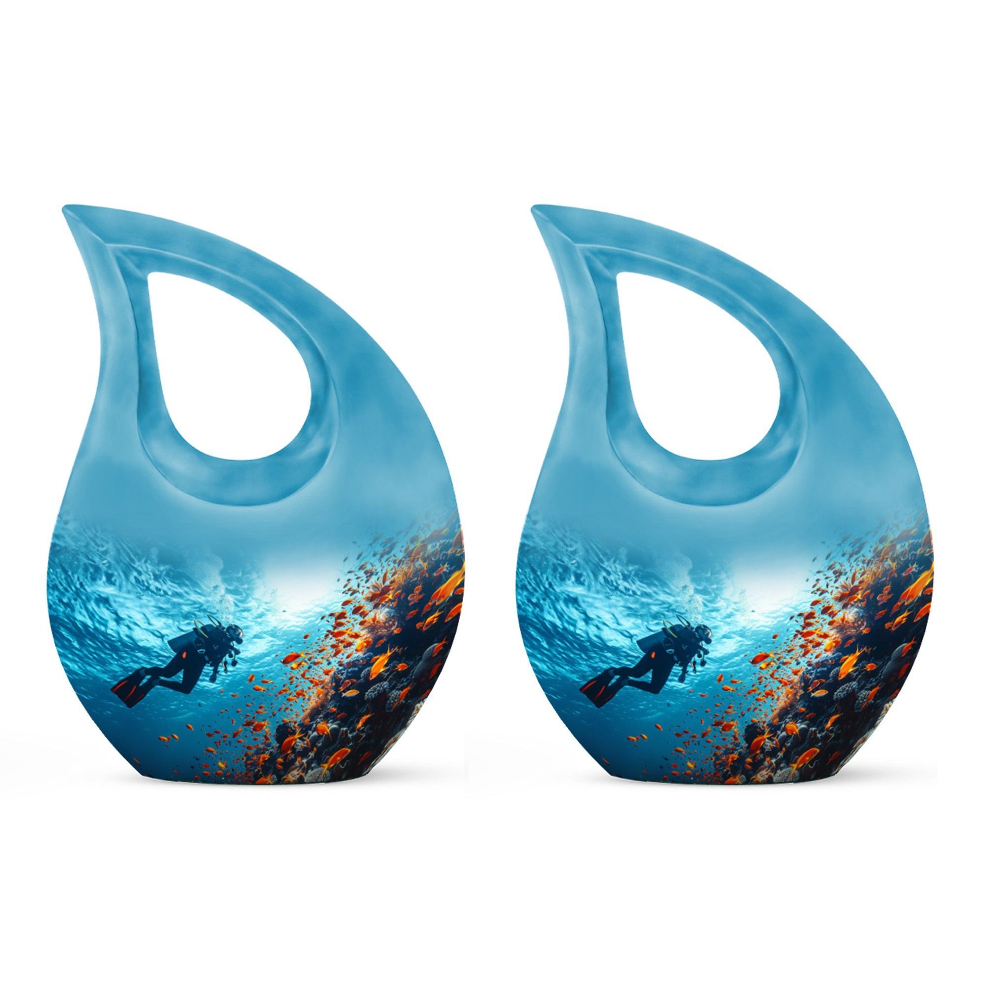 Crafted with care, this cremation urn features high-quality materials and intricate detailing that captures the spirit of the sea. Its durable construction ensures longevity while its artistic scuba diver theme adds a personal touch. Suitable as cremation urns for adult ashes women or adult urns for men & women, it balances elegance with meaningful design.