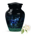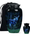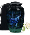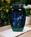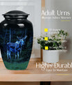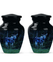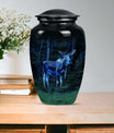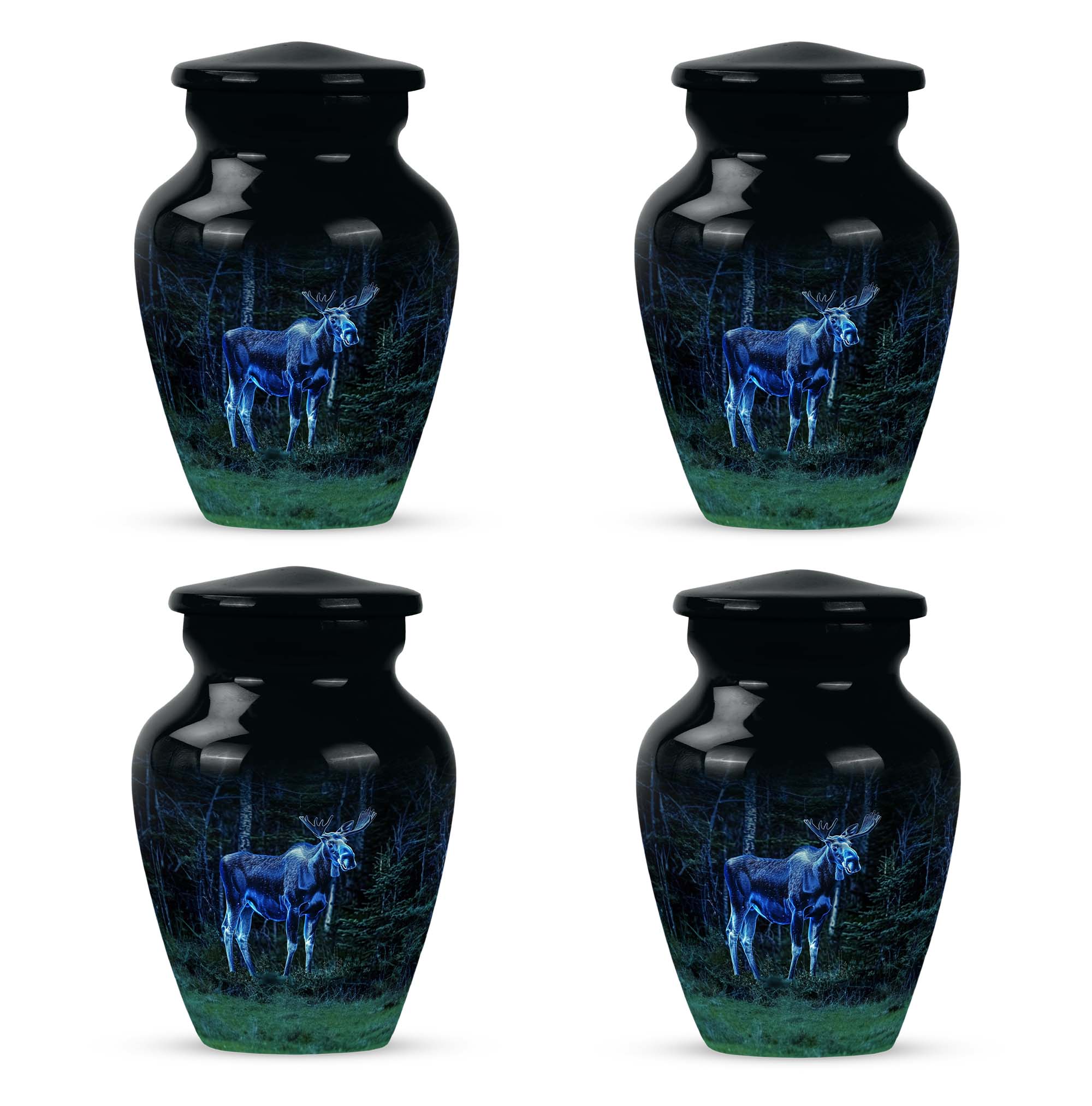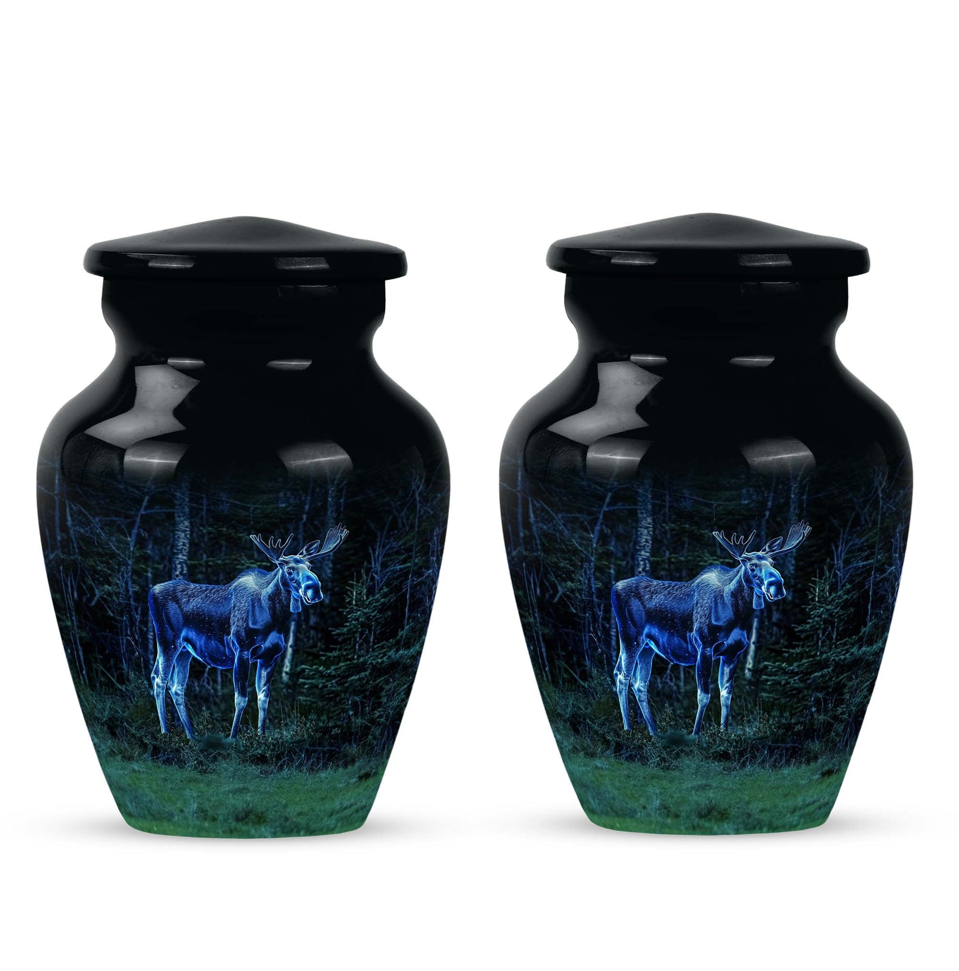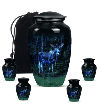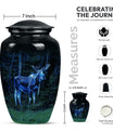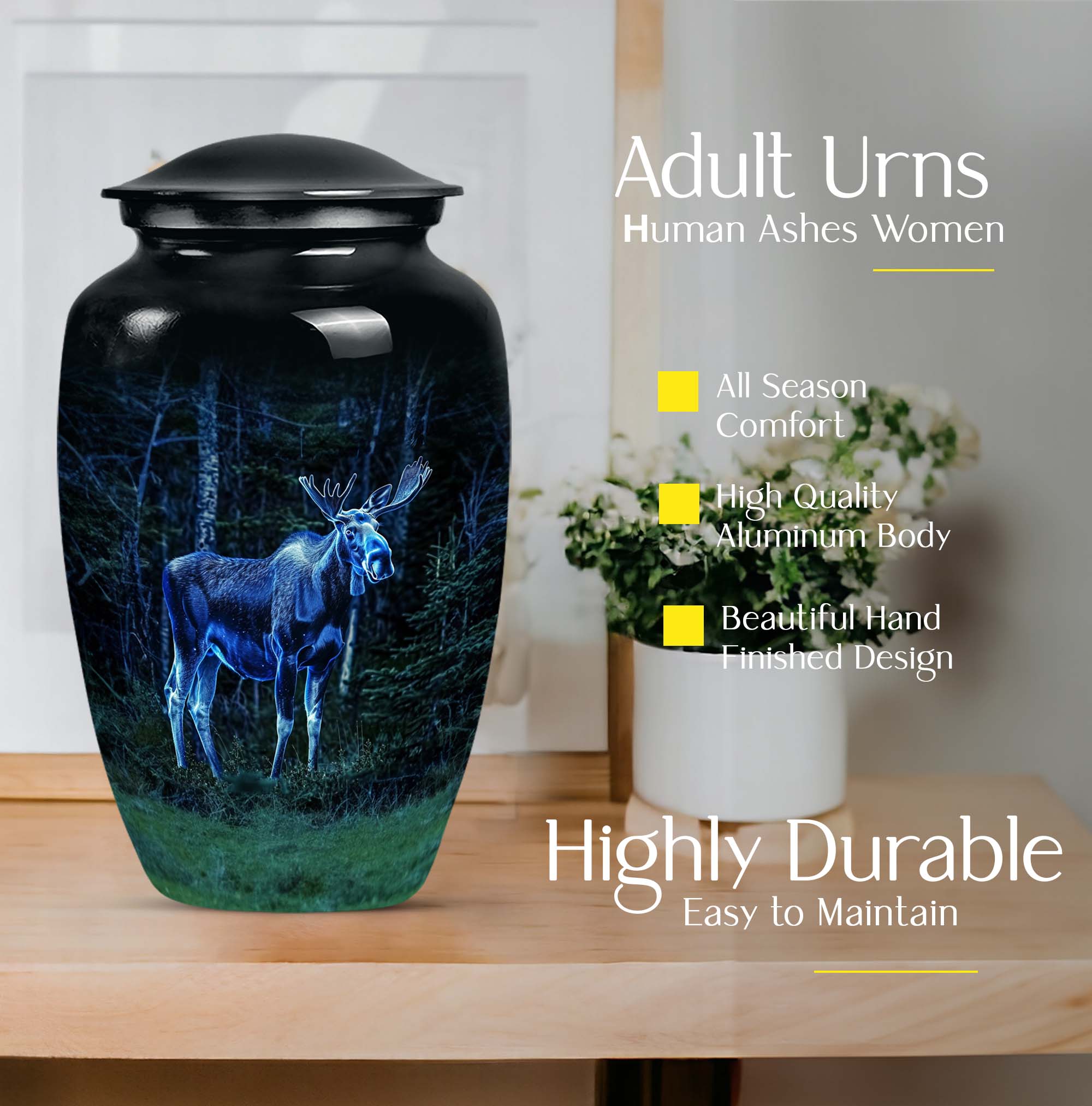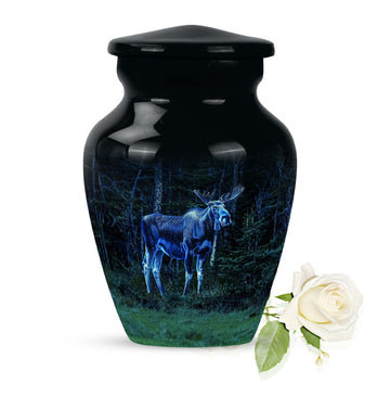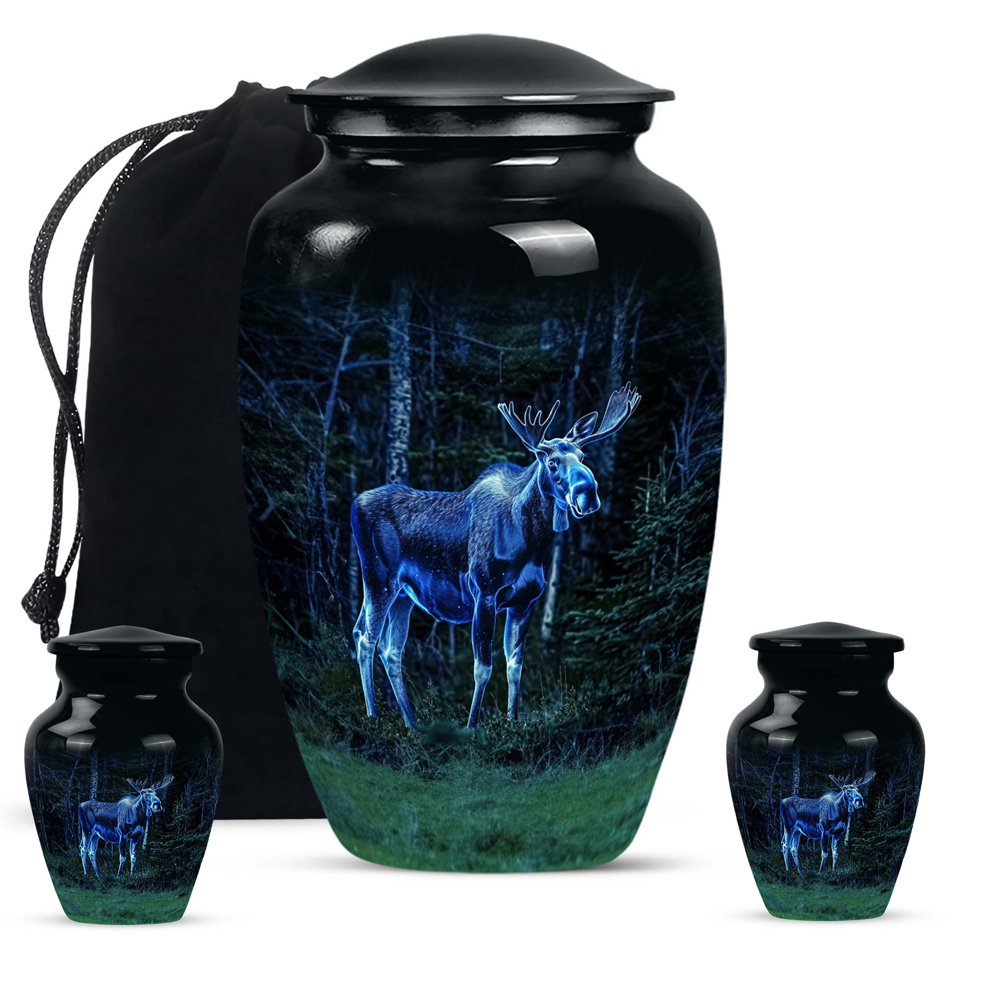 Looking to pay tribute to a cherished one with a unique touch? Discover our Moose Walking Urn, an exquisite and substantial memorial urn to honor your loved one's life journey. Composed of high-quality aluminium, this funeral urn for burial is intricately designed to embody abstract themes in a sophisticated 10-inch classic urn format. The large urn weighs a sturdy 3.3 pounds, signifying the heaviness of remembrance and unshakeable love. Designed to accommodate up to 200 cubic inches of cremains, this memorial powerfully symbolizes the spirit of your departed loved one. With an added option to personalize with engraved names, it enables an intimate connection with the essence they left behind. The urn arrives with a plush velvet pouch, ensuring containment of ashes is done with respect and dignity. Recommended keywords for search might include 'cremation urn for dad', 'urn human adult urns', and 'adult burial cremation urns'. This elegantly-crafted urn encapsulates the timeless bond between you and your beloved, serving as a beacon of their life and love.