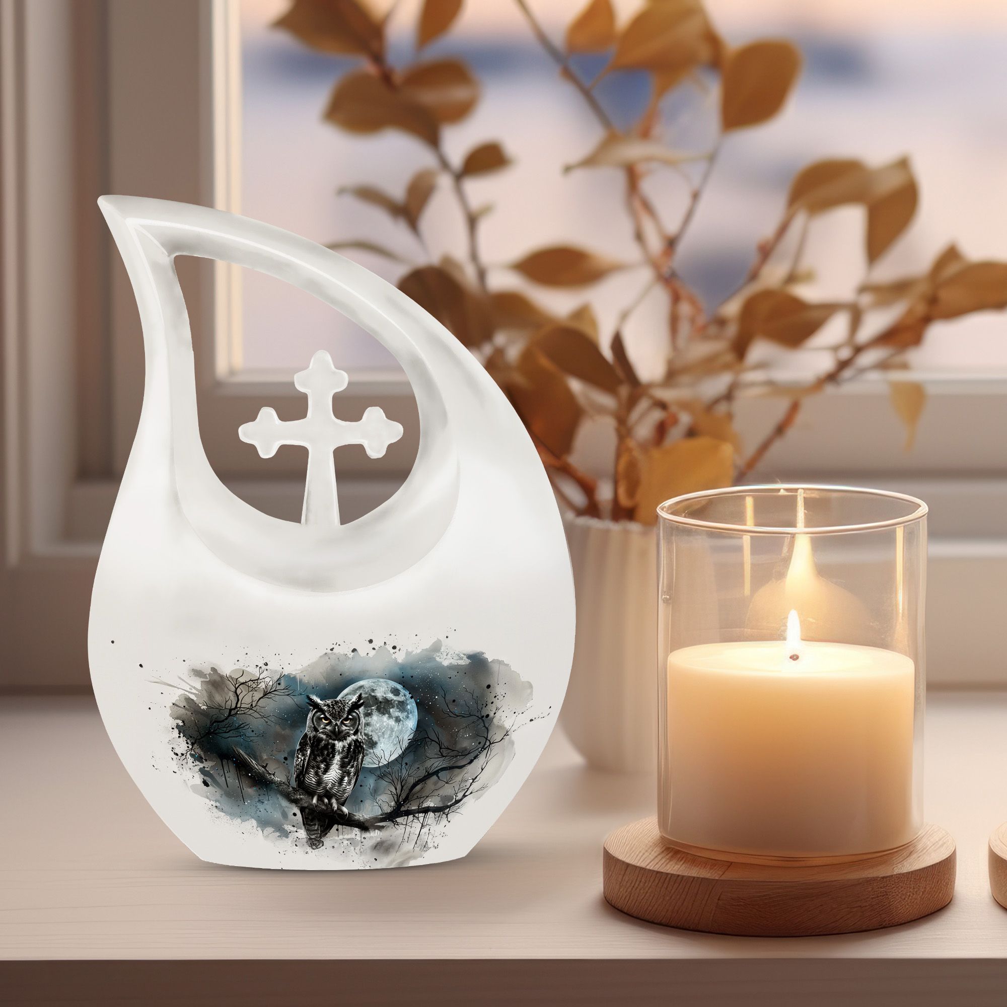 The Owl Design Cremation Urn offers a comforting and dignified way to honor a beloved family member. Thoughtfully crafted for both men and women, it serves as a meaningful choice among adult cremation urns and urns for cremation ashes mother, providing a peaceful resting place filled with love and remembrance.