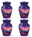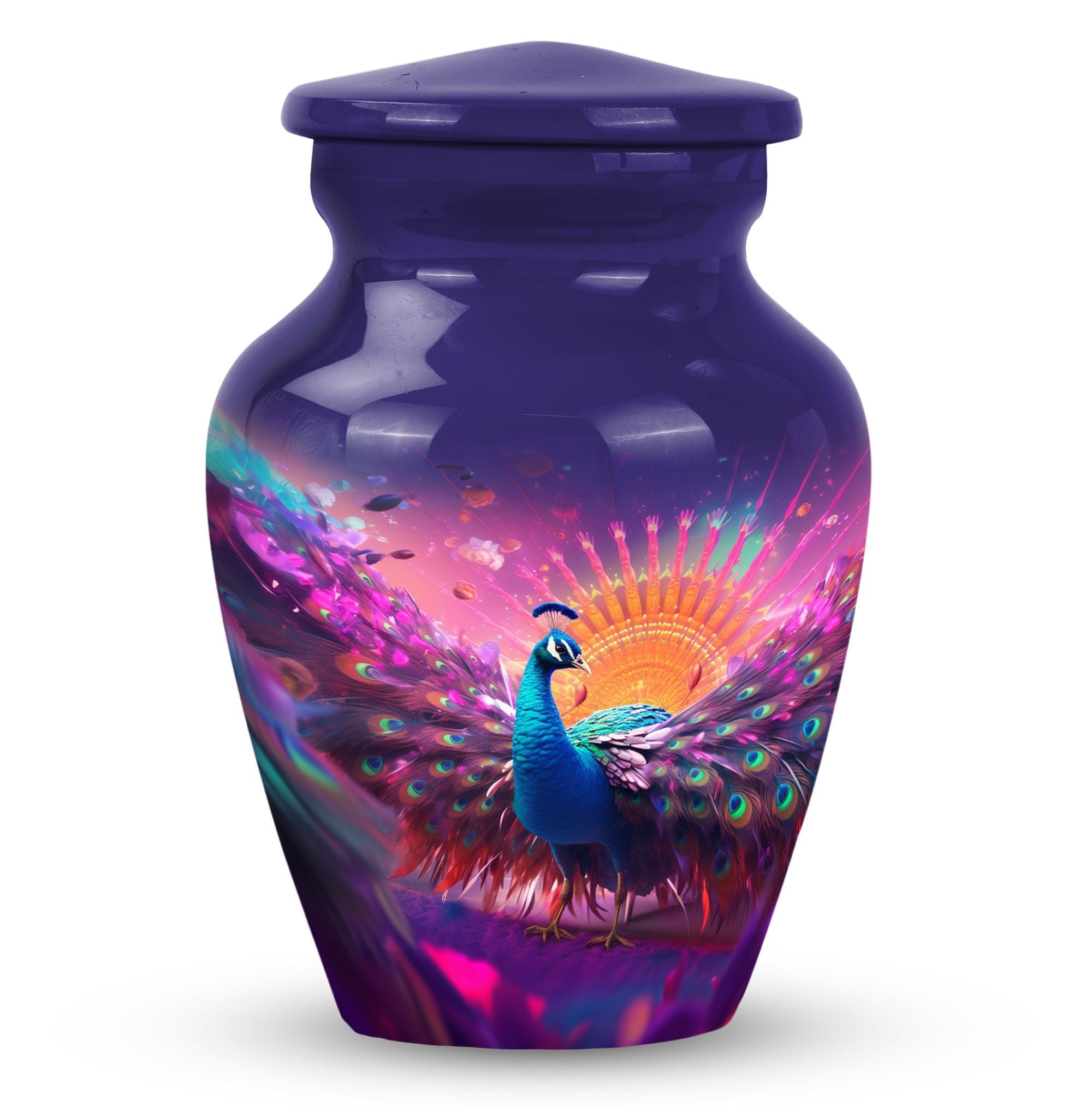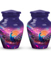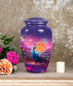 Impeccably crafted from high-quality Aluminium, this grand and dignified 10-inch Peacock Memorial Urn aptly reflects the reverence held for your treasured loved ones. With its substantial weight of 3.3 pounds, it symbolizes the weight of memories and love you carry. Filigreed with a classic design, the urn mirrors the eternal bond which continues to reside in our hearts even beyond the departure. This Large Urn, suitable for adult ashes, potentially encapsulates up to 200 cubic inches volume, and firmly secures the remnants of their physical existence. The 3-inch size urn, as part of memorial urns, is perfected with a velvet pouch, offering dignified containment. The urn also offers the function of personalization; engrave names to keep their memories closer to the heart. As an ideal urn for ashes, it’s not just a vessel, but a befitting tribute and a permanent resting place for your loved one.