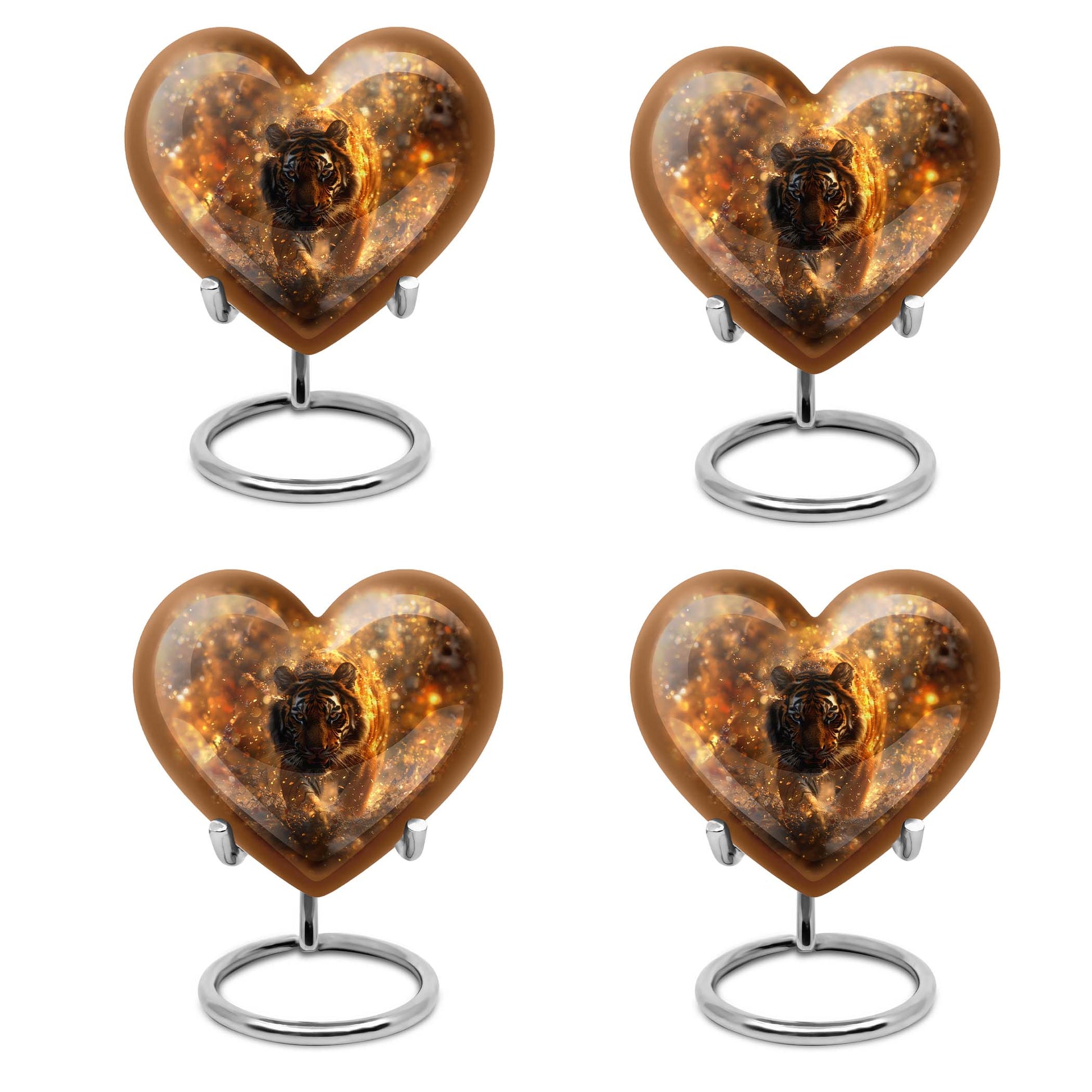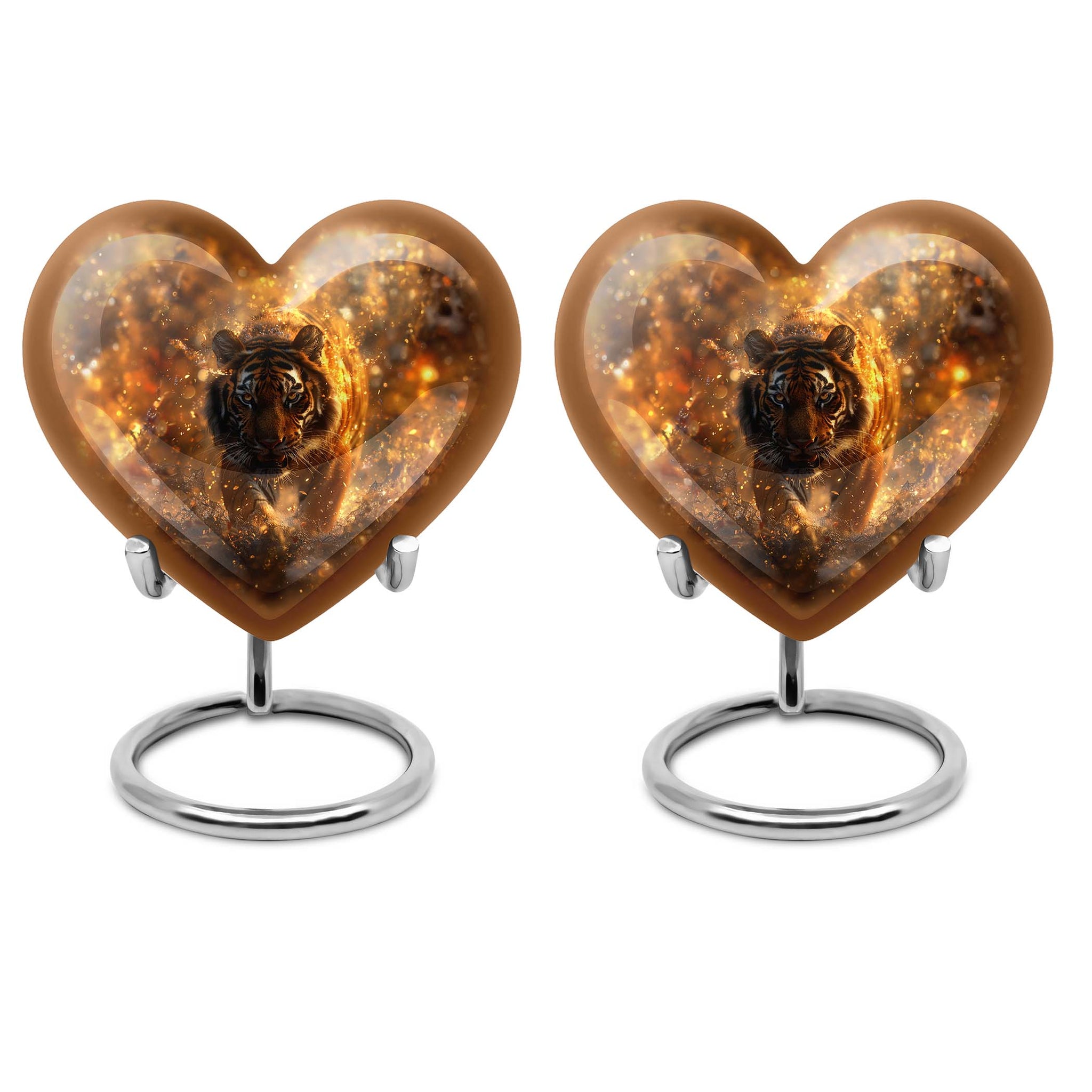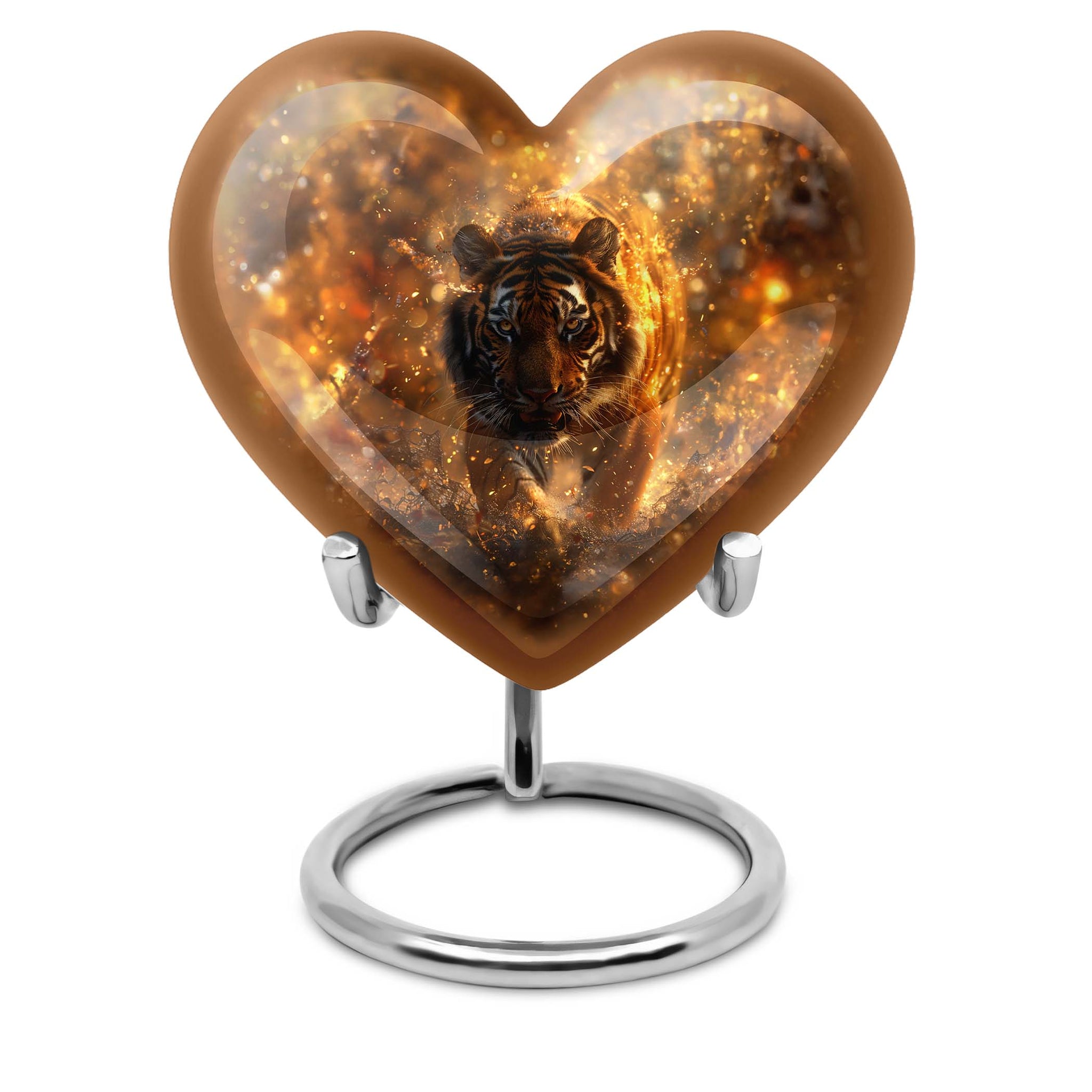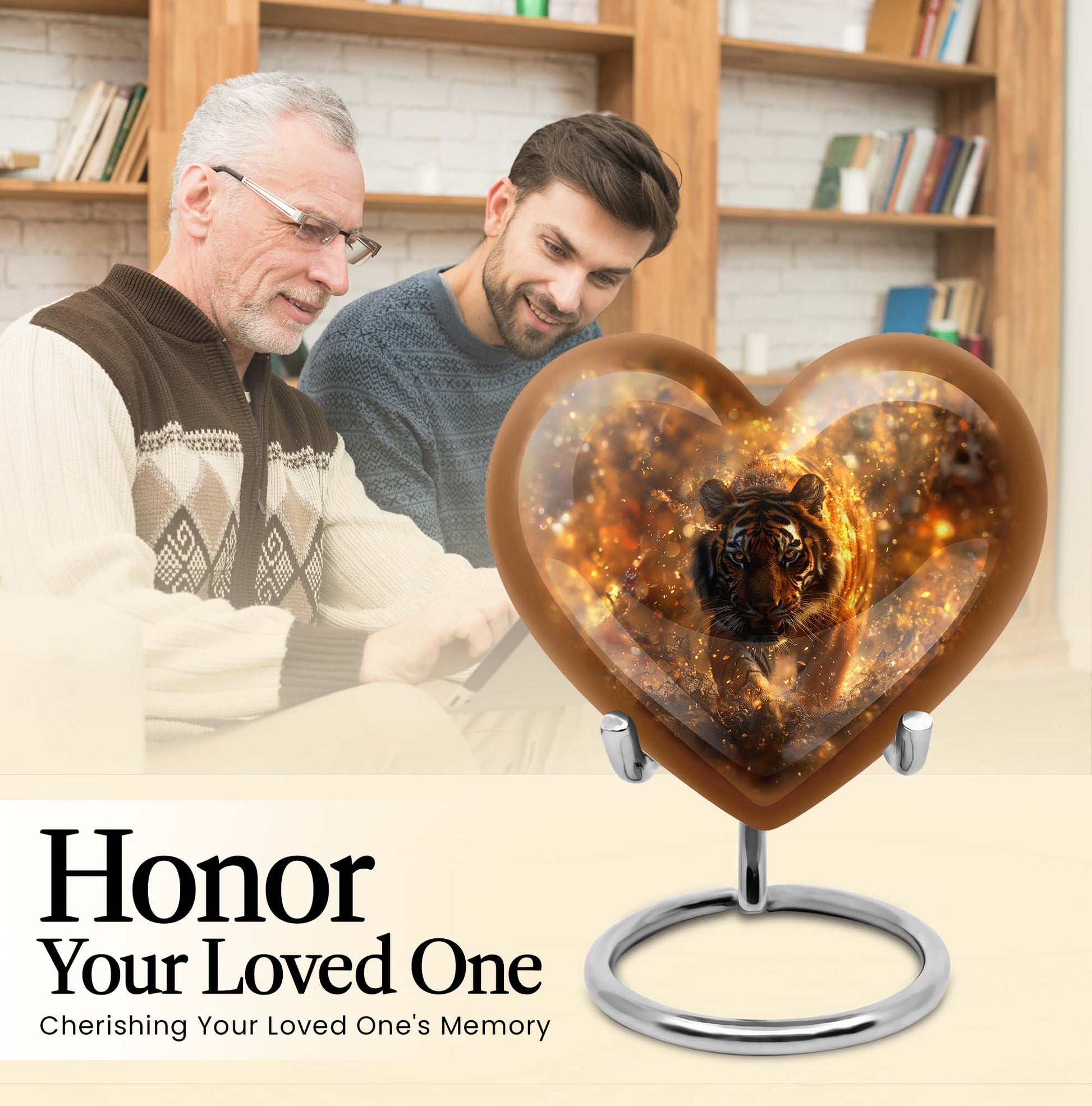 Experience the calm and serenity that this unique 10-inch Tiger Urn brings. Meticulously crafted from highest quality Aluminium, this large urn weighs 3.3 pounds and has a capacity to securely hold up to 200 cubic inches of ashes. It encapsulates a heart-shaped theme with flower motifs. This heart urn doesn't scream 'funeral urn' but whispers 'memorial', delicately encapsulating all your cherished memories. With customization option available, you can choose to personalize this funeral urn with engraved names, forever immortalizing your sentiments. Your purchase includes a cozy velvet pouch, ensuring the containment of ashes is carried out in the most respectful and tasteful way. Ideal keywords to search for this funeral urn for human ashes include 'tiger urn', 'memorial urns', 'lasting memories' and 'timeless stone urns'. Specially designed to be a rendezvous of remembrance, this urn is more than just a funeral supply - it's a celebration of life.