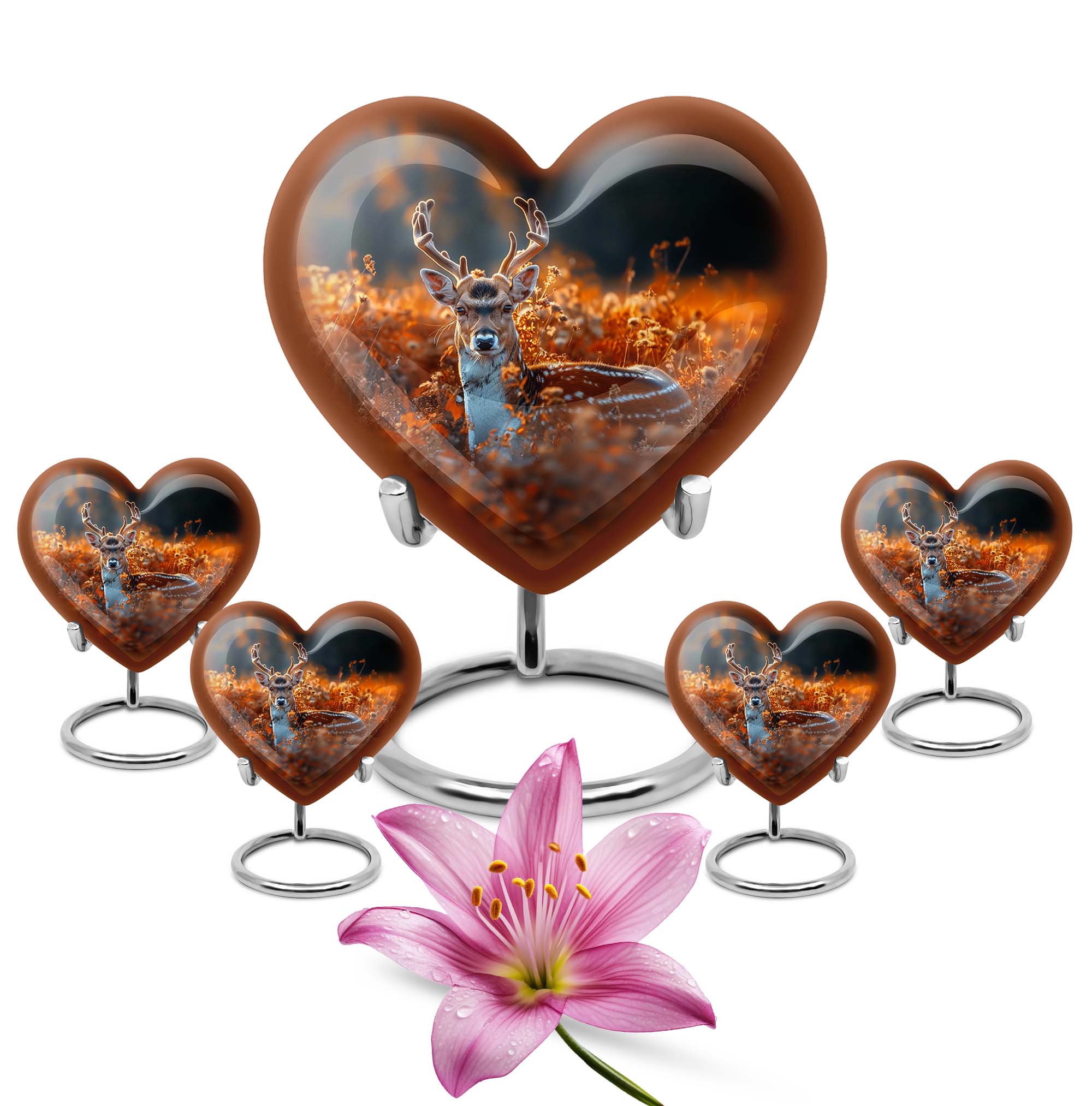 Here lies the perfect choice for a tactile remembrance - a large 10-inch Deer Urn. Crafted from endurable aluminium, this heart-shaped urn offers a distinctive finish and an intimate touch to your memorial with its unique Gramophone theme. This symbolic memorial urn weighs only 3.3 pounds and fits comfortably in your space with its 10-inch height. Ideal for both male and female, it holds up to 200 cubic inches of ashes, ensuring a symbol of precious memorial prevails in your life. Your urn purchase accompanies a soft velvet pouch, easing the containment and preservation of the remains. Amp up the relevance with our offered customization - make it personal by etching engraved names on it. Sought-after for its convenience, our urn stands as an epitome of memorial ceremony supplies and seamlessly fits your search for either 'funeral urns for human ashes adult man' or 'cremation urns for funeral'. With this purchase, honor your dear departed with this beautifully designed, detailed deer urn.