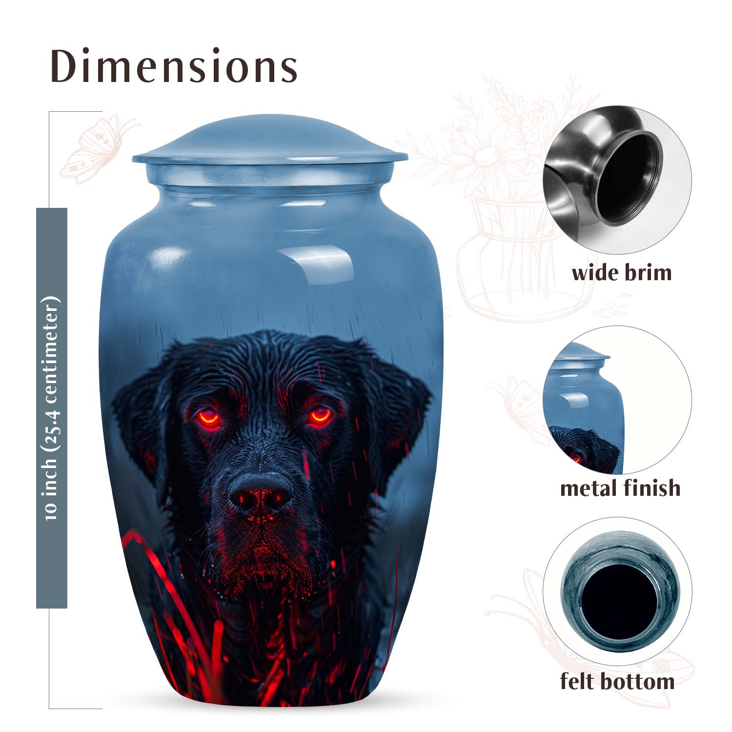Meticulously handcrafted, this urn reflects exceptional artistry and lasting quality. Its bold black finish, accentuated by fiery, glowing eyes, creates a powerful visual statement that celebrates the spirit of your beloved pet. Constructed from durable aluminium, it’s ideal for families seeking pet dog urns for ashes or pet cremation urns for dogs that combine durability and emotional warmth. This urn is a fitting choice for dog pet cremation urns enthusiasts who appreciate a blend of art, love, and craftsmanship.
