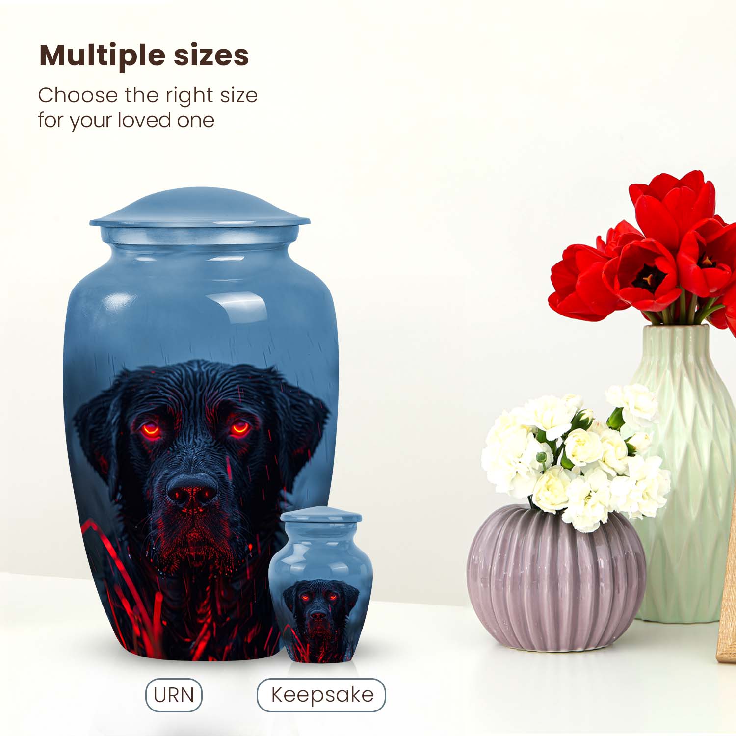 Losing a beloved pet leaves a lasting void, and finding the perfect way to honor their memory is deeply personal. The Black Dog Cremation Urn with Fiery Eyes offers a heartfelt tribute to your loyal friend, symbolizing strength, protection, and eternal love. Thoughtfully designed for those who cherish their furry companions, this piece stands as one of the most meaningful pet urns for dog ashes, keeping memories close in a dignified, comforting way.