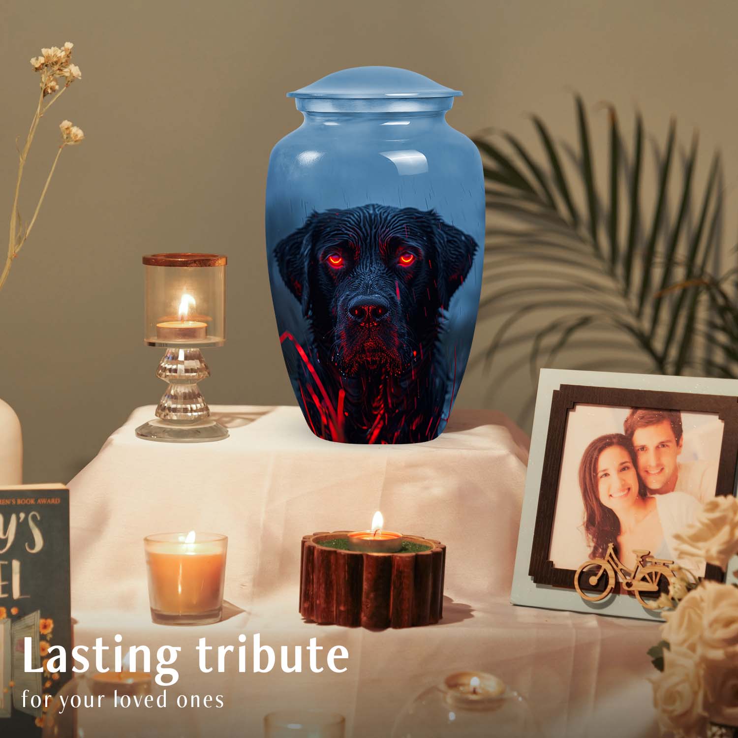 Whether used as a decorative tribute at home or for respectful placement in a memorial space, this piece is suitable for urns for pet cremation remains large dogs or smaller companions. It also resonates with those seeking reminded pet cremation urns for dog and cat ashes, as its design represents unity, strength, and loyalty across all pets.