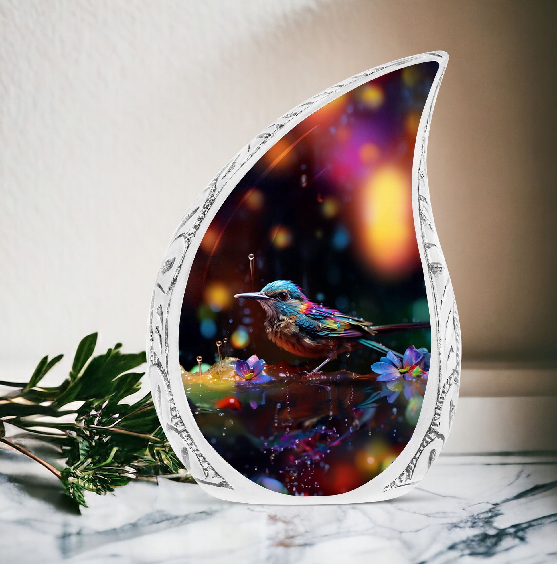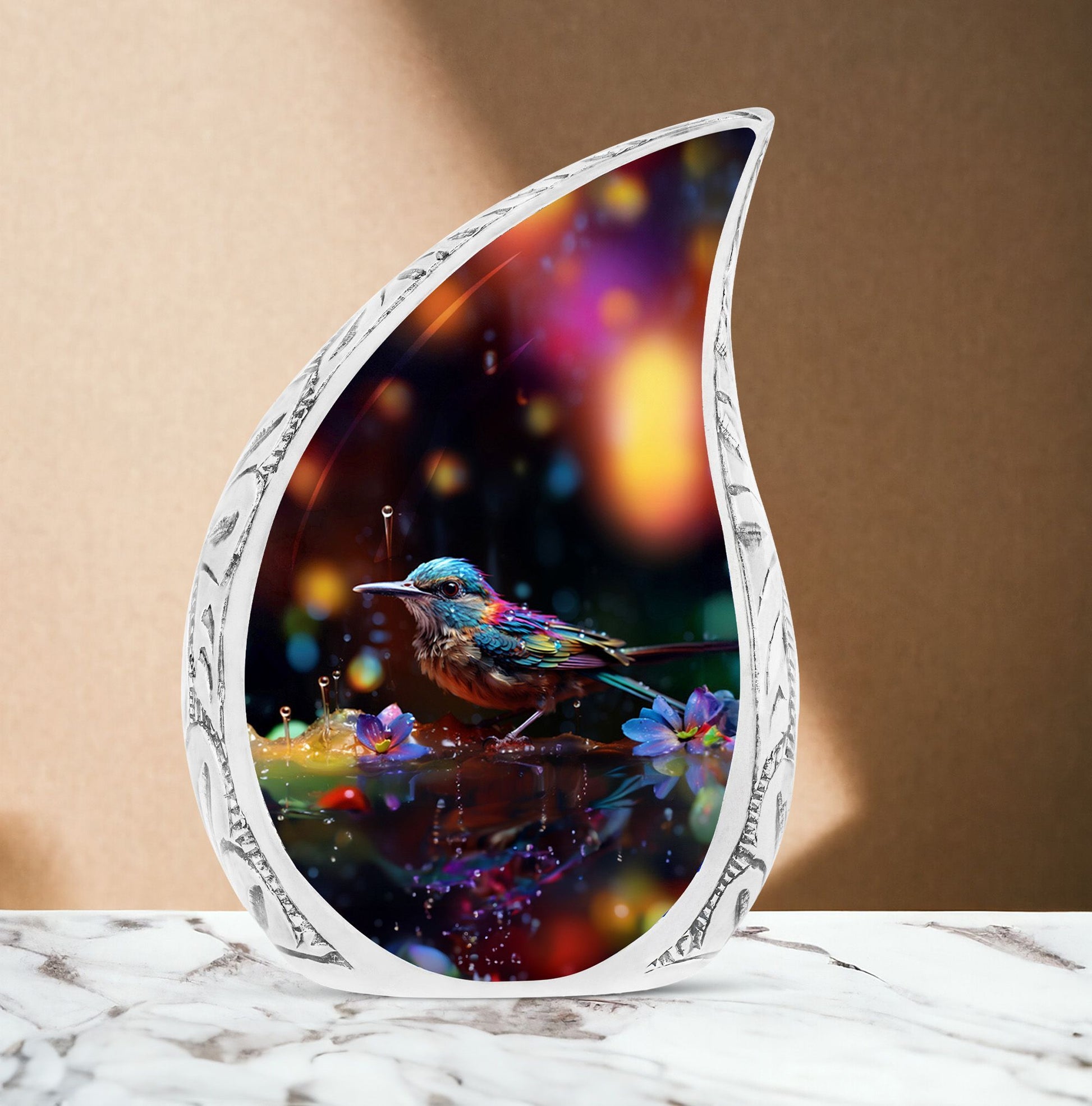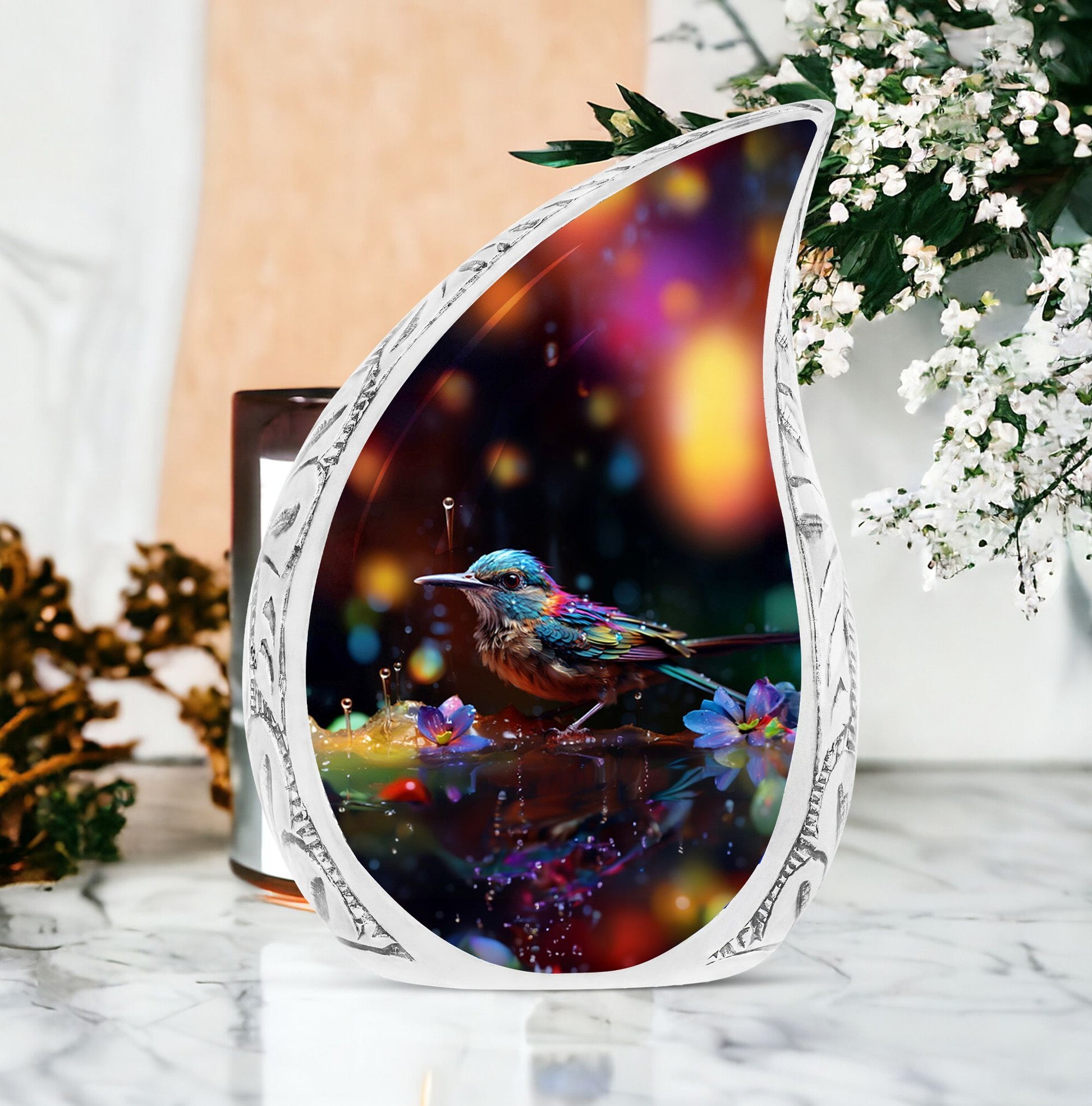 Treasure the memories of your loved ones with our Blue Sparrow Urns for Human Ashes. Each cremation urn is masterfully crafted from durable Aluminium material, featuring a Classic Urn design that is both timeless and elegant. With a considerable size of 3 inches and a weight of 3.3 pounds, the urn showcases an impressive capacity of 200 cubic inches, assuring a worthy vessel for your cherished memories. Each unit is meticulously crafted, standing at a stately height of 10 inches, ensuring it fit into various memorial settings with ease. We offer unique customization options, allowing you the freedom to personalize it with the engraved names of your beloved. We understand the importance of privacy and respect for the departed, hence, all urns come with a velvet pouch for containment of ashes for a more dignified handling. Explore our collection of large urns, each piece designed to function not just as ashes holders for cremation, but also as a decorative urn for human ashes. Find solace and peace with our Blue Sparrow Urns – thoughtful and considerate artefacts to honour those we hold dear.