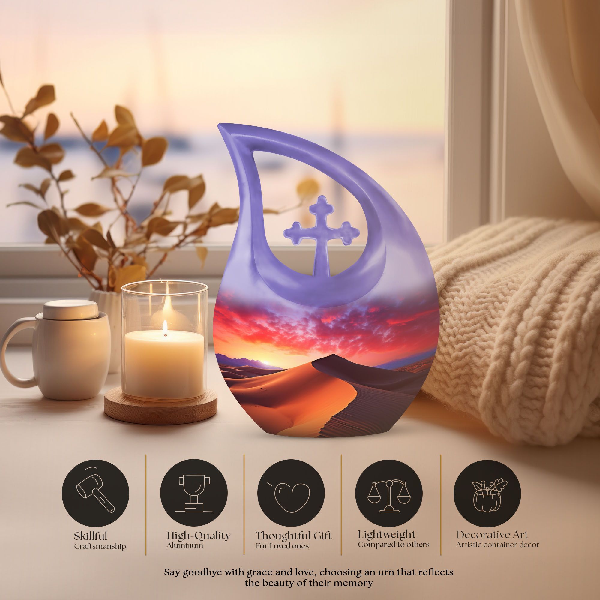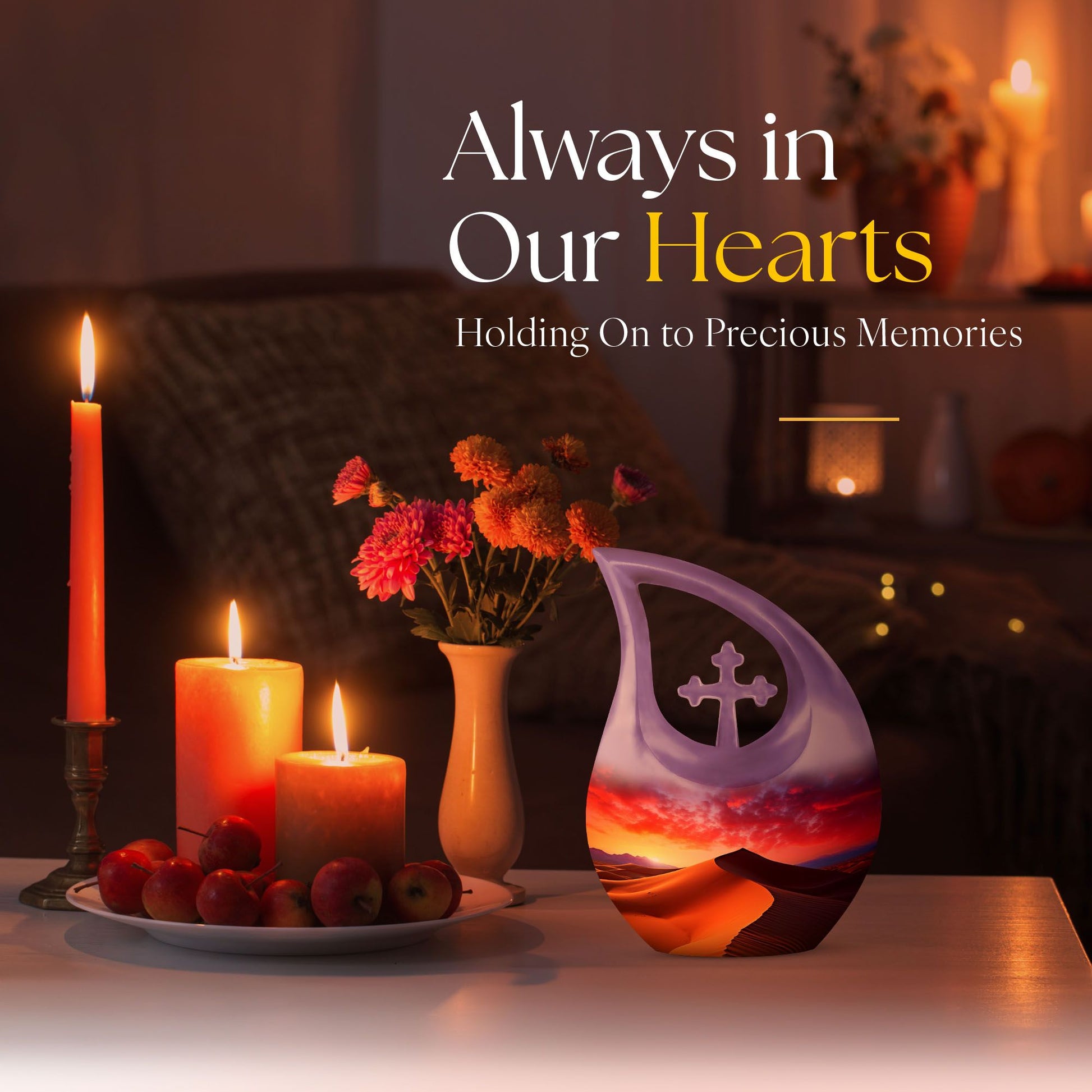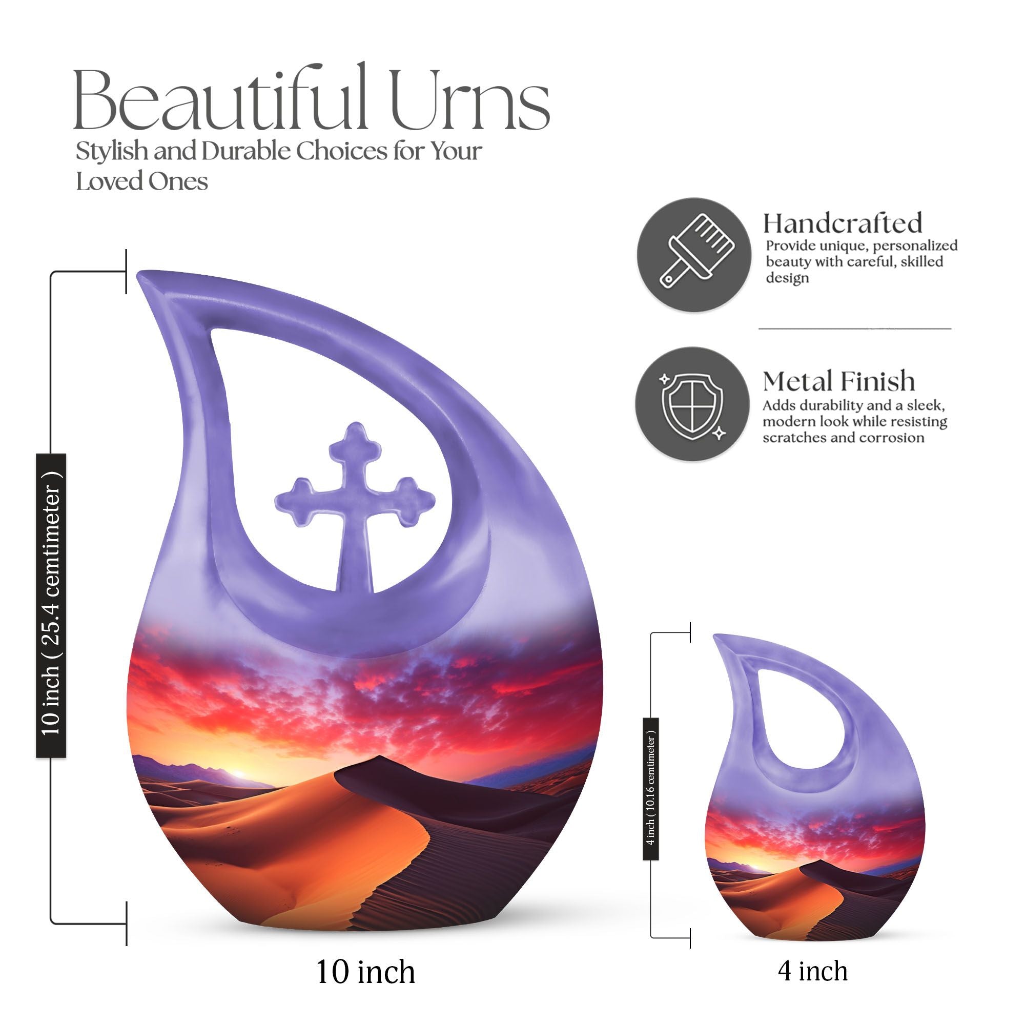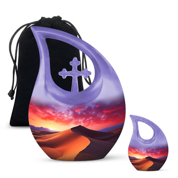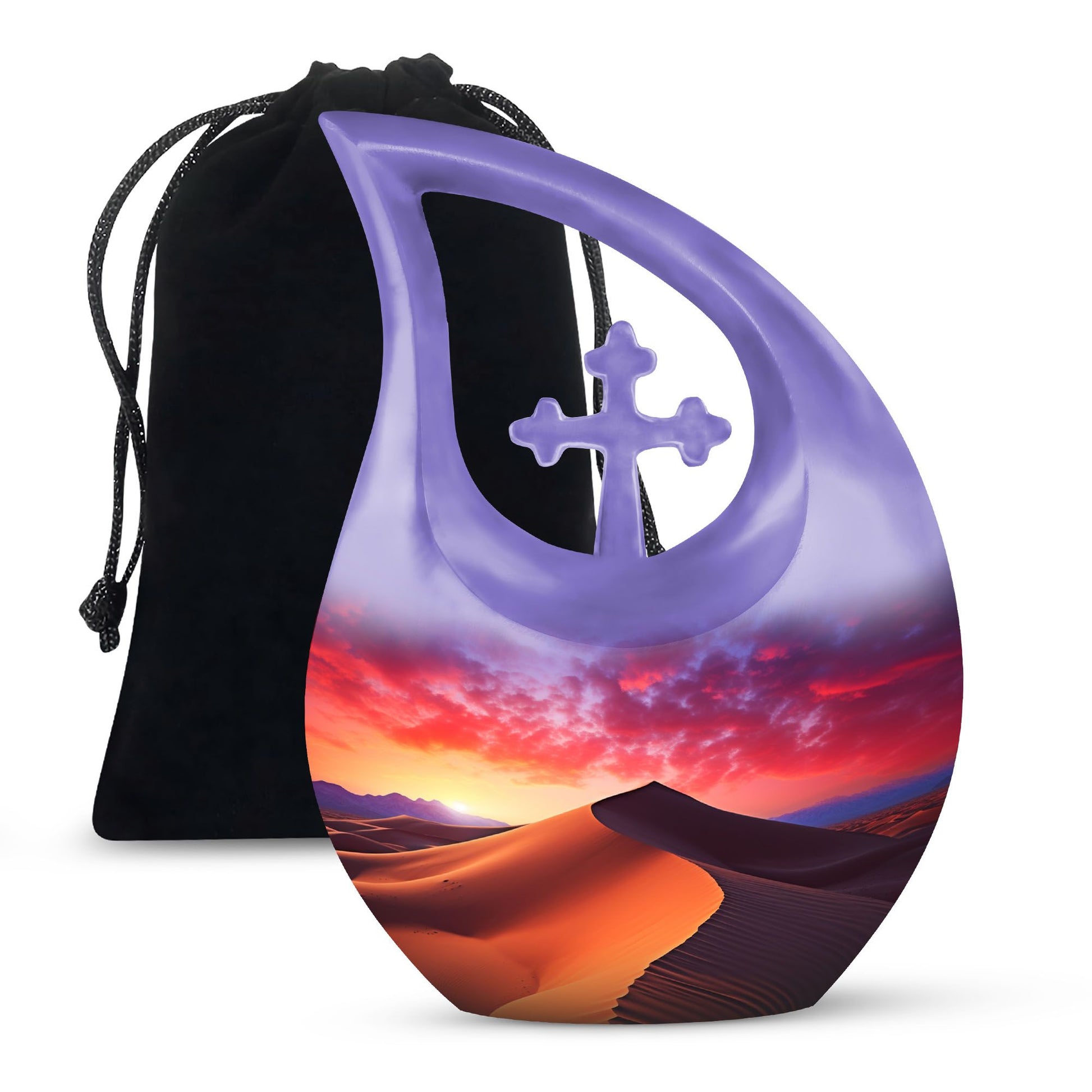 The Desert Funeral Urn for Ashes radiates warmth and peace, inspired by the rich purple tones of a desert sunset. This elegant urn serves as a heartfelt tribute to a beloved soul, perfect for both urns for adult female ashes and human urns for ashes adult male. Its design reflects serenity and strength — a symbol of love that endures beyond life’s horizon.