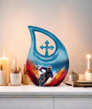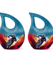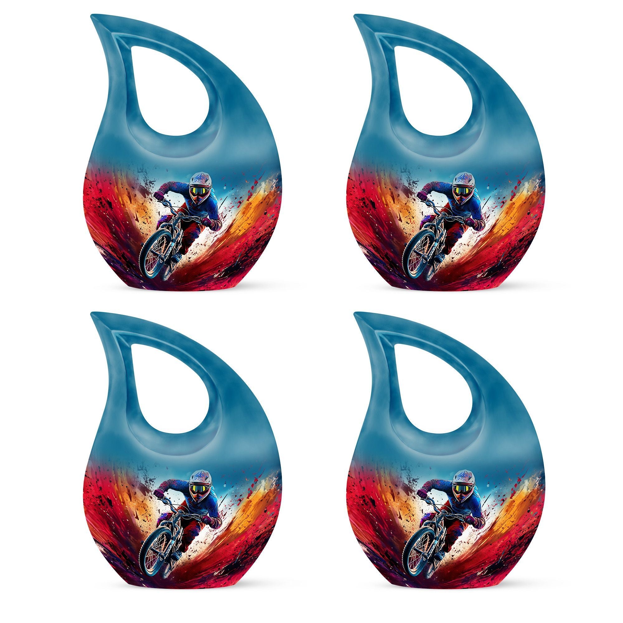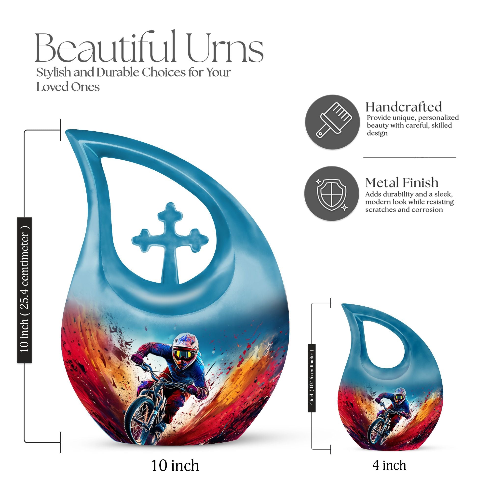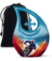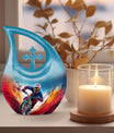 Expertly crafted from durable aluminum, this sports cremation ashes urn for adults features a breathtaking mountain landscape with a cyclist silhouette—symbolizing resilience, movement, and the beauty of nature. With its 10-inch height and secure screw-top lid, it offers dependable protection and a full 200-cubic-inch capacity. This urn also pairs beautifully with complementary keepsake pieces such as memorial urns for human ashes keepsake, urn for ashes keepsake, keepsake urn for human ashes, urn keepsake human ashes, or keepsake urns for human ashes dad. For families wishing to share ashes among loved ones, it can be combined into an urn keepsake combo set, urn with keepsake combo, or urn keepsake for human ashes arrangement.