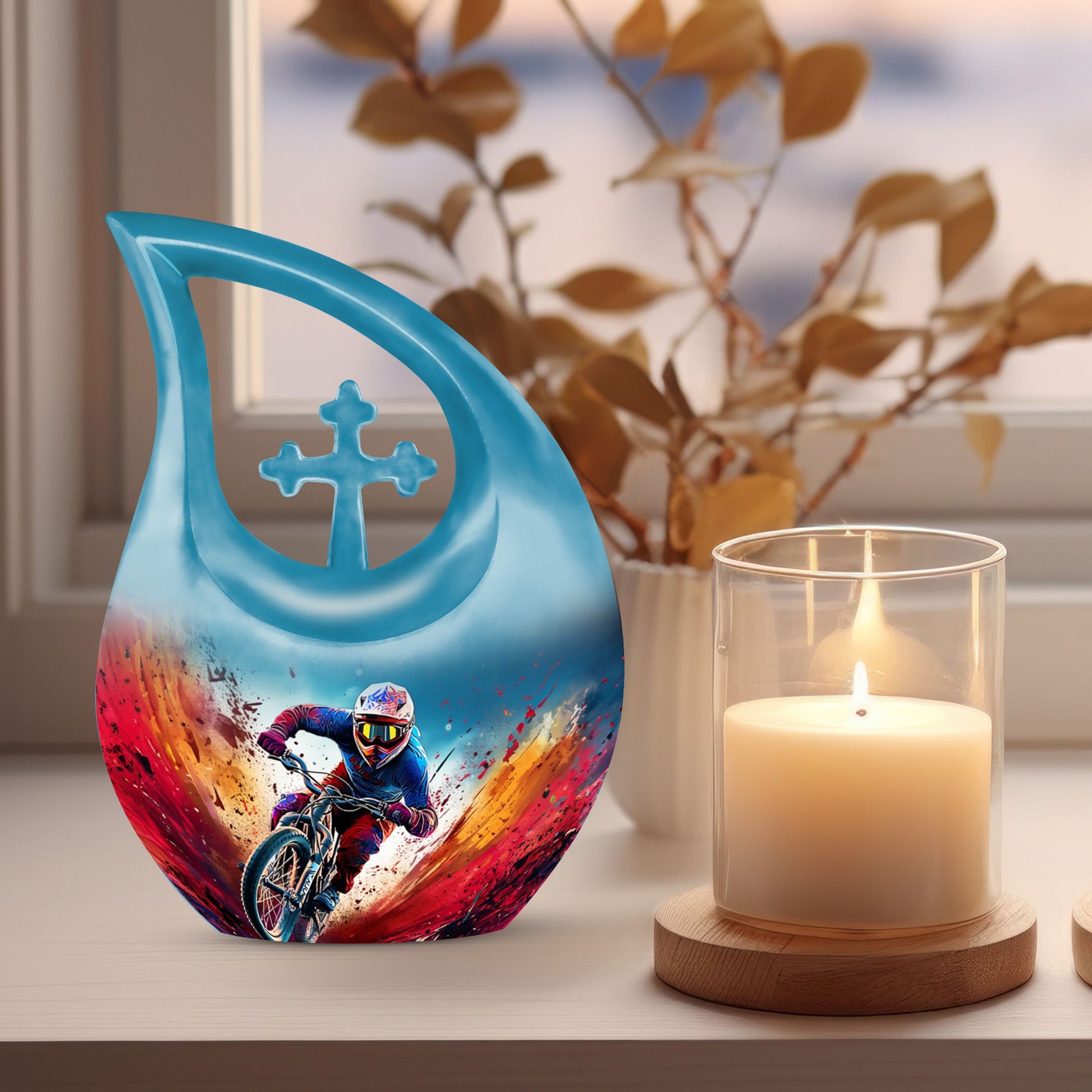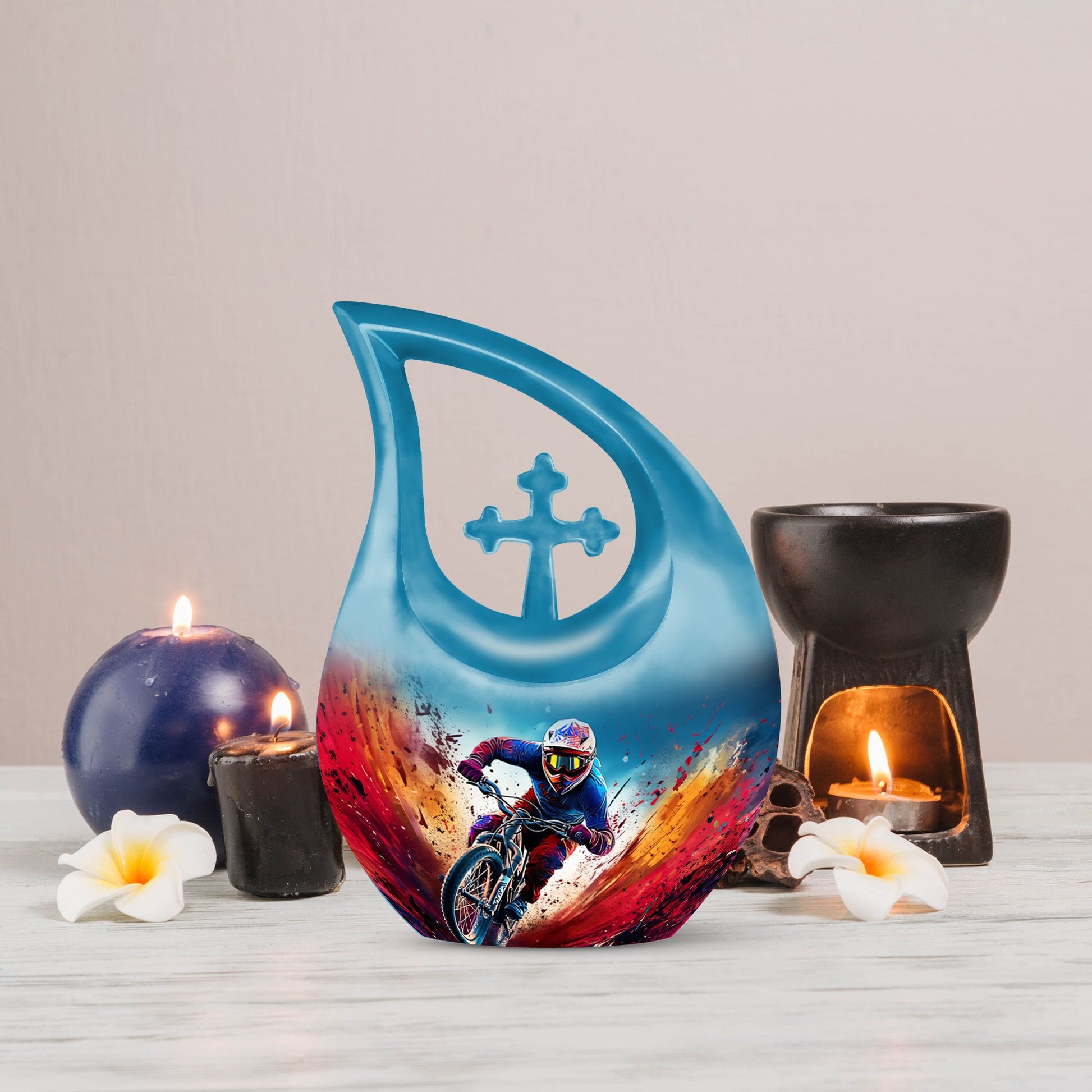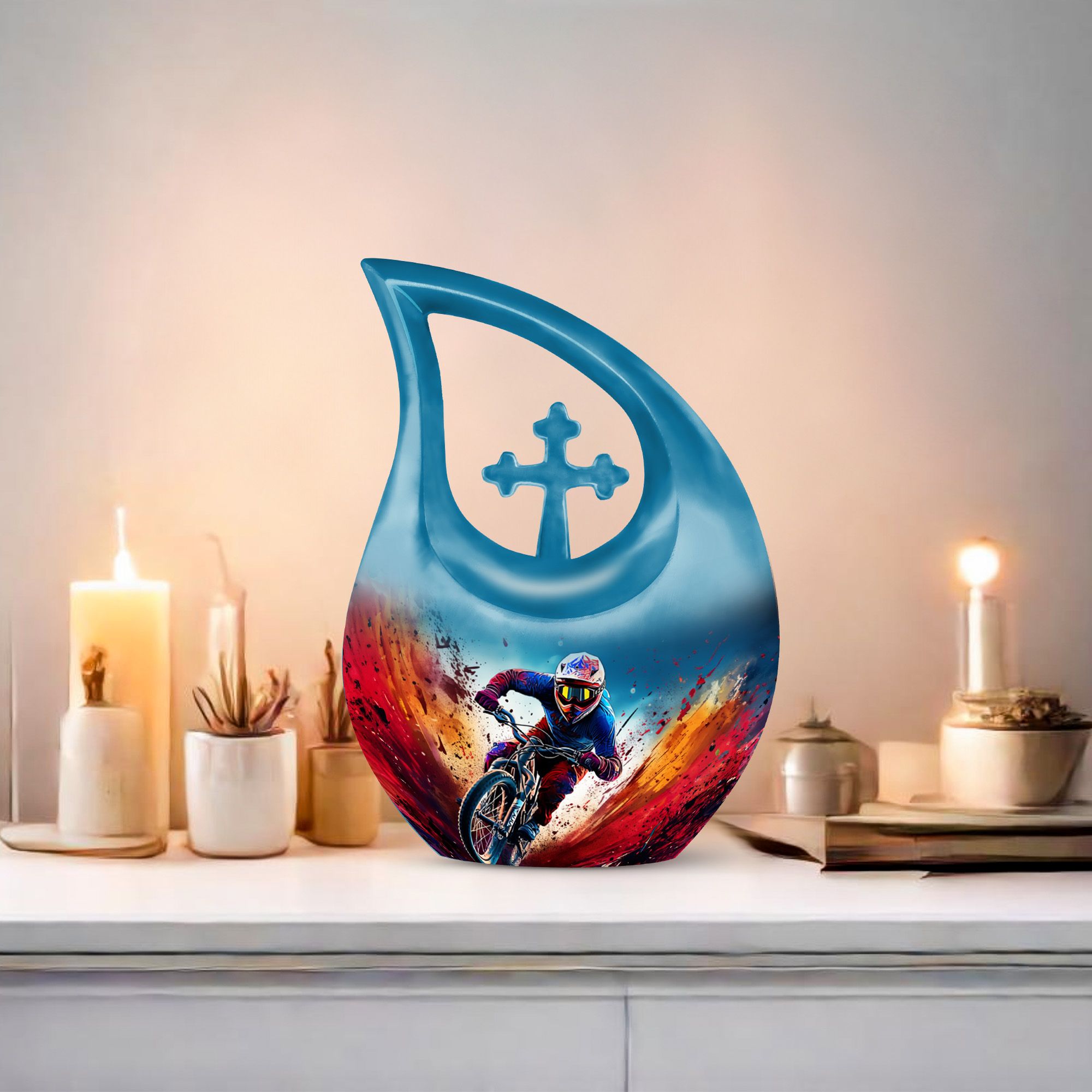 A heartfelt tribute for the adventurer at heart, this Mountain Bike Funeral Urn for Men captures the spirit of freedom, strength, and passion. Designed for families wanting a meaningful memorial, it serves as a dignified resting place and a comforting reminder of the trail your loved one traveled in life.