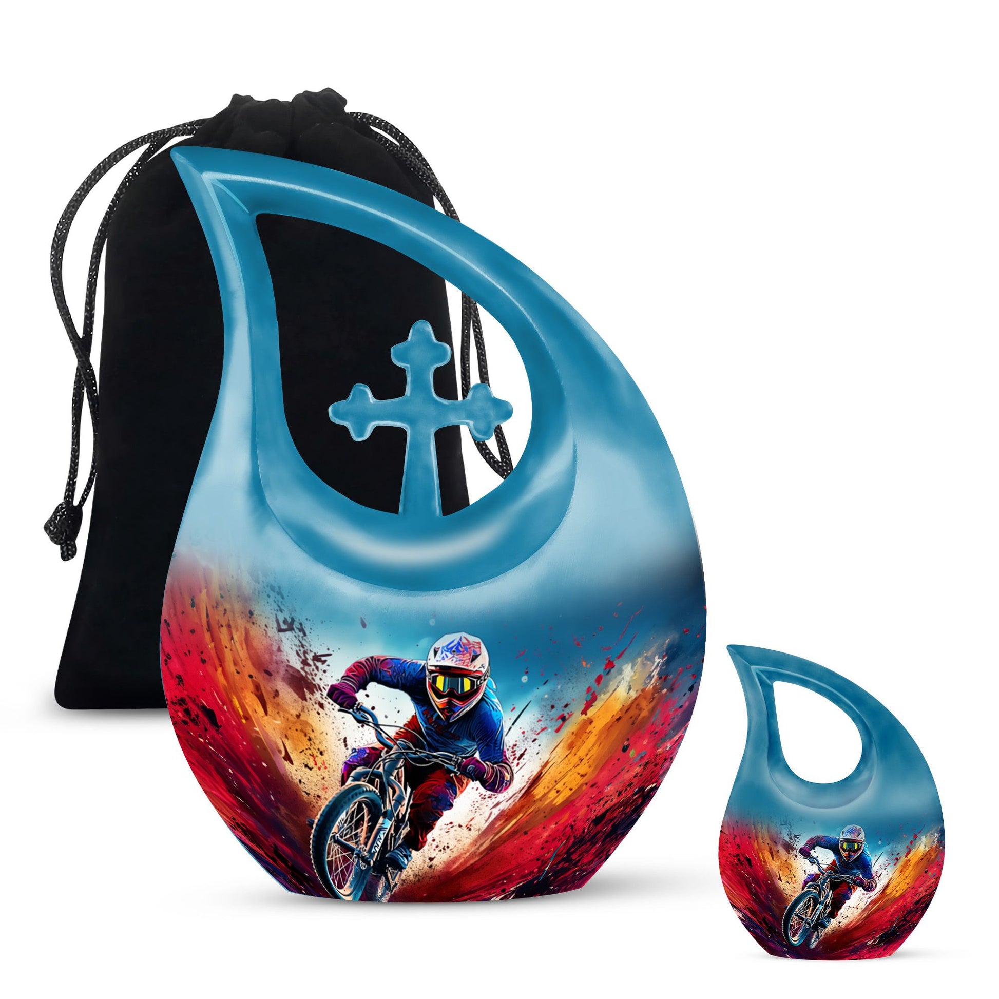 A powerful and symbolic tribute, this mountain bike urn honors a life lived with passion, courage, and the love of the open trail.