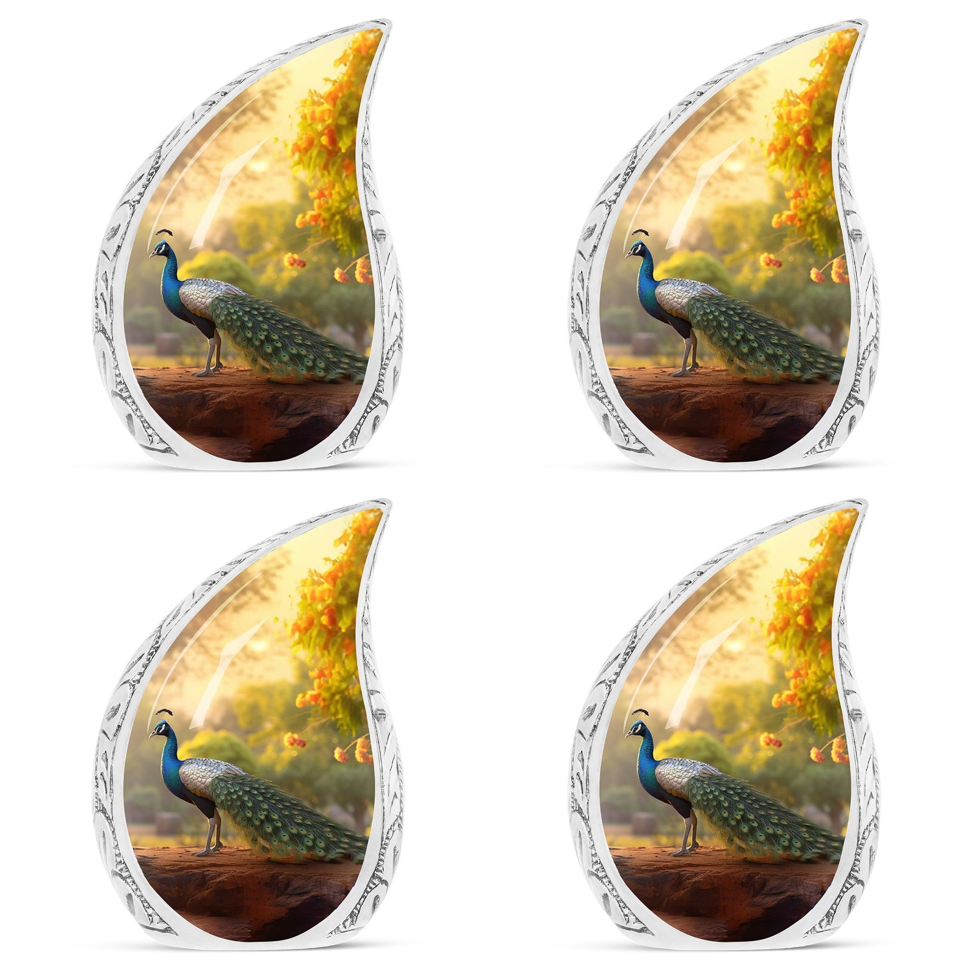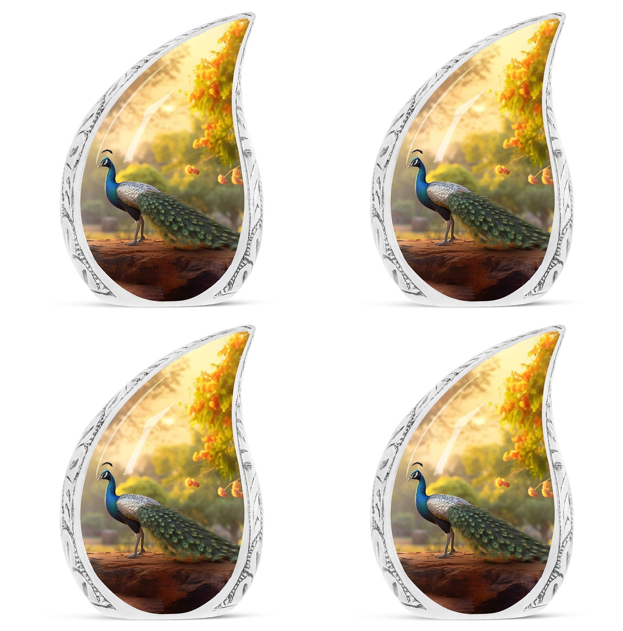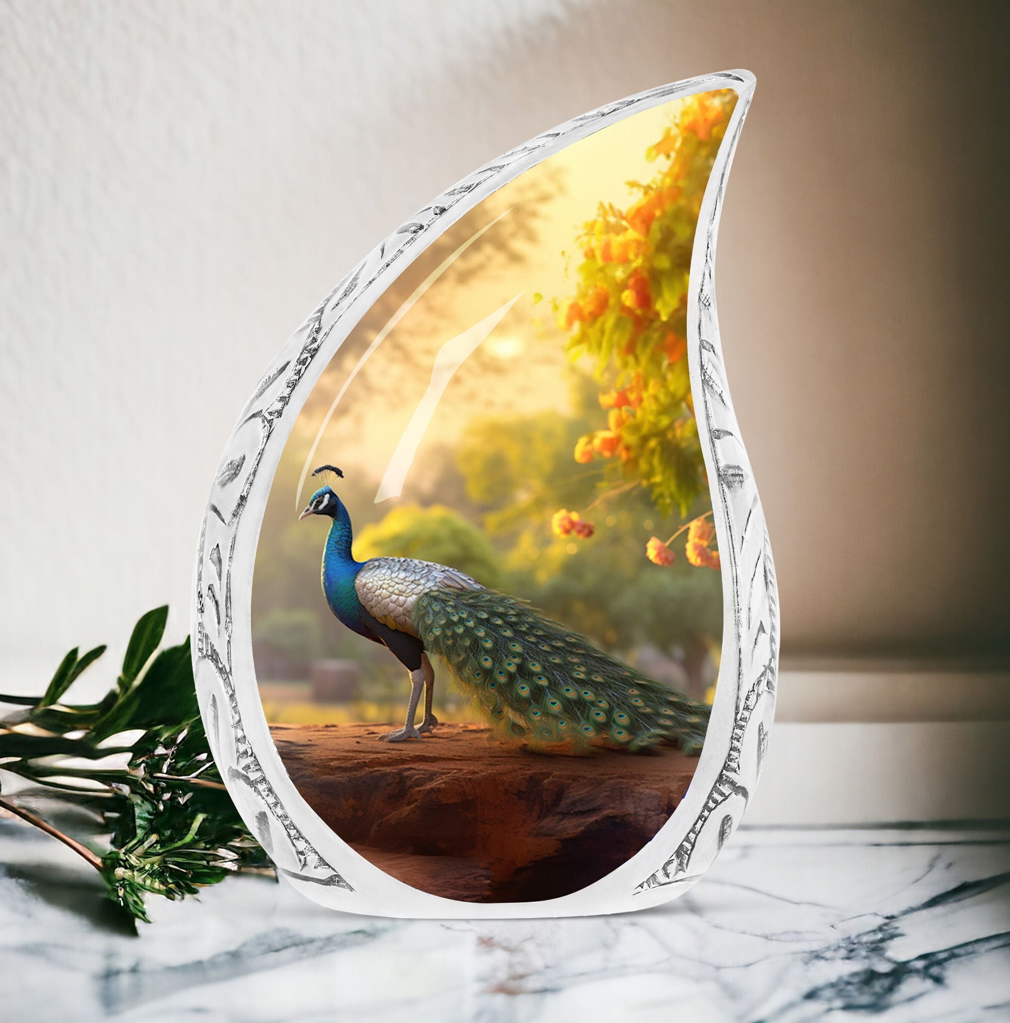 Keep the essence of your deceased loved ones alive with our classically designed 3-inch Peacock Urn. This substantial and sturdy memorial urn, weighing 3.3 pounds and standing 10 inches tall, is ideal for adults and seniors seeking an honorable resting place for the departed. With an ability to contain up to 200 cubic inches of ashes, it holds significant meaning in the ceremony of remembrance. Carefully cast in Aluminium, our Large Urn is a beautiful rendition of the traditional human cremation urn, blending seamlessly into your everyday life. Every package comes with a luxurious velvet pouch to comfortably contain the ashes. Add a personal touch to your memorial gift by making use of our customization feature, which allows for names to be intricately engraved. This modern urn for human ashes is not just an ashes holder – it’s a remembrance, a tribute, and a loving gesture for those who are no longer in our lives but forever in our hearts. Its simple yet elegant design makes it a perfect burial urn for ashes.
