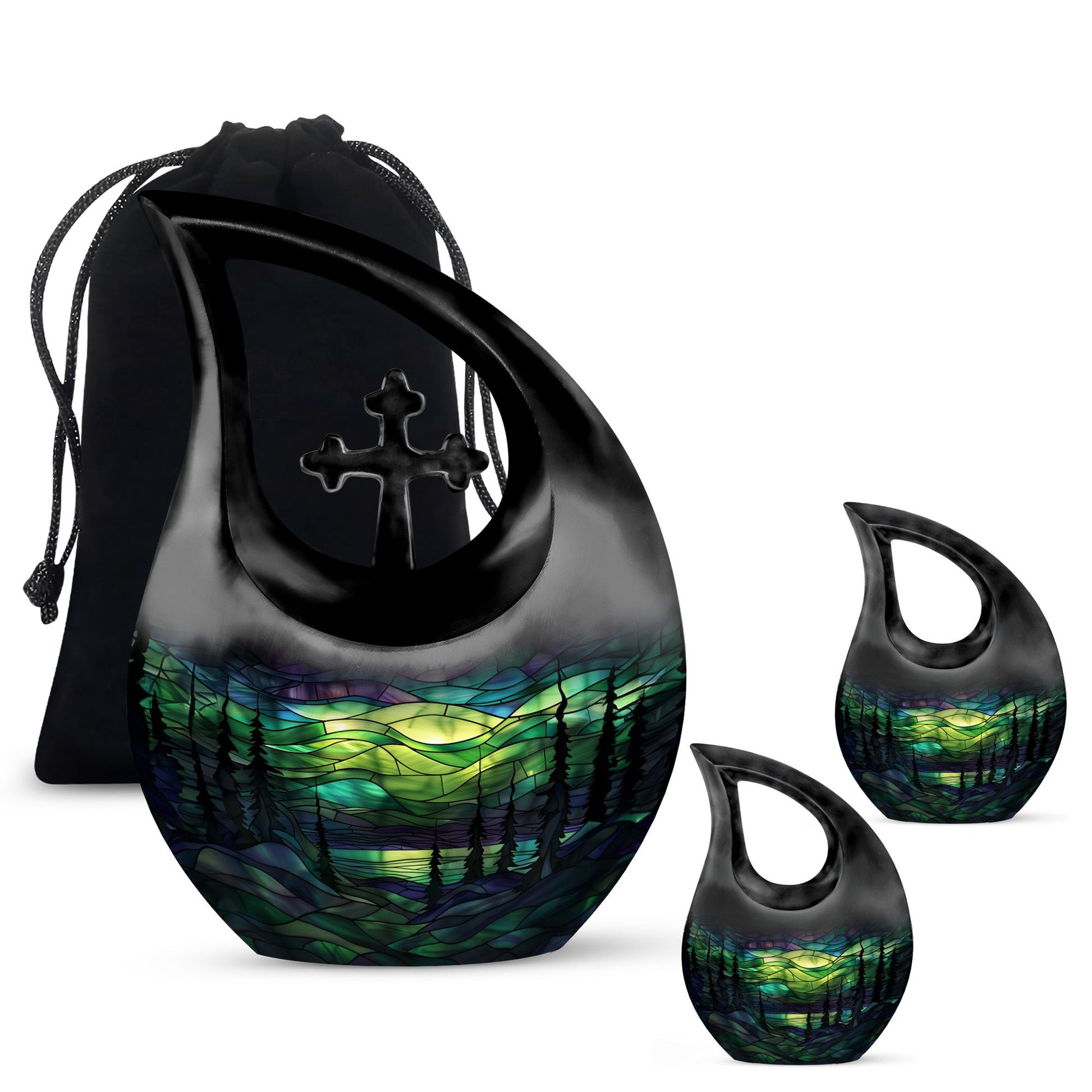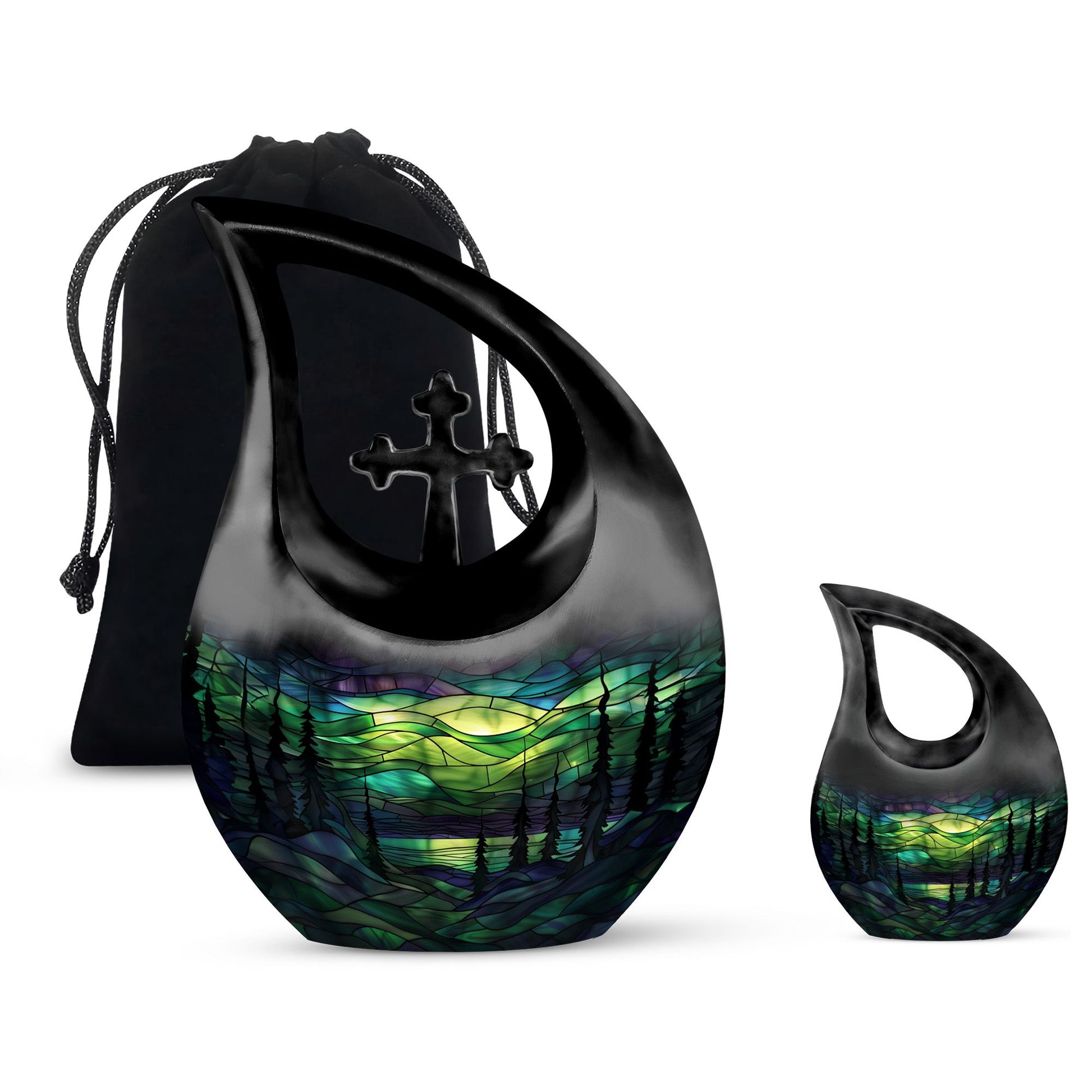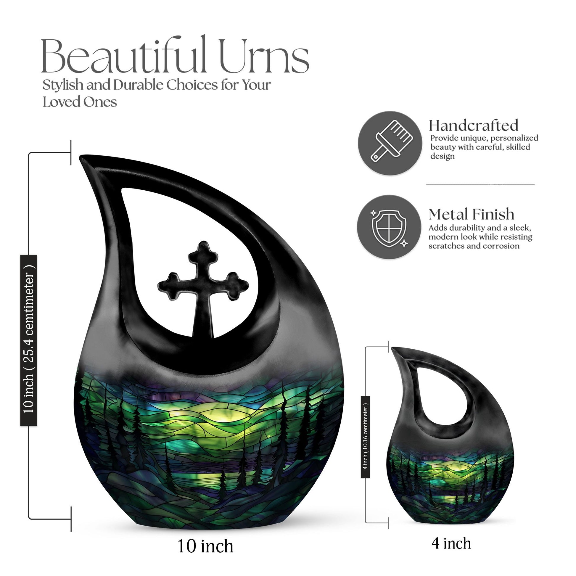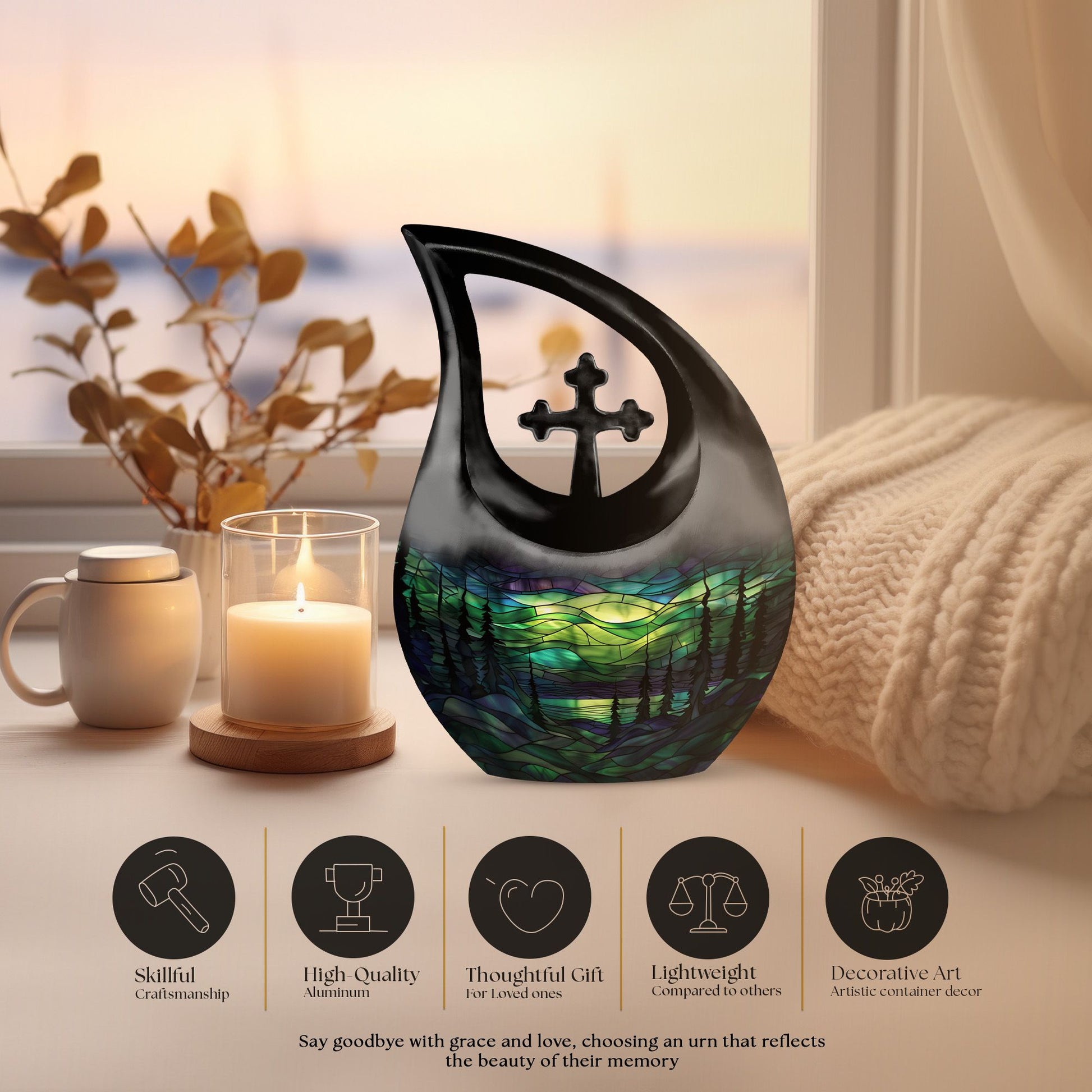 Families may choose to complement this main urn with funeral keepsake urns or mini keepsake pieces to share memories among loved ones. Its radiant stained-glass appearance offers a gentle, symbolic glow—bringing comfort and serenity to any memorial space.