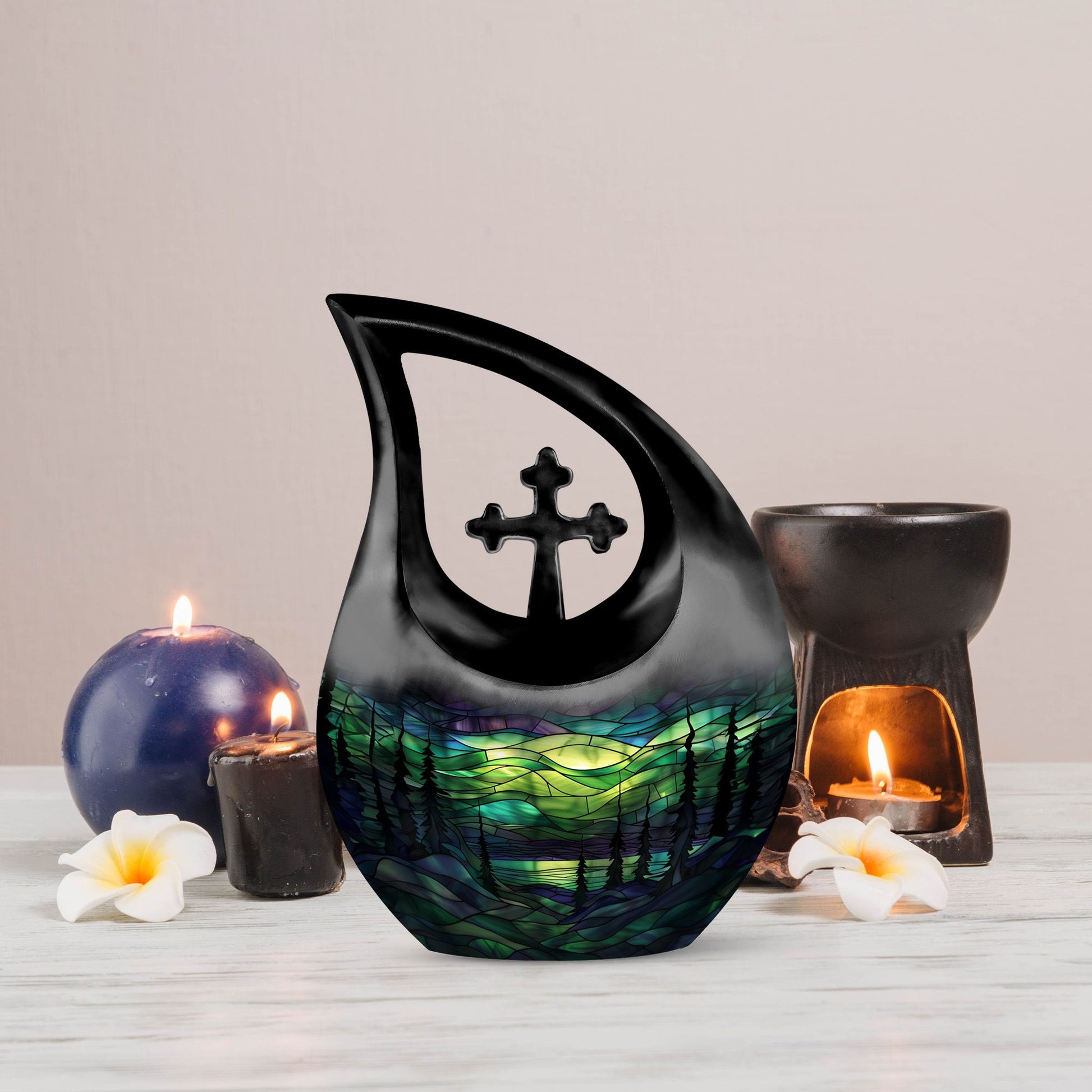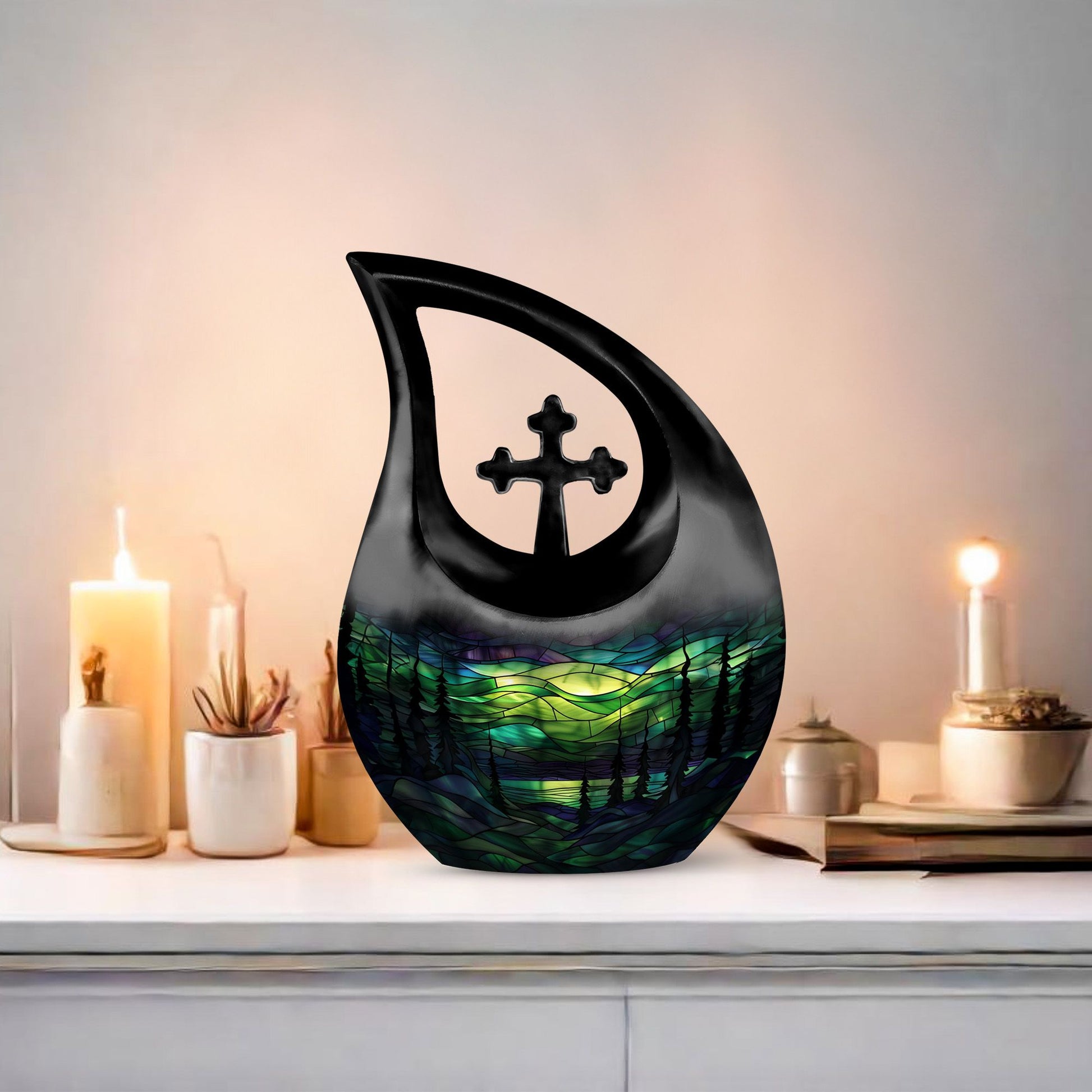 This extra large stained glass memorial urn provides a heartfelt and dignified way to honor a loved one, offering a comforting tribute for families seeking a funeral urn ashes option that blends beauty with meaning. Its luminous stained-glass-inspired design creates a warm, peaceful presence, making it a cherished choice for those remembering a life well lived.