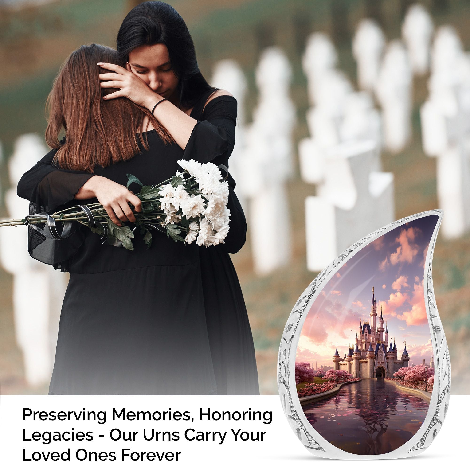 Discover the tranquility and peace of mind that our Fairy-tale Kingdom urns offer. Crafted with the utmost care and respect, these elegant keepsakes for ashes provide you with a stunning and sentimental method of preserving the memory of your loved ones. Small yet exquisitely designed, our urns provide you a comforting symbol of remembrance. These urns stand as an emblem of love, a beacon of memories that transcends time. The details in the craftsmanship reveal a distinct uniqueness that sets it apart. Witness the embodiment of sophistication and serenity in our memorial urns for human ashes. Using the touchstone of love, we tenderly create a place for your cherished memories. Safe, secure, and imbued with a deep sense of reverence, our Fairy-tale Kingdom urns narrate a story of life, love, and cherished moments. Find solace in our urns and keep the undying embers of your loved one's spirit forever aglow.