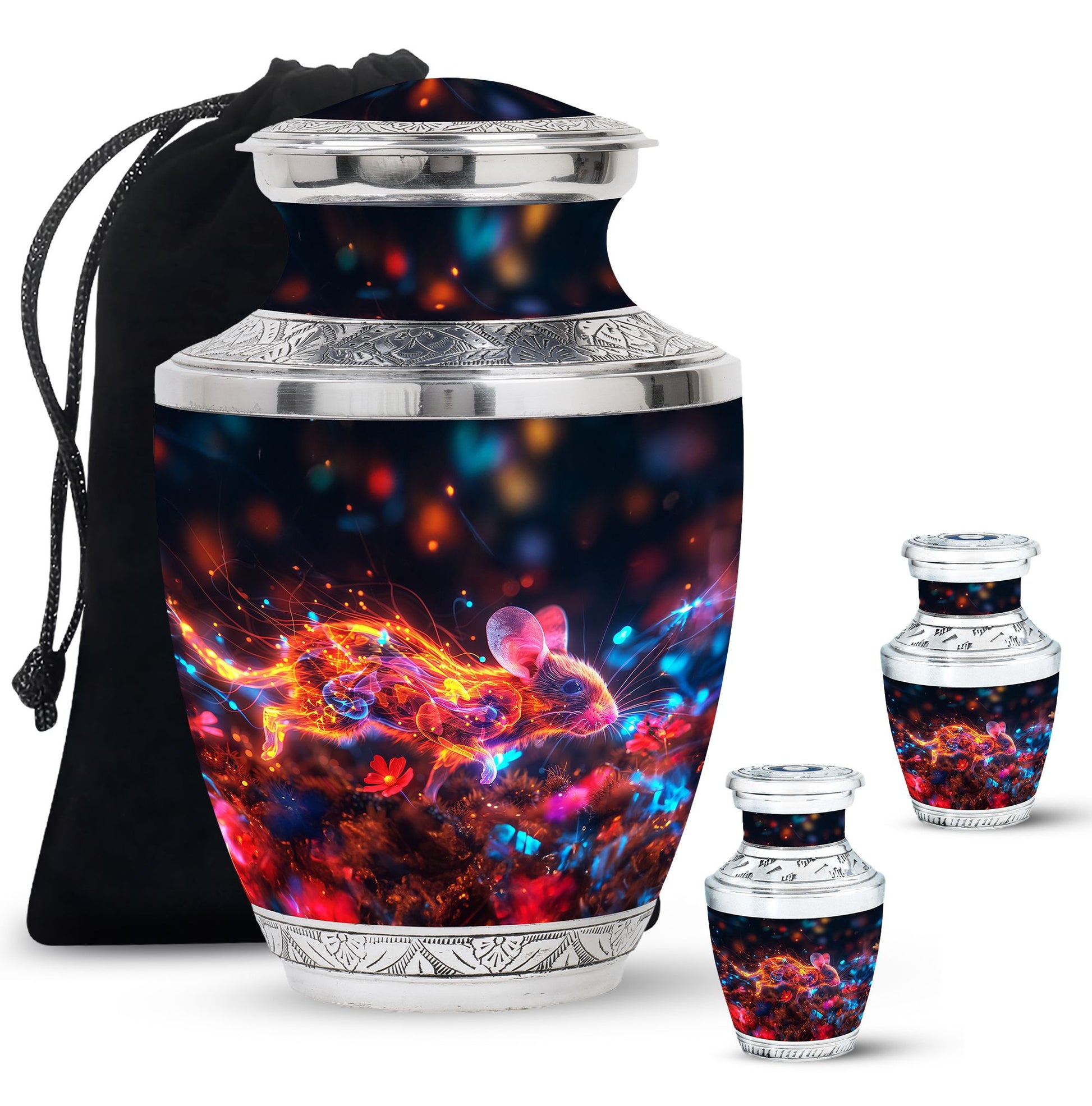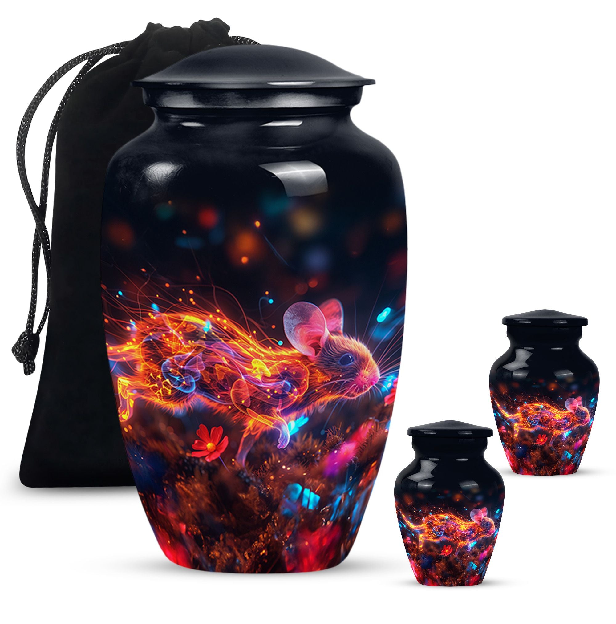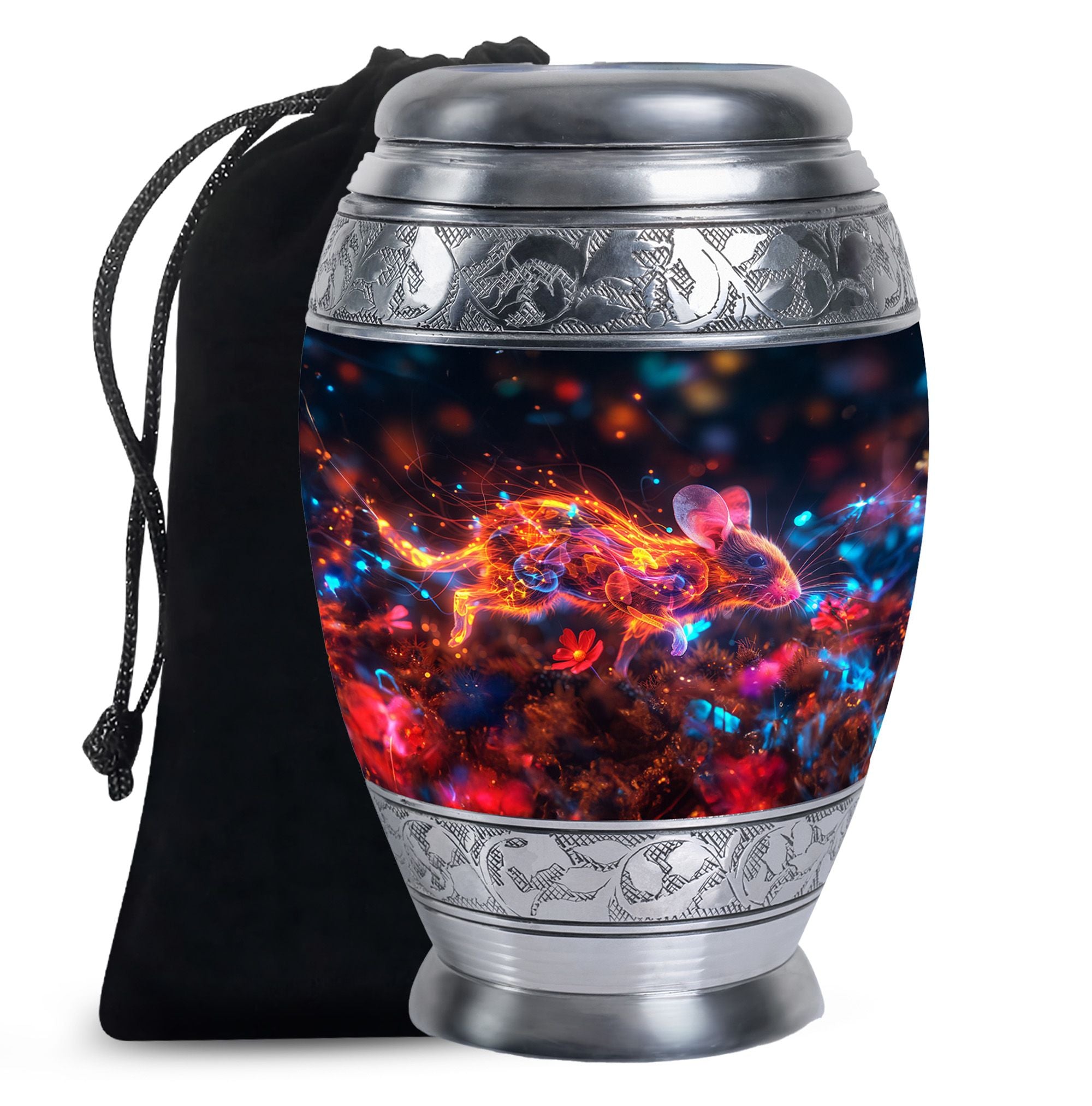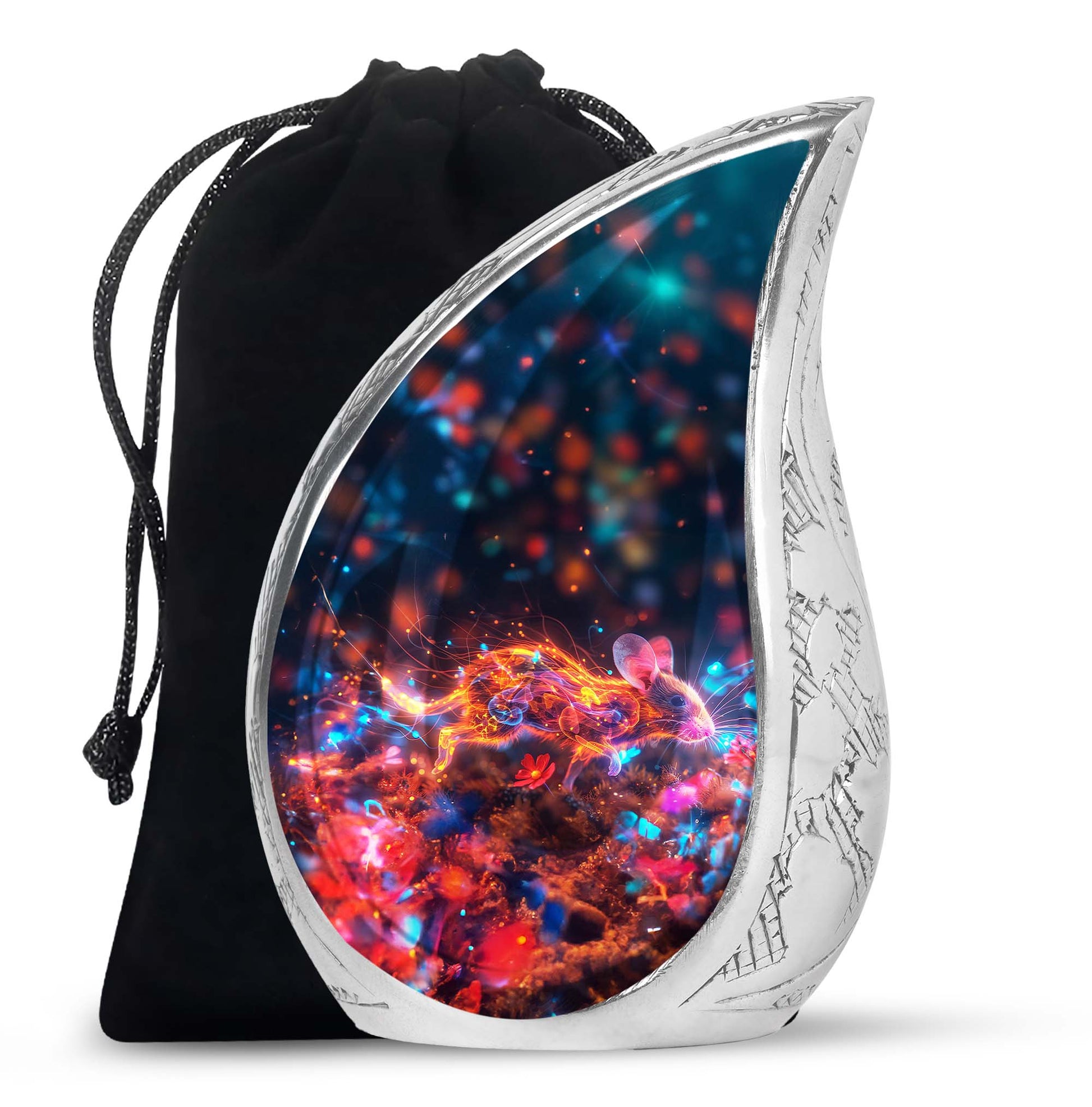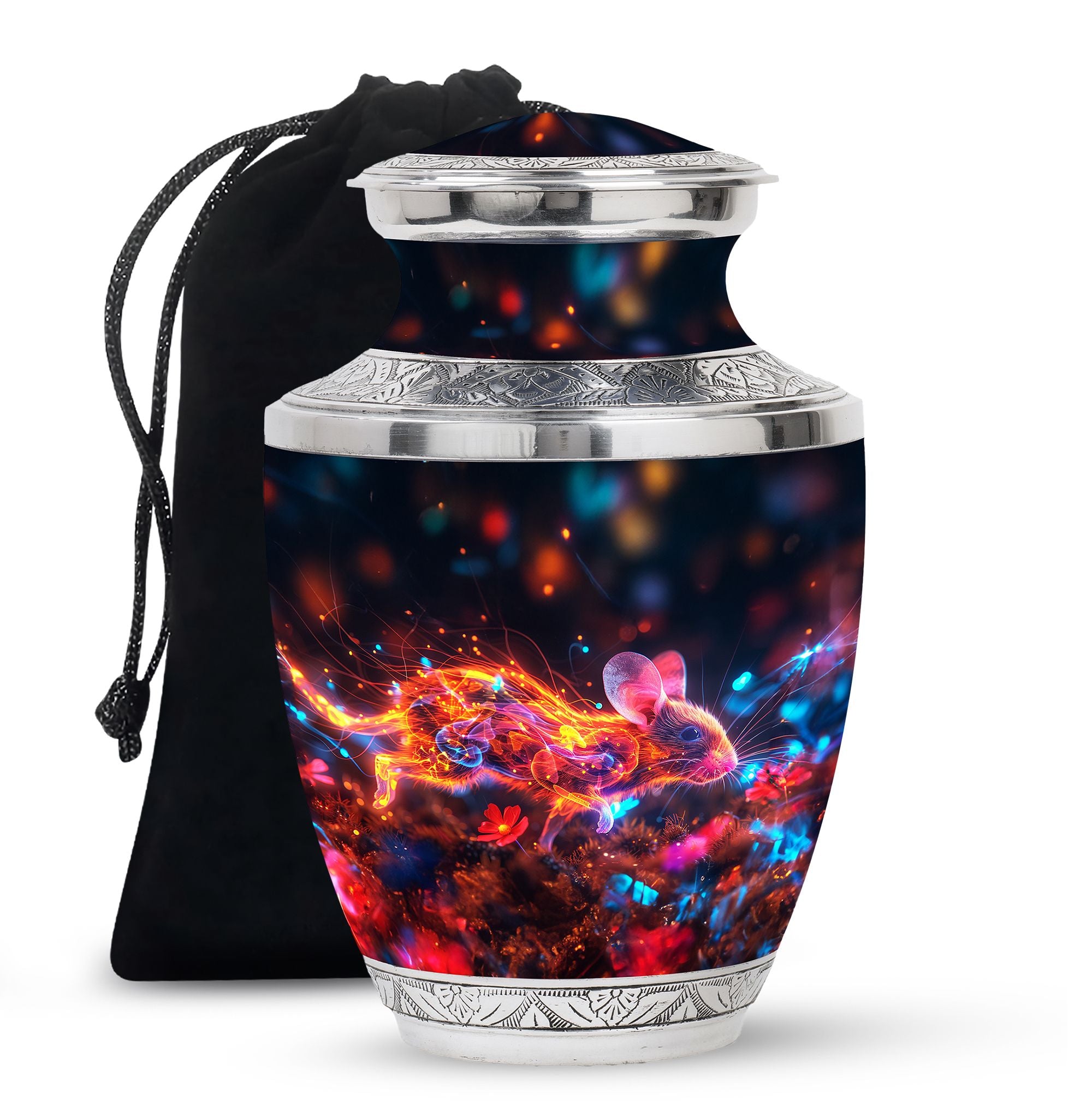 Crafted from durable, high-quality aluminum, the urn combines artistry with functionality. The intricate mouse motif makes it a standout piece among small cremation urns for human ashes or cremation keepsakes for ashes, while the secure screw-top lid ensures protection of the contents. Its versatile design suits both home display and ceremonial use, functioning beautifully as a cremation urn for ashes or mini cremation urns for human ashes.