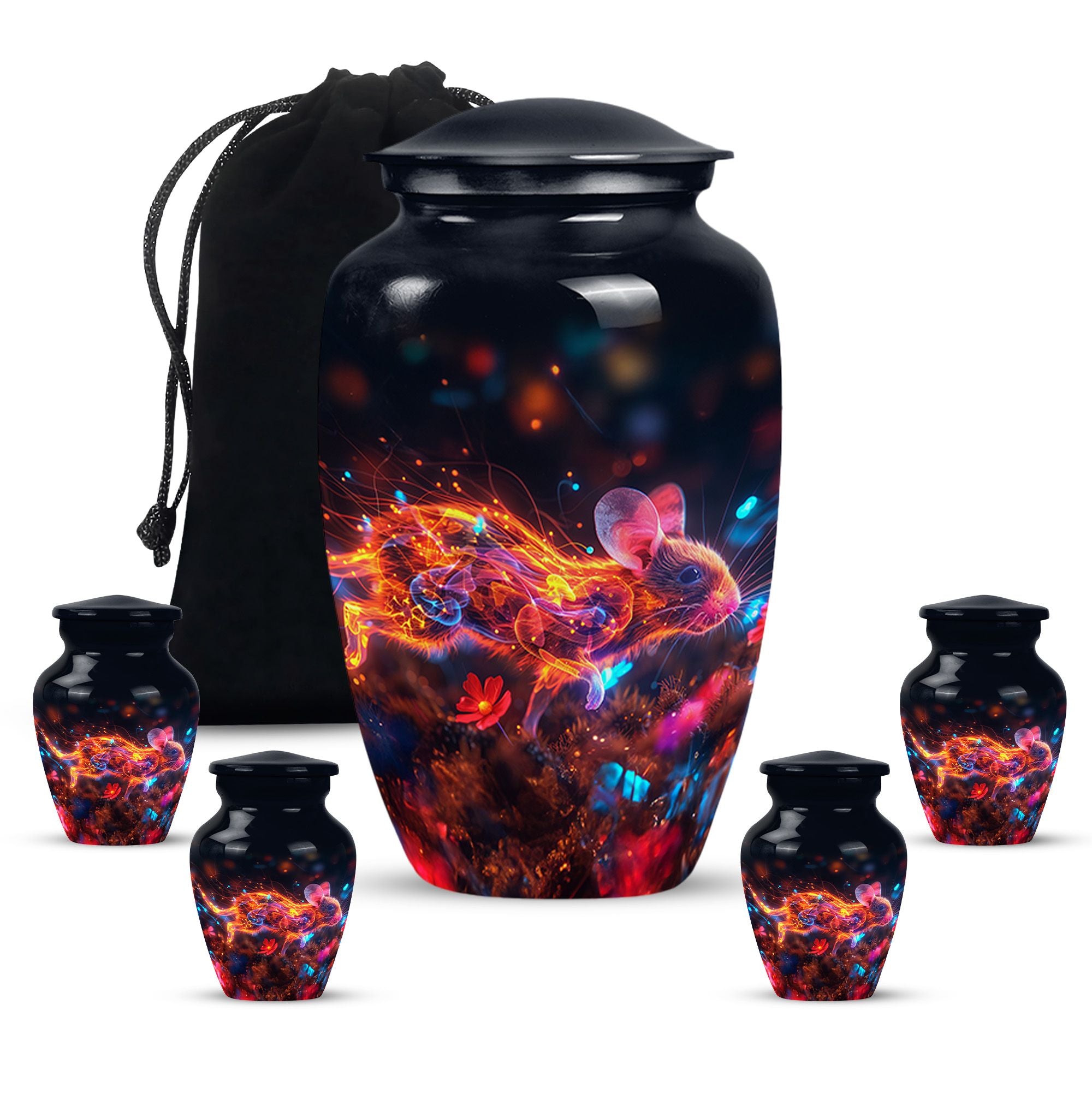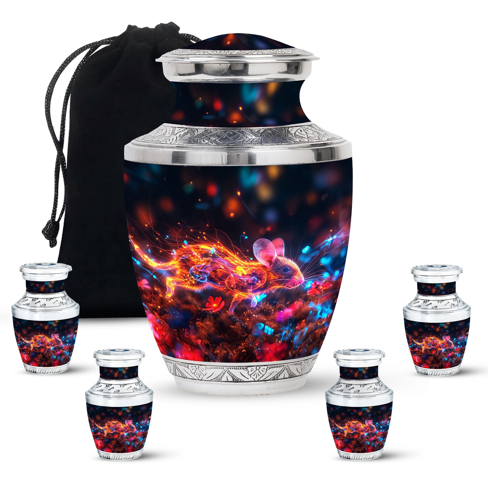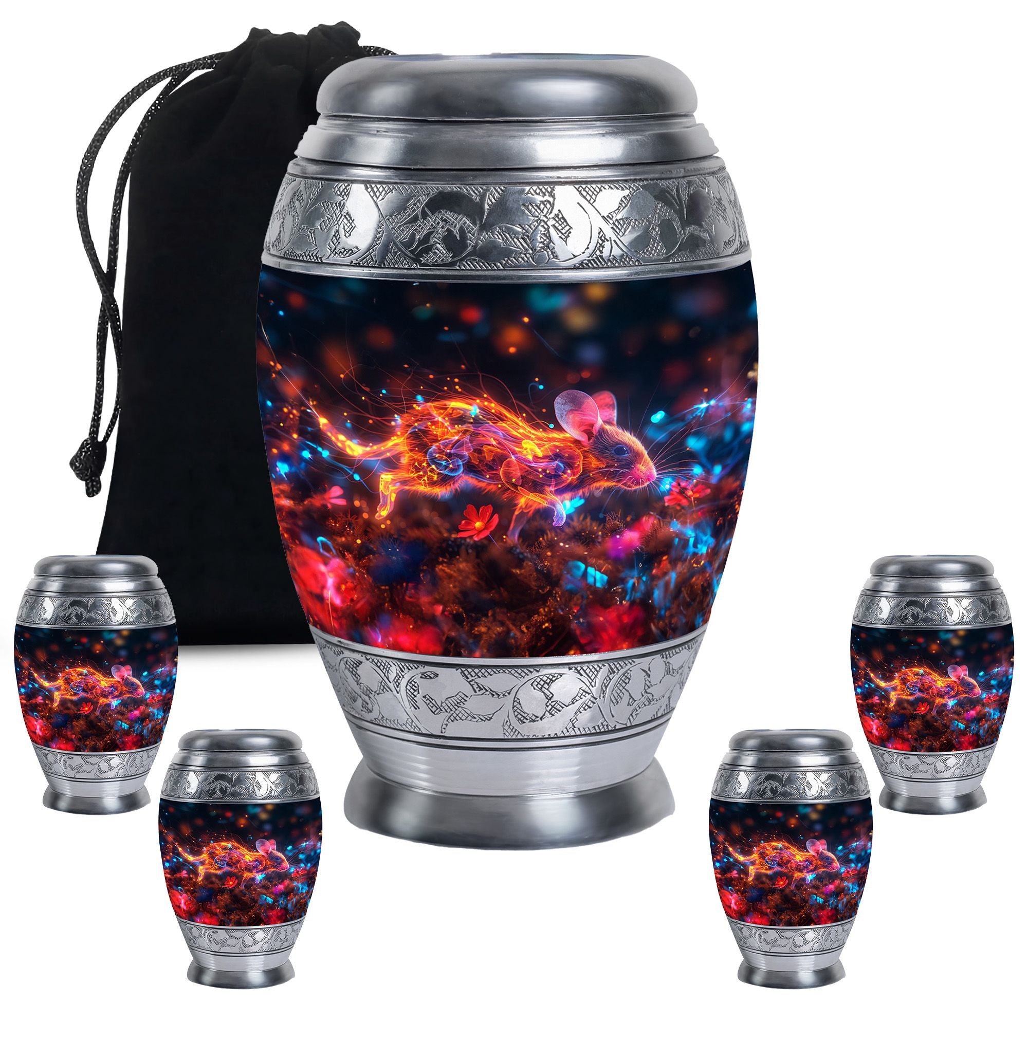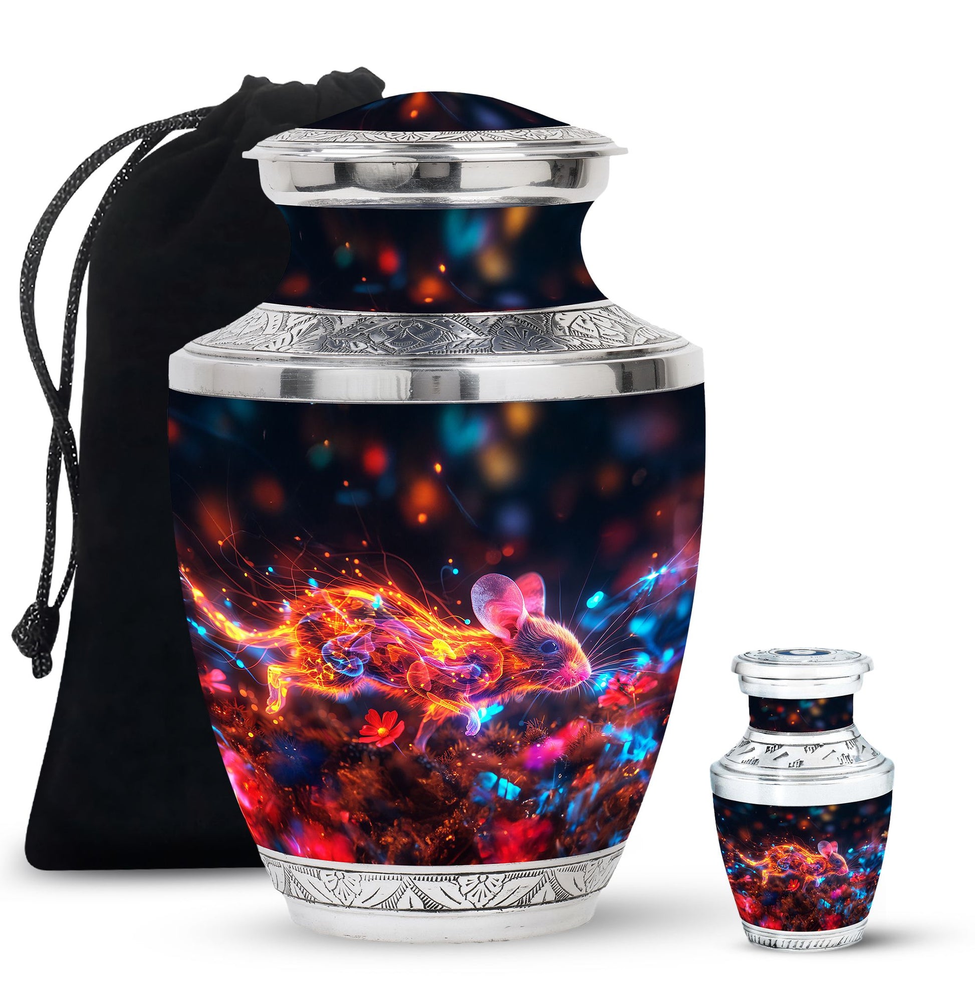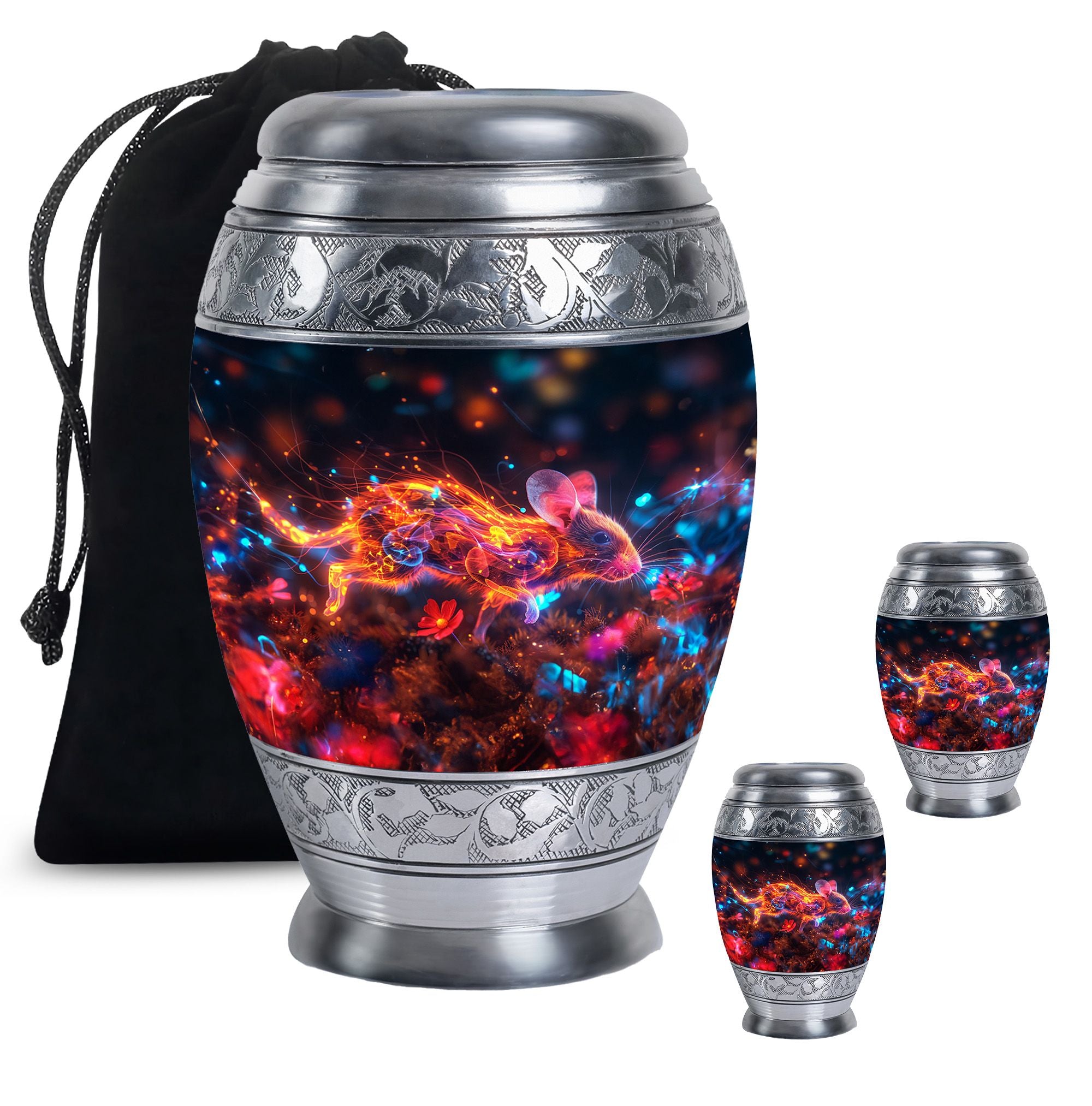 Crafted from durable, high-quality aluminum, the urn combines artistry with functionality. The intricate mouse motif makes it a standout piece among small cremation urns for human ashes or cremation keepsakes for ashes, while the secure screw-top lid ensures protection of the contents. Its versatile design suits both home display and ceremonial use, functioning beautifully as a cremation urn for ashes or mini cremation urns for human ashes.