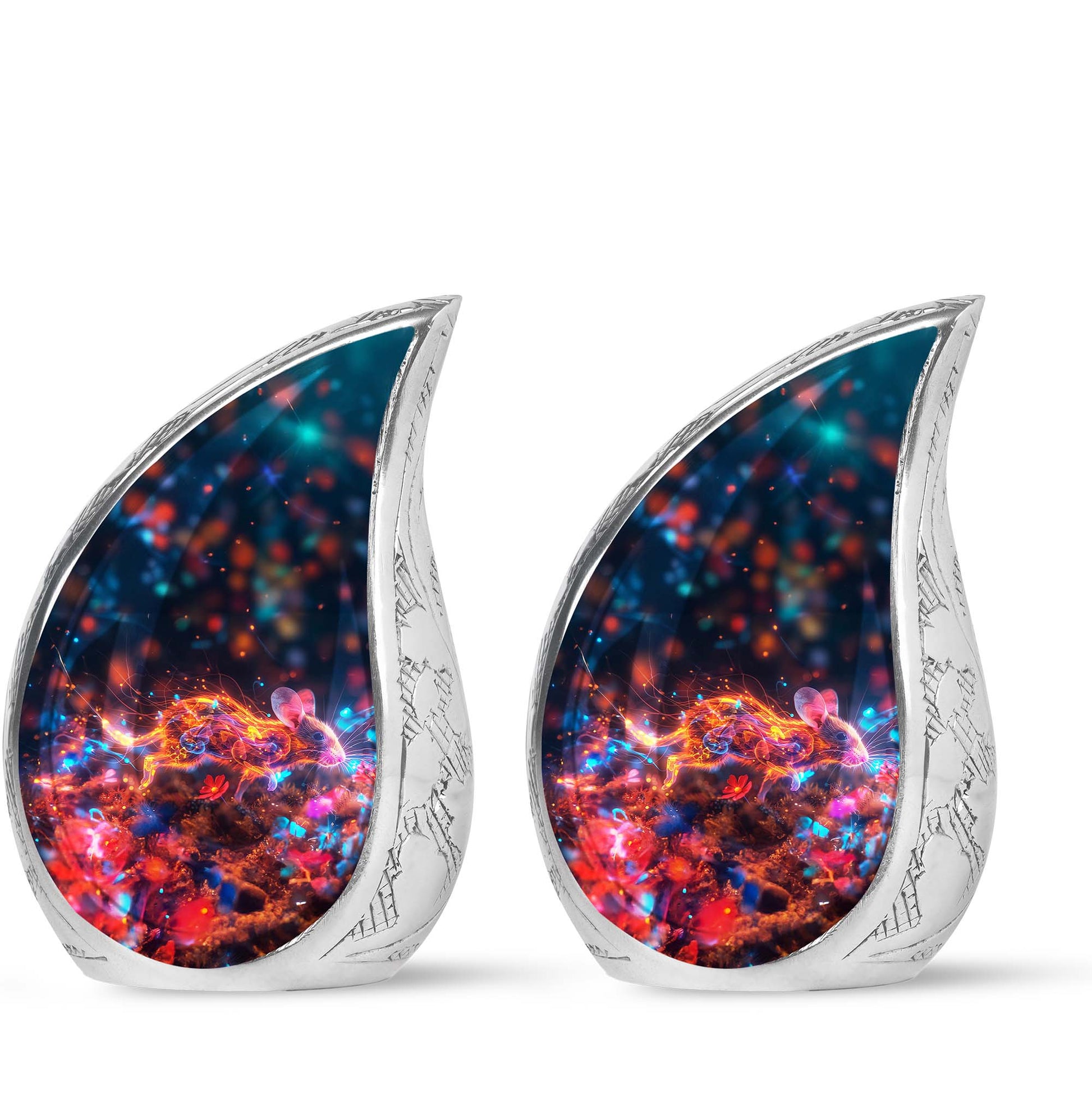 This urn also serves as a cremation keepsake urn or small urn for cremation human ashes, offering families a meaningful way to cherish memories. The Fantasy Mouse Urn preserves the spirit of your loved one, providing comfort and a lasting symbol of love and remembrance.