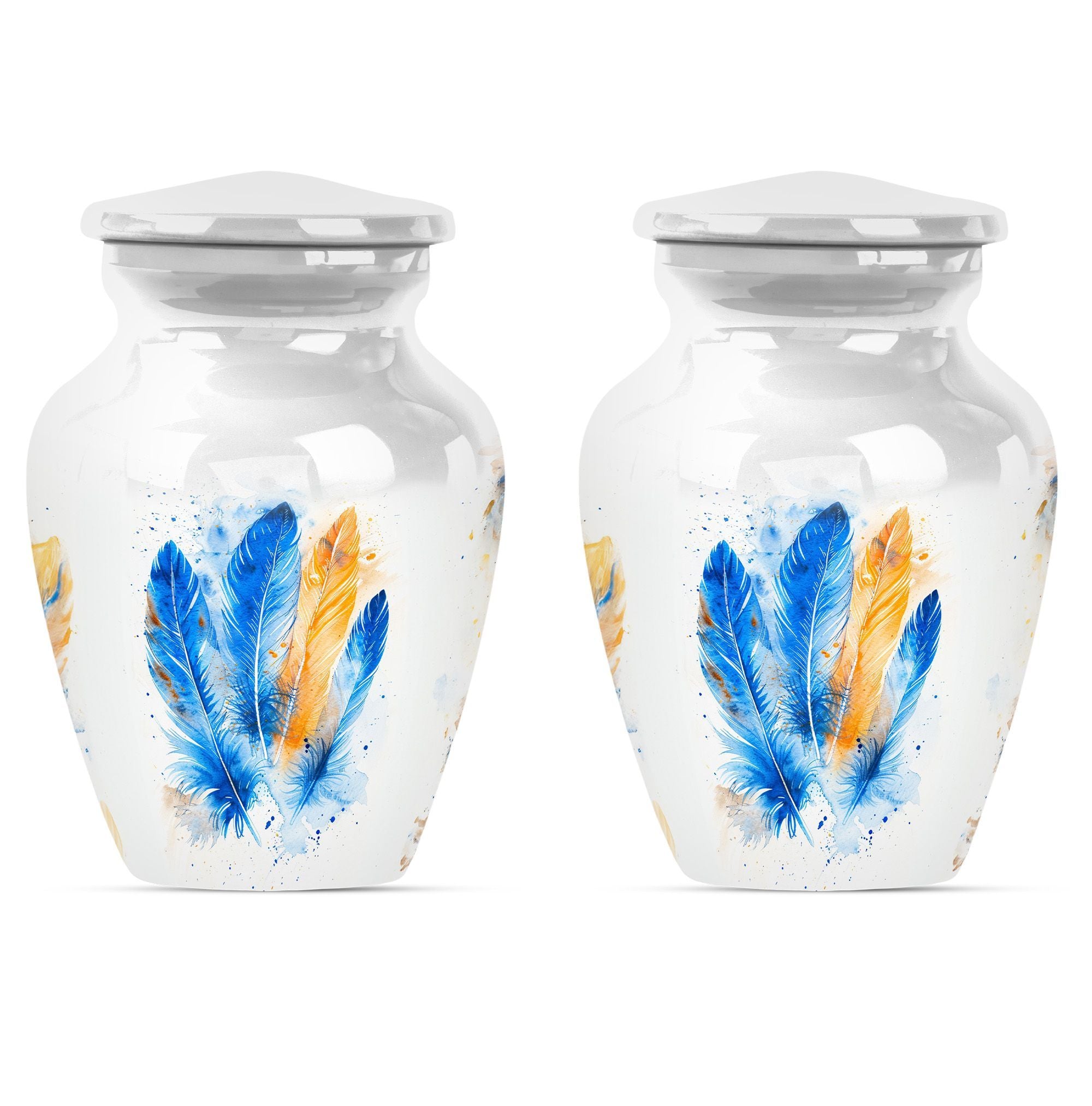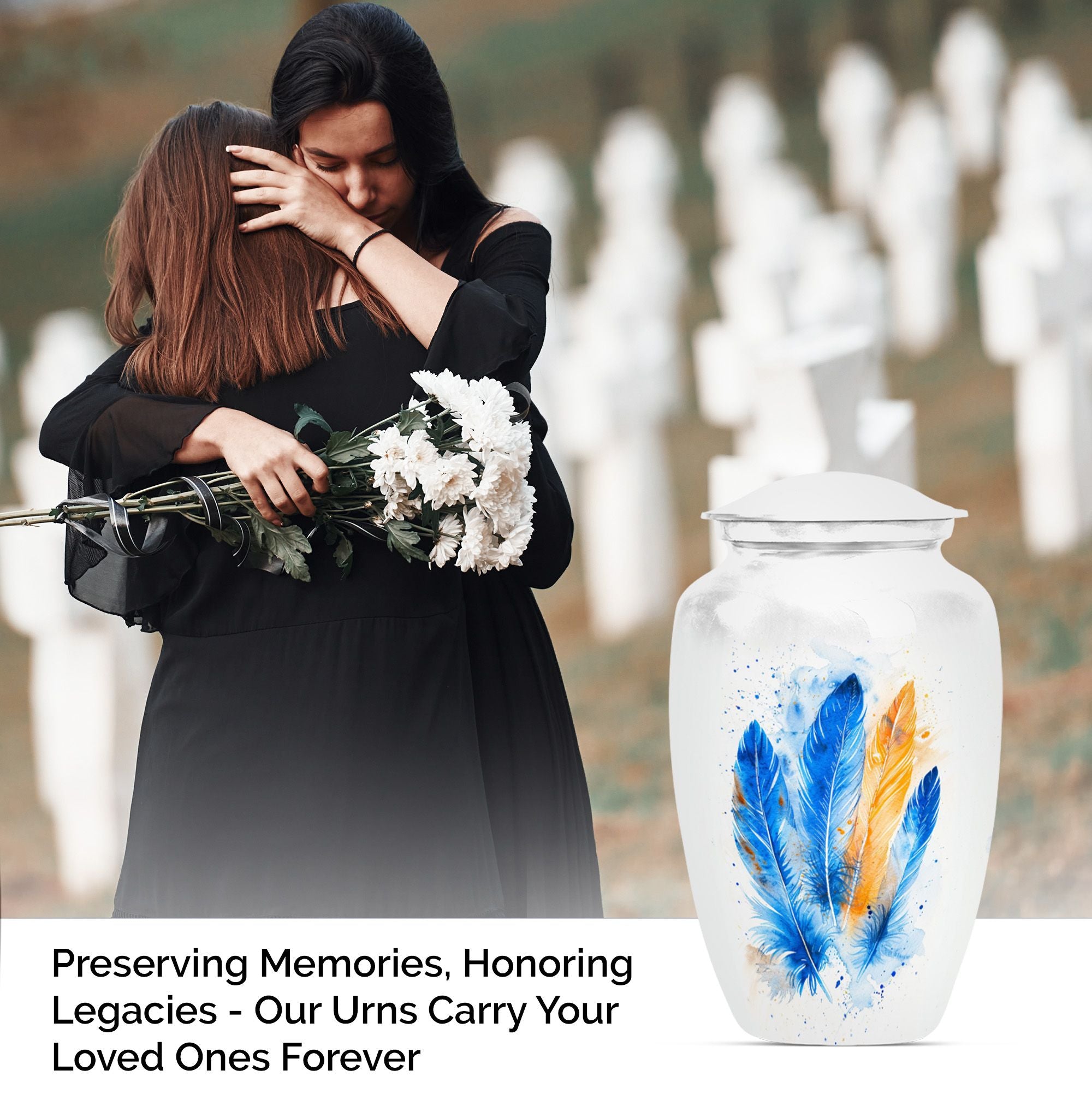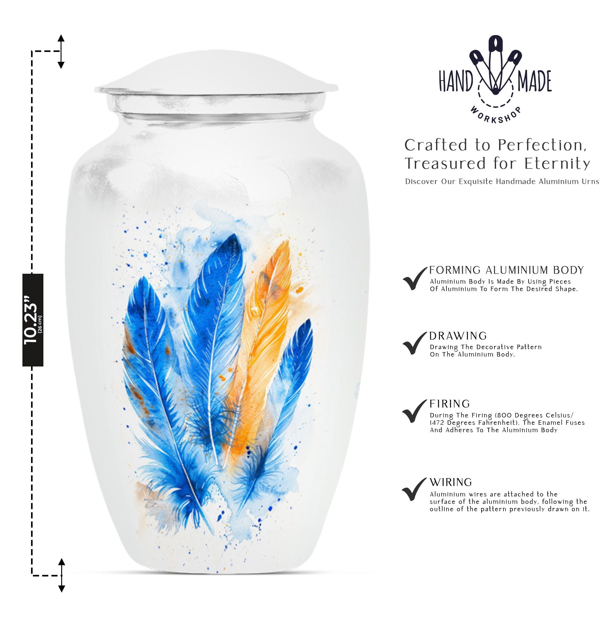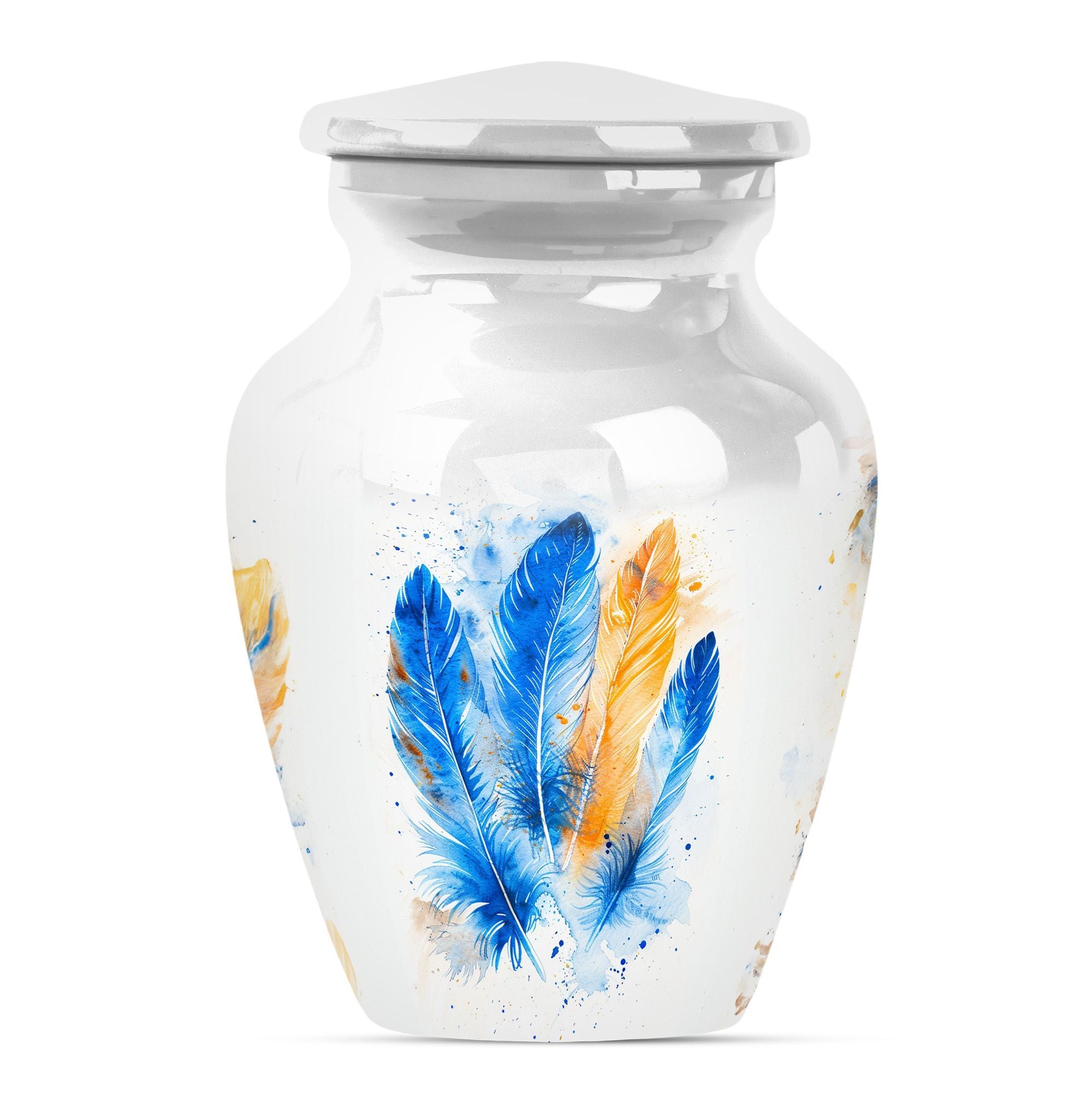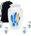 Immerse yourself in the memory of your beloved with this stunning Large 'Purple Meadow' Feather Urn. Made of high-quality aluminium, this cremation urn for adult ashes women radiates a comforting presence. Its weight of 3.3 pounds, paired with its dimensions (10 inches in height), signifies substantial holding power - a capacity of 200 cubic inches to be exact. The size of this classic cremation urn, coupled with its somber theme, can effortlessly cater to any part of your home. The package also includes a velvet pouch for the safe containment of cherished ashes. You can further personalize this urn with engraved names, bestowing upon it a unique emotional value that is unparalleled. With 'cremation memorial urns for human ashes', 'human urn adult ash woman', 'cremation box', and 'adult-size cremation urns' as secondary keywords, customers can easily find this burial funeral urn during their online search. Celebrate the life of your loved one with our heartwarming and timeless feather urn.