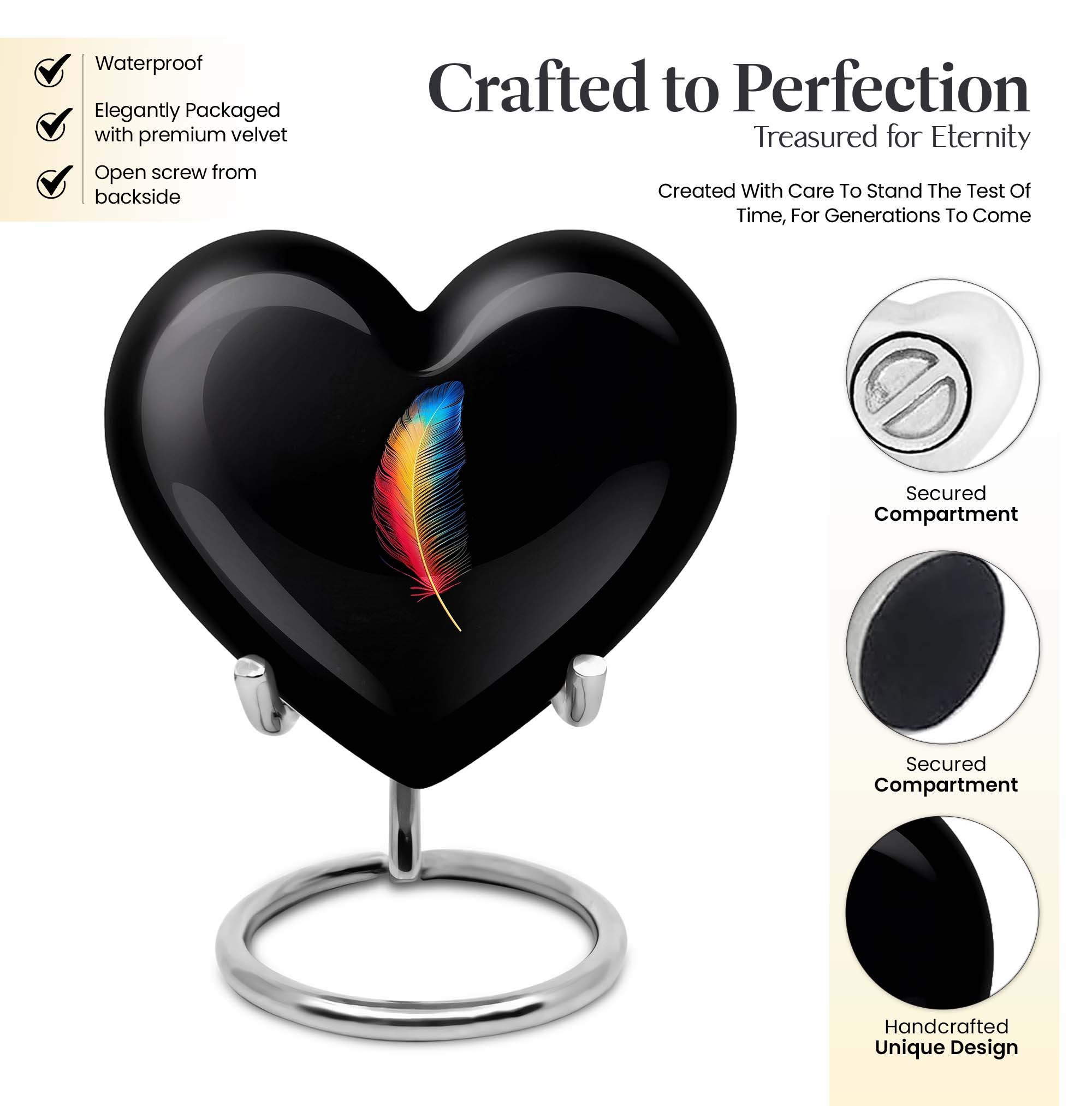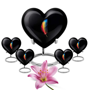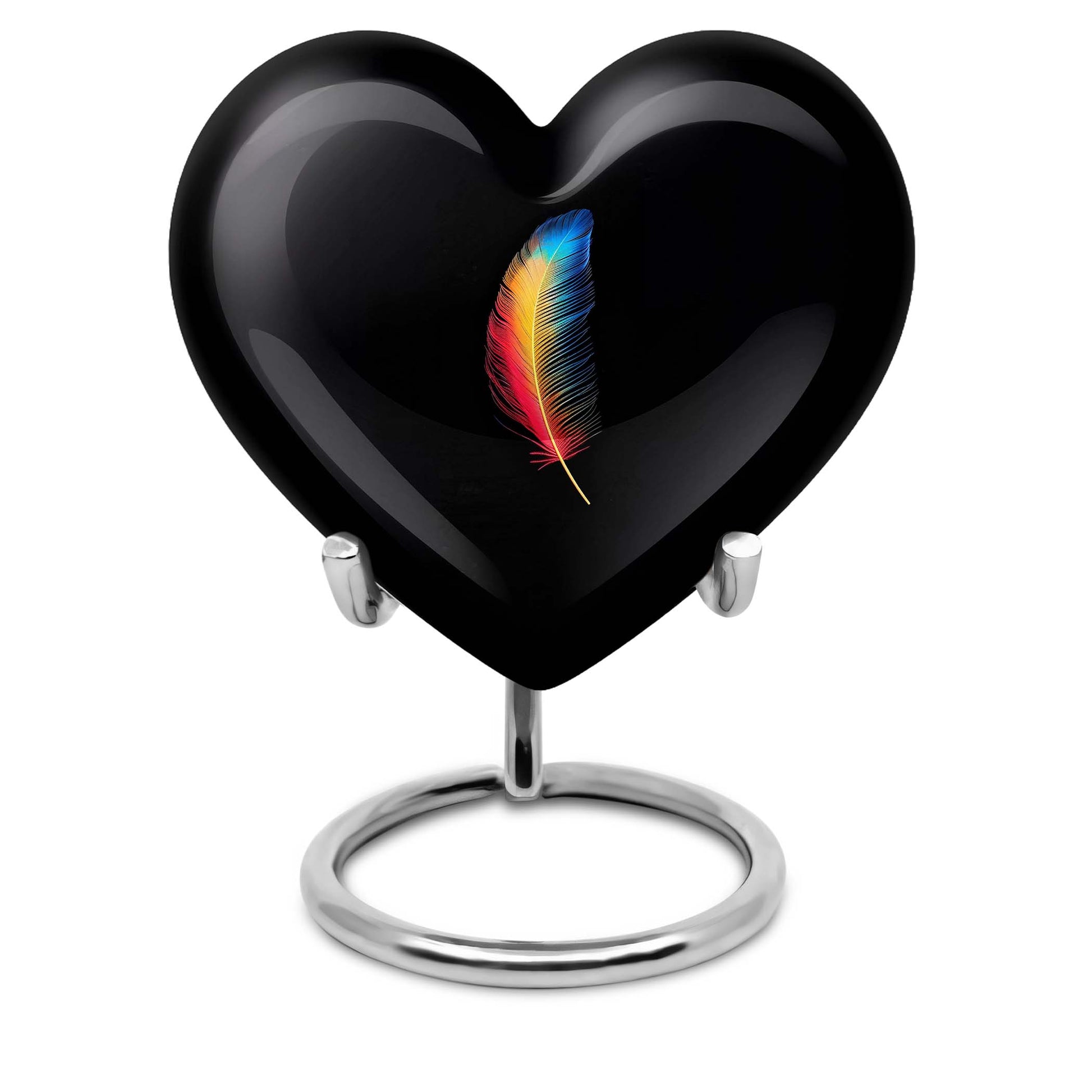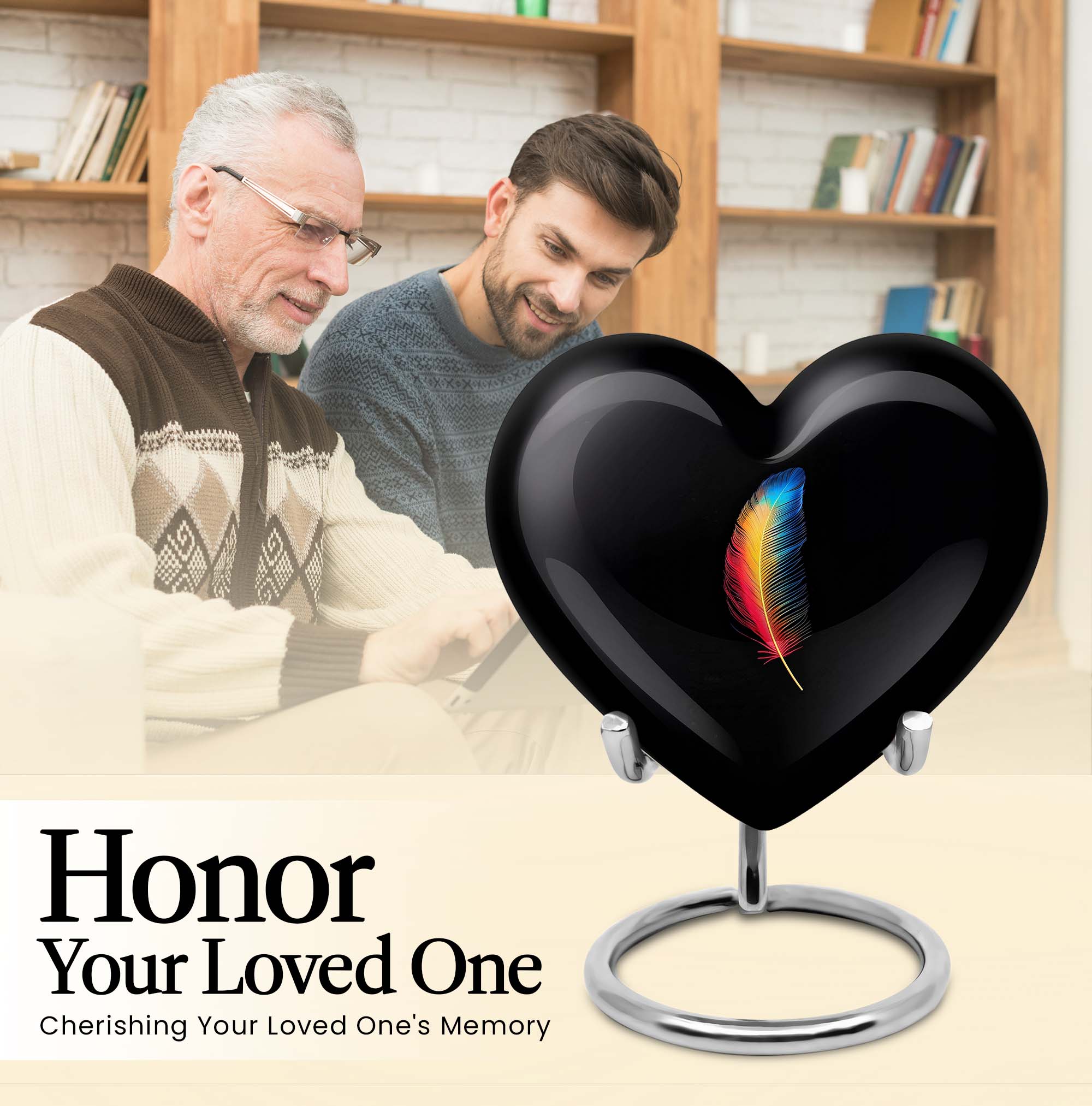 Cherish the memory of a loved one with our beautifully crafted 'Heart Urn', a perfect example of large urns meticulously designed for the containment of ashes. This cremation urn, standing tall at 10 inches, has a substantial weight of 3.3 pounds and offers an abundant capacity of 200 cubic inches. The feather urn is delicately fabricated from aluminium, known for its lasting durability. It gracefully portrays the 'Purple Meadow' theme, adding a serene aura to any set-up. The cremation large urn for ashes comes with a chic velvet pouch for secure storage. We offer the feature to personalize this cremation medium urn with engraved names. The keywords for our product are 'funeral gifts and 'metal urns for human ashes', making it an ideal choice for those seeking human ash urns.