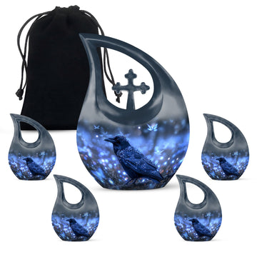This urn with keepsake combo offers the perfect balance of elegance and symbolism, with smaller ash urns for humans keepsake available to accompany the main urn. Whether displayed as urn keepsake human ashes or gifted as part of a urn keepsake combo set, the Royal Raven Urn captures the enduring essence of life and the beauty of eternal remembrance.
