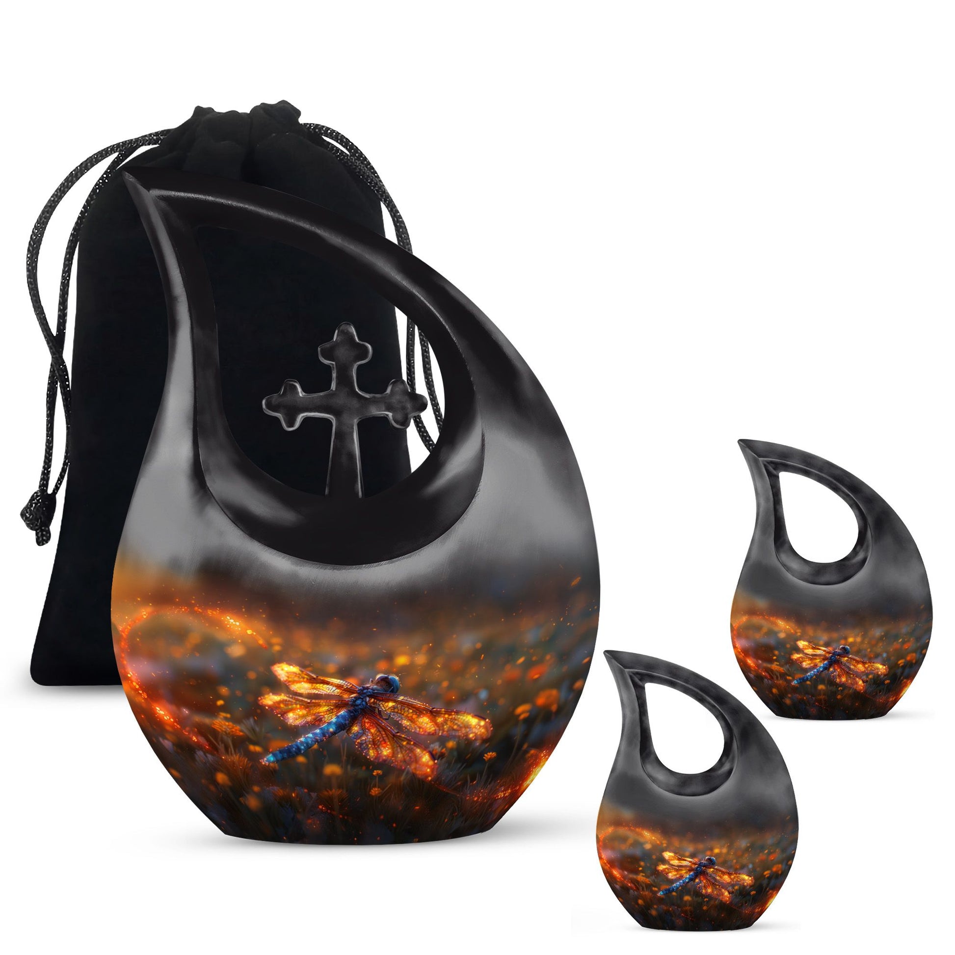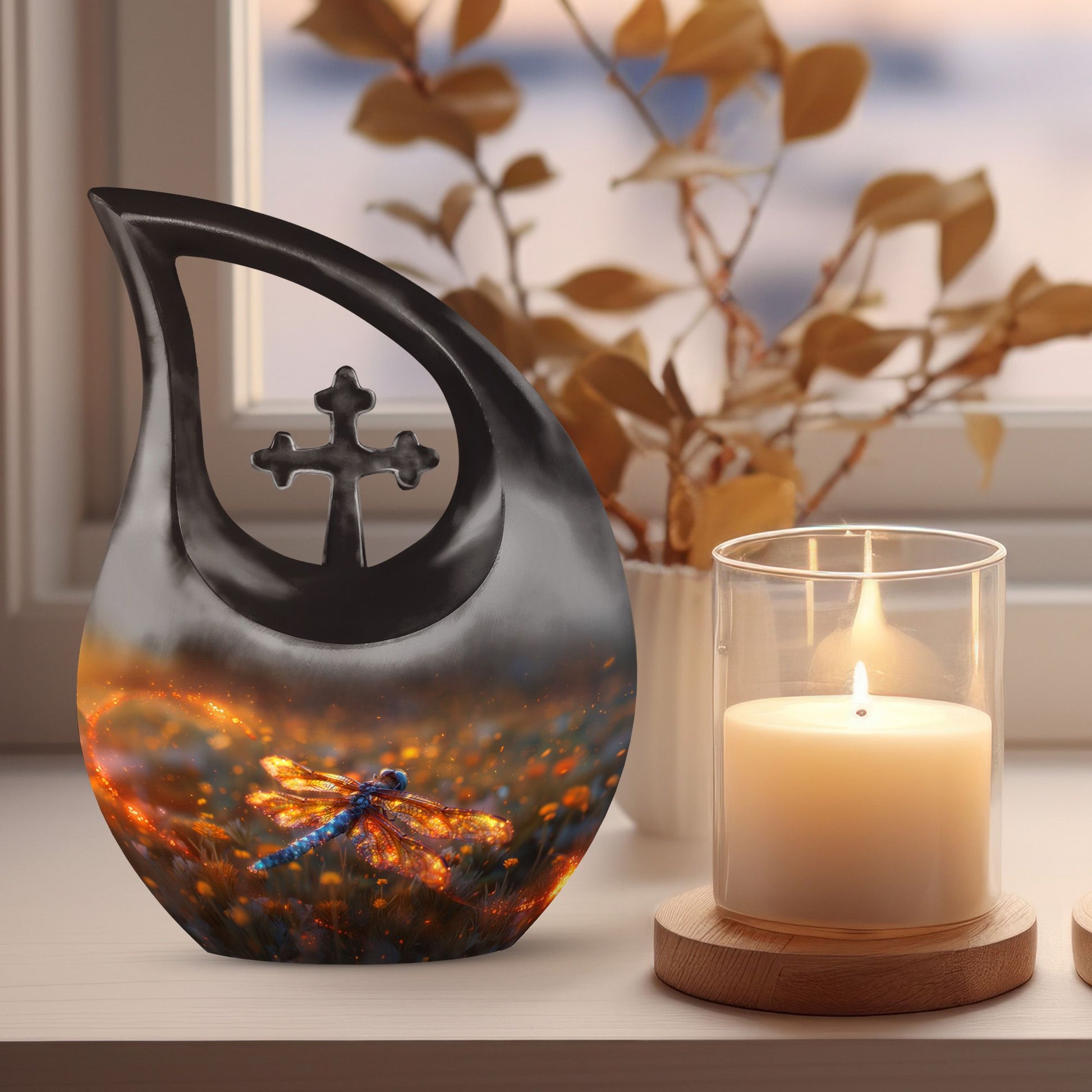 Made from durable materials and featuring an elegant glowing dragonfly design, this cremation keepsake urn is ideal for those looking for mini cremation urns for human ashes or a small urn for cremation human ashes to share remains among family members or keep a piece of your loved one close.
