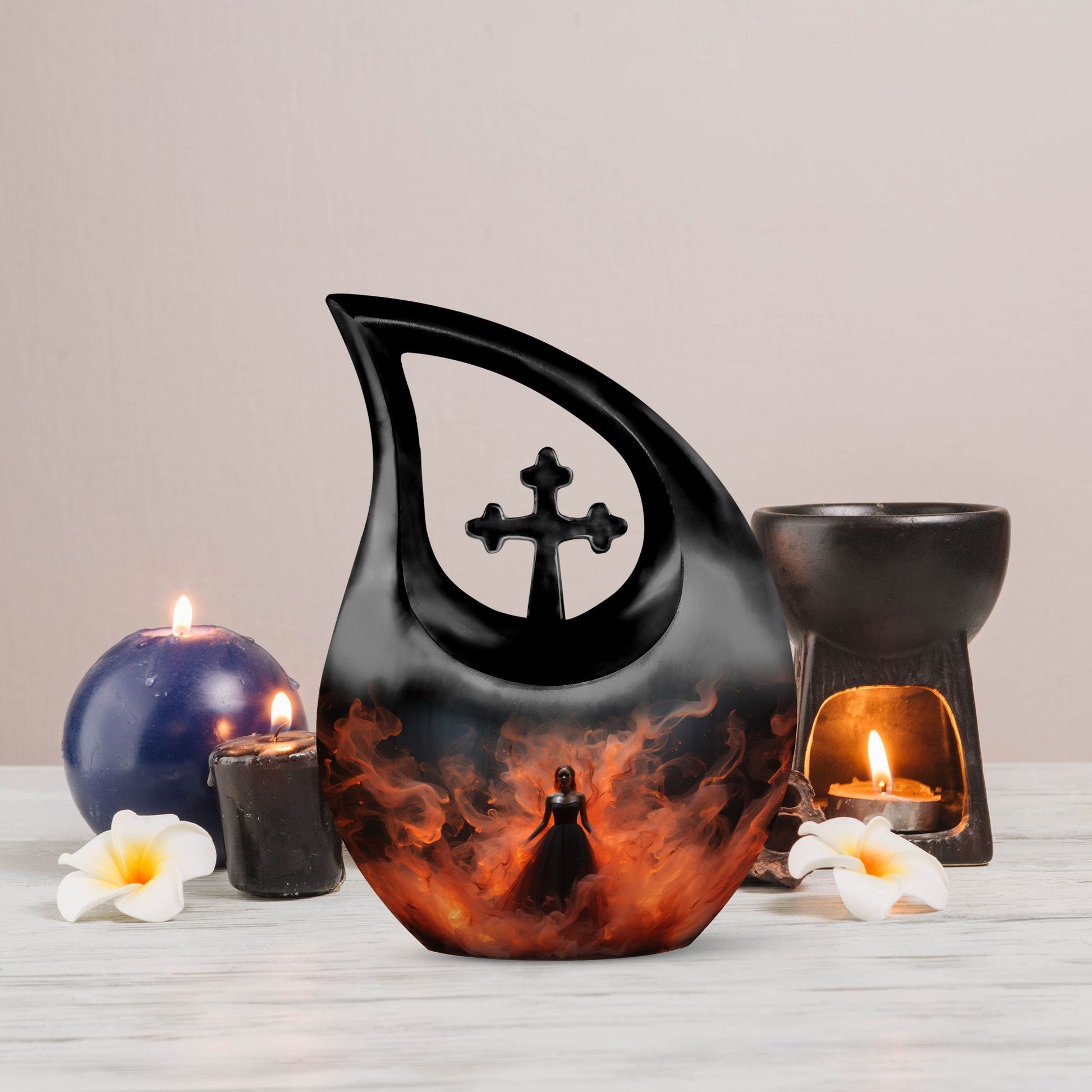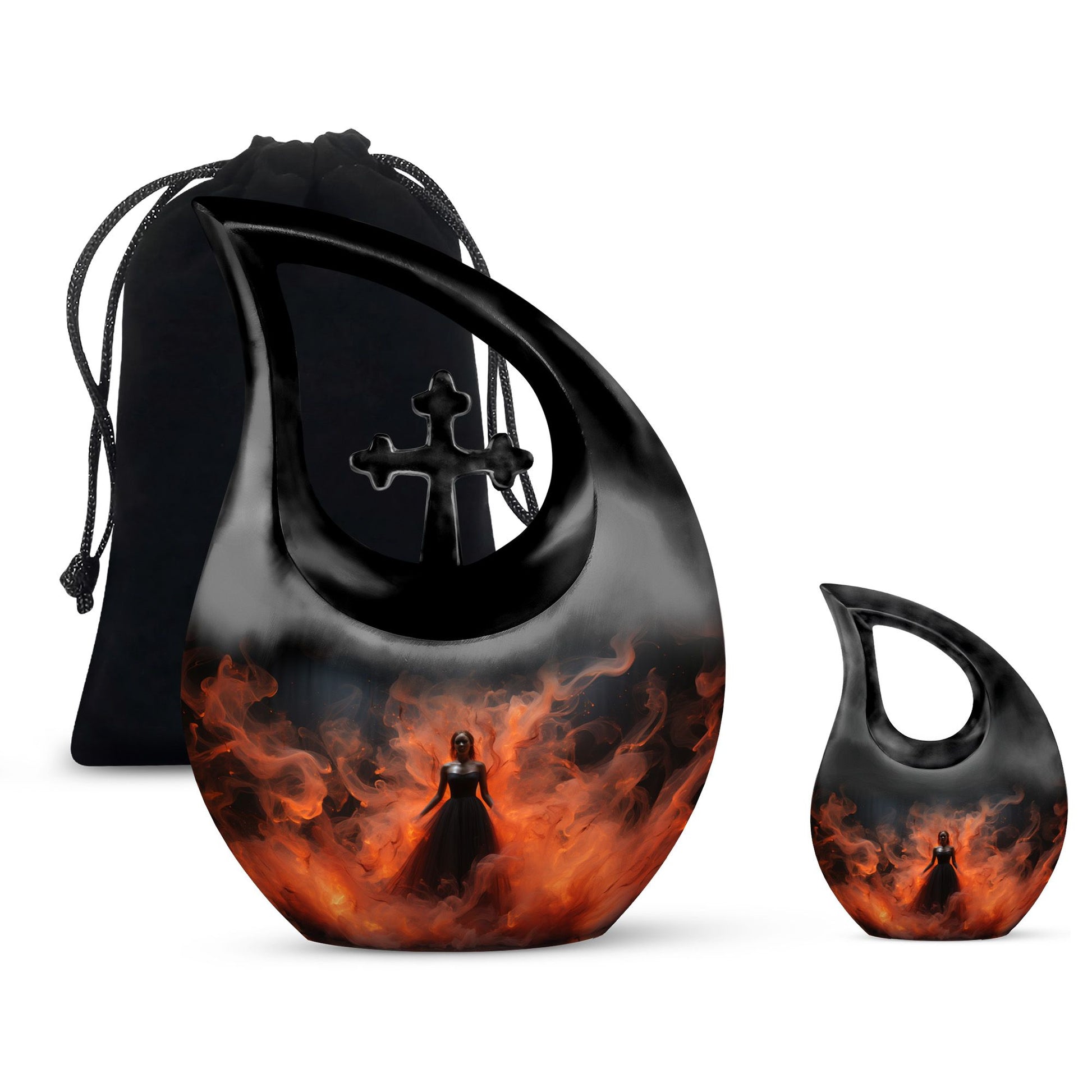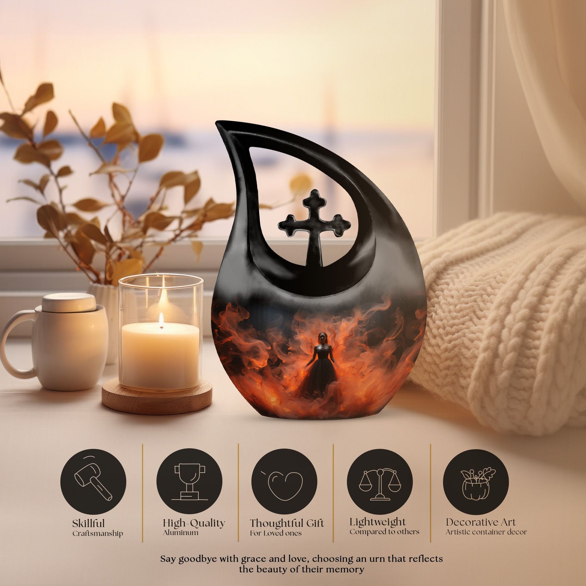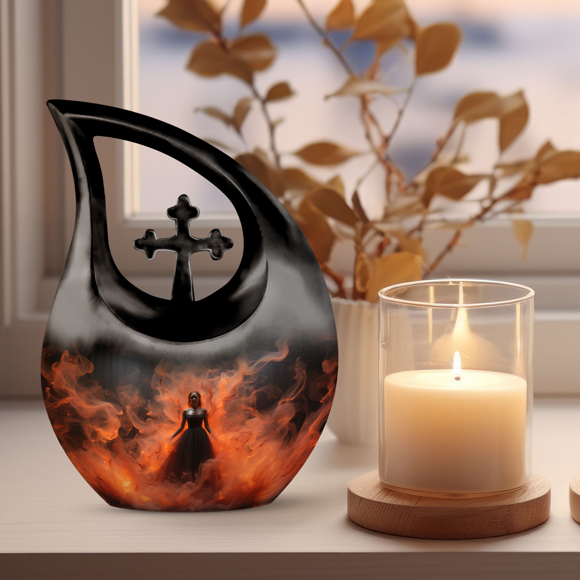 Crafted from durable aluminium, this 10 inch urn features a swirling galaxy background surrounding a luminous dancing angel—bringing together art, spirituality, and elegance. Ideal for families seeking a main memorial urn that coordinates seamlessly with mini urn for ashes, mini keepsake urns for human ashes, miniature urns for ashes, or a mini urn set for ashes. The secure screw-top lid ensures ashes remain protected, while its decorative finish makes it suitable for display in any home memorial space.