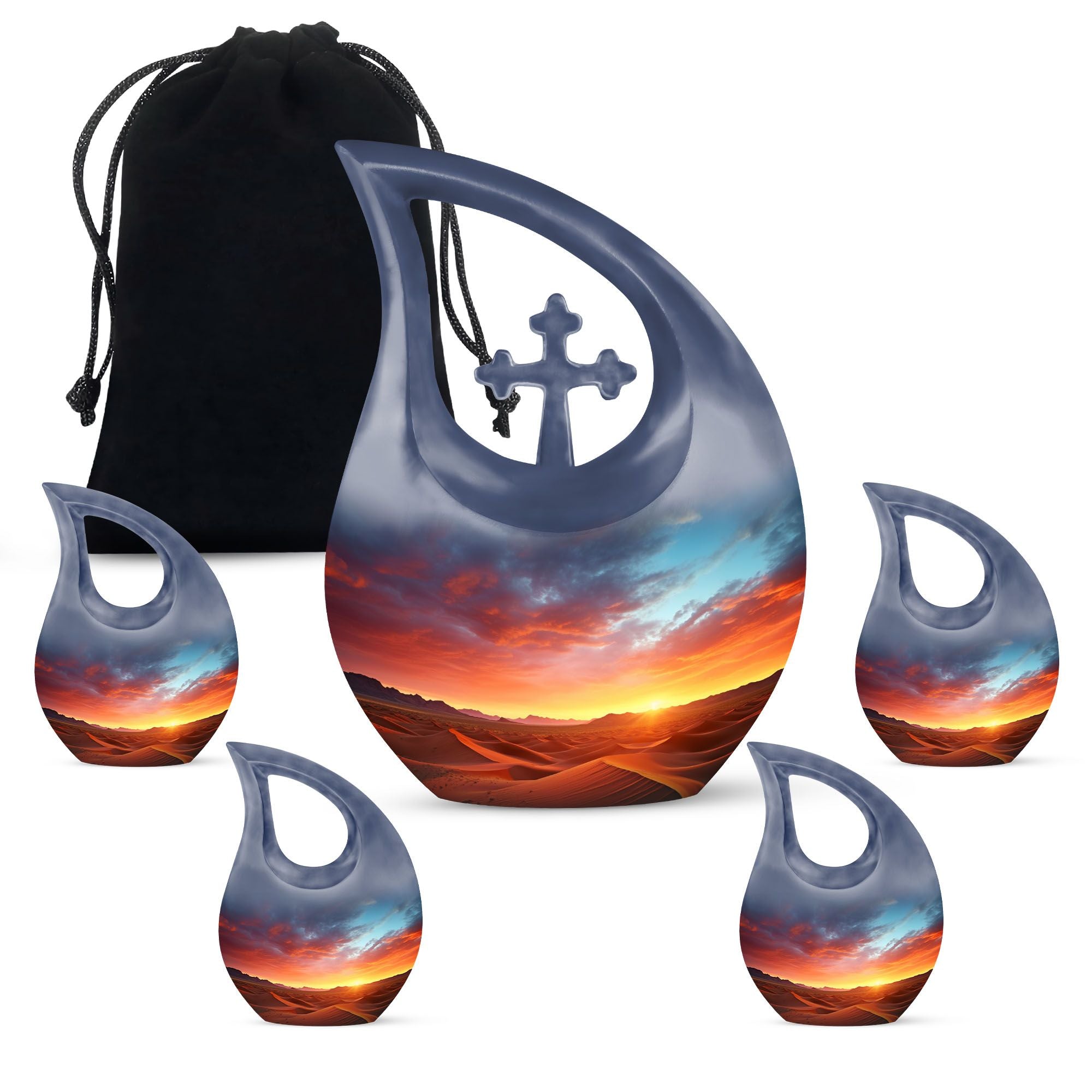 Available in a large and small urn combo, this set offers families the option to share ashes among loved ones. The small urns for women human ashes pair beautifully with the main urn, allowing for intimate keepsakes to be cherished forever. Ideal for use as cremation urns for ashes for women or urns for adults men, it’s a touching reminder that love, like the desert sun, never truly fades.