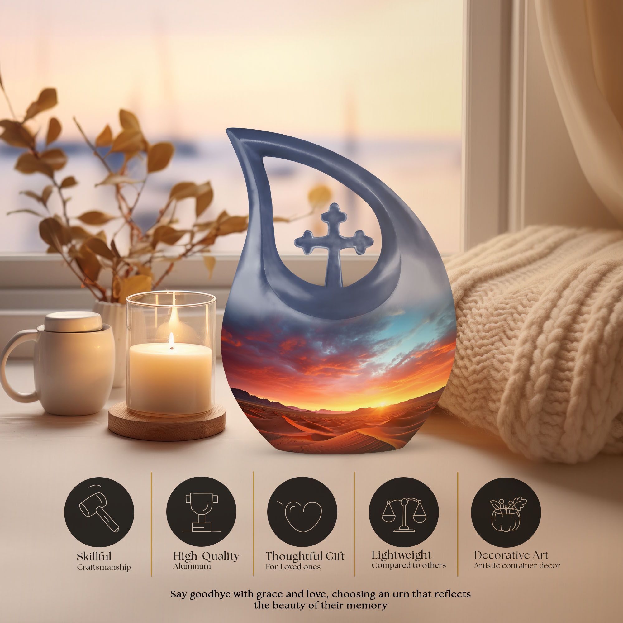 The Desert Cremation Urn for Ashes captures the peaceful beauty of a sunset over golden sands — a serene tribute that reflects tranquility, love, and eternal rest. Designed to celebrate a well-lived life, this urn provides comfort to families seeking a heartfelt way to preserve the ashes of their loved ones. Perfect as an urn for human ashes adult women or funeral urn for men, it symbolizes harmony and timeless beauty.