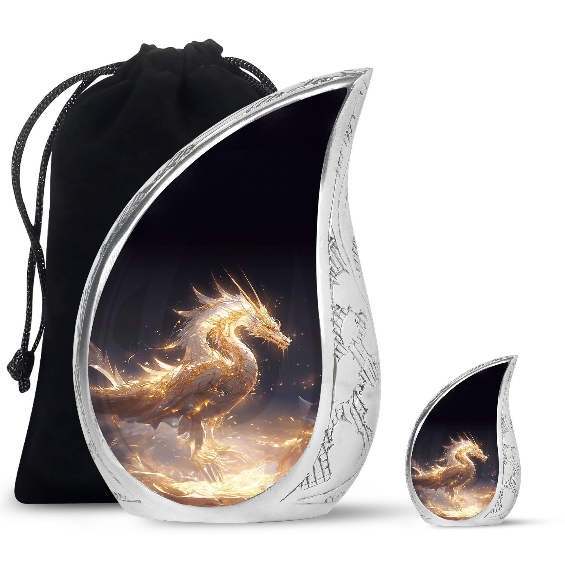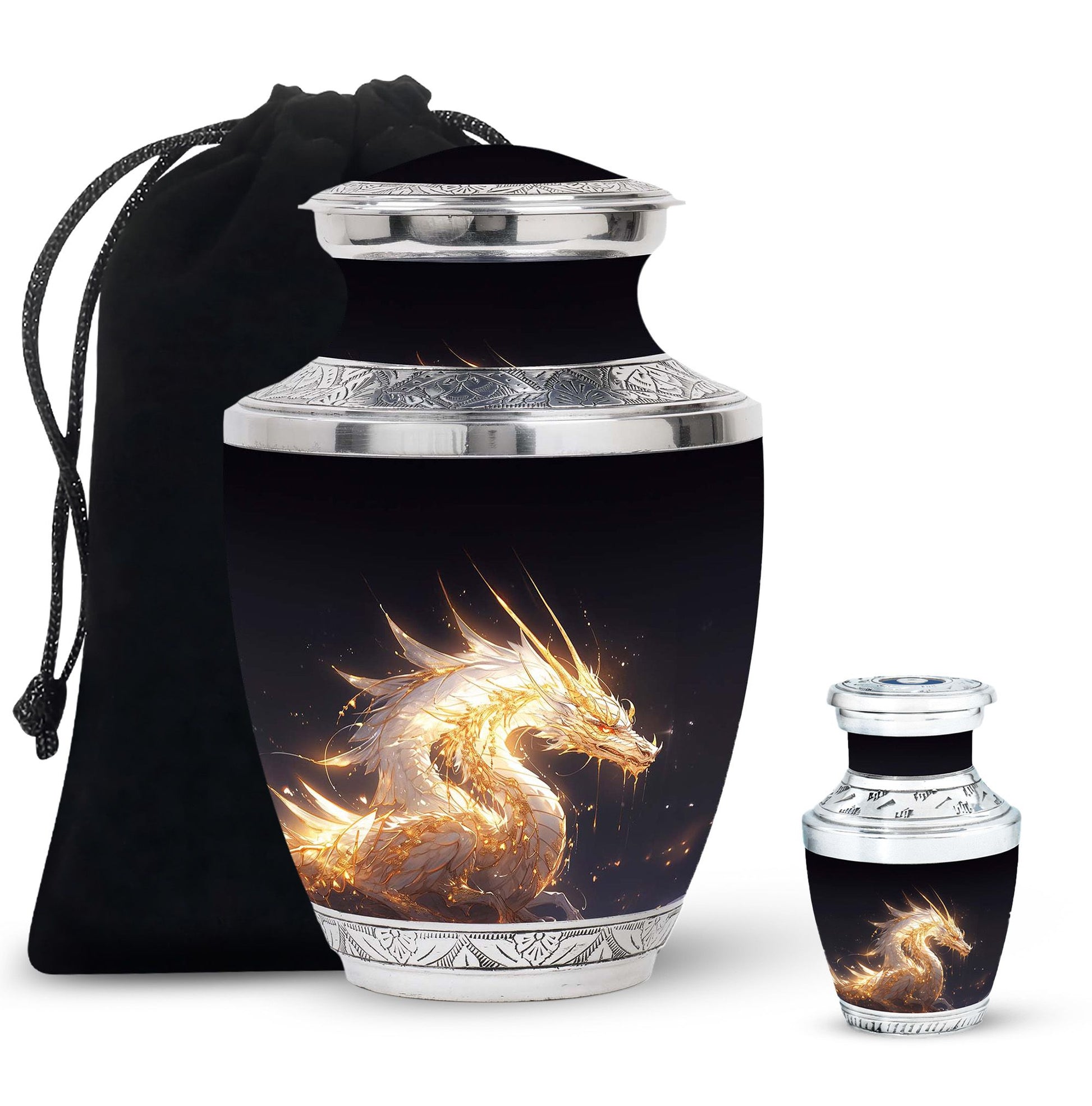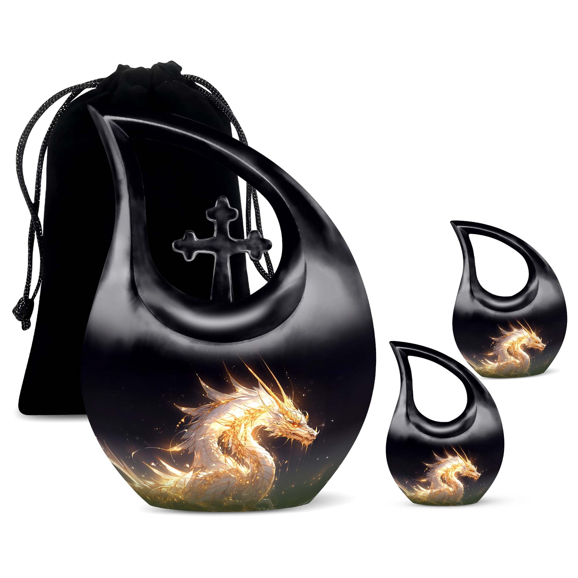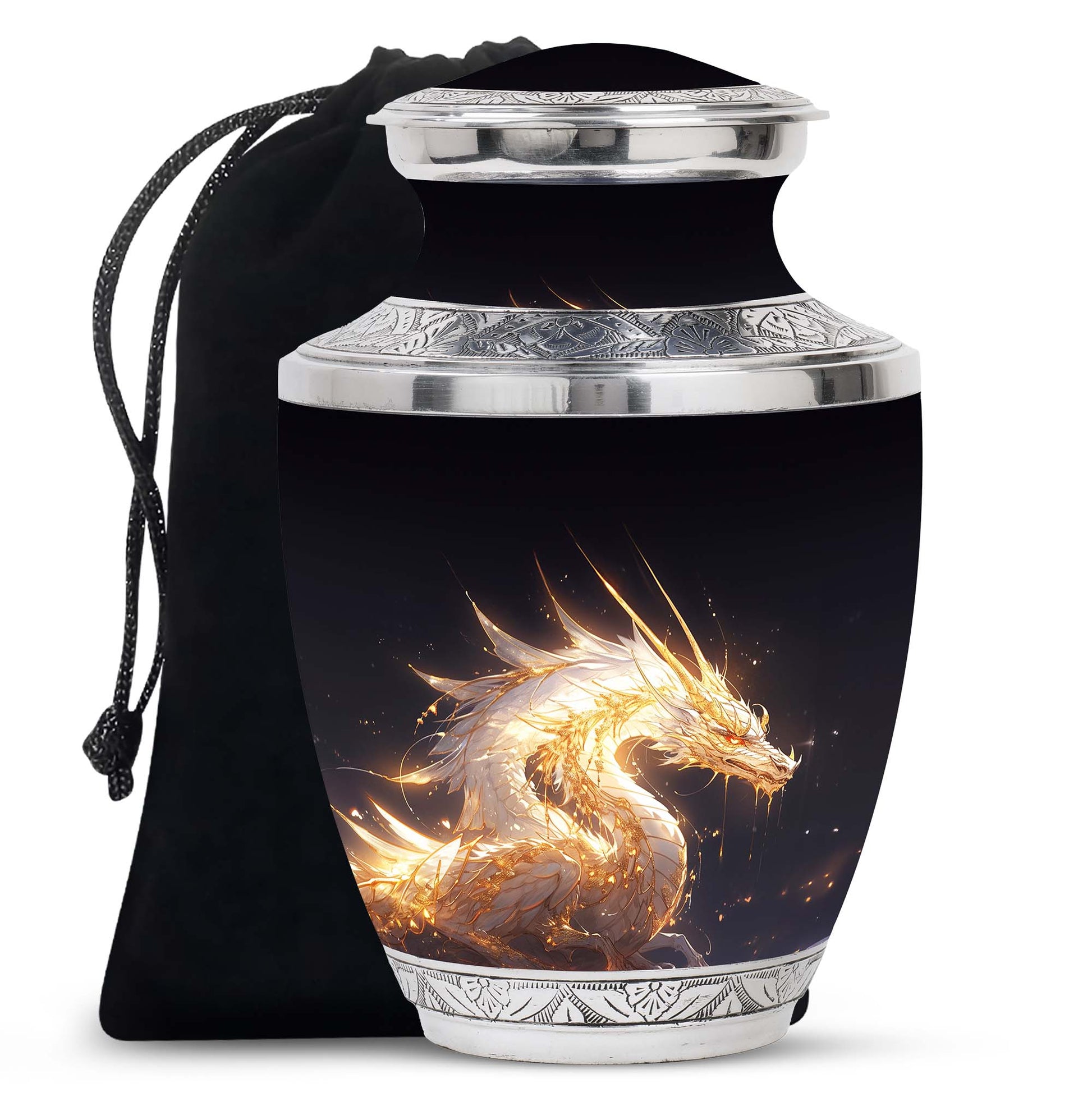 Expertly handcrafted, this large decorative urn showcases intricate dragon detailing, finished with a polished black sheen that symbolizes strength and tranquility. Made from high-quality aluminum, it ensures lasting durability and elegance. Ideal for home display or memorial ceremonies, this large urn for human ashes offers both style and functionality. Every detail reflects thoughtful craftsmanship, making it one of the most distinguished cremation urns large adult families can choose.