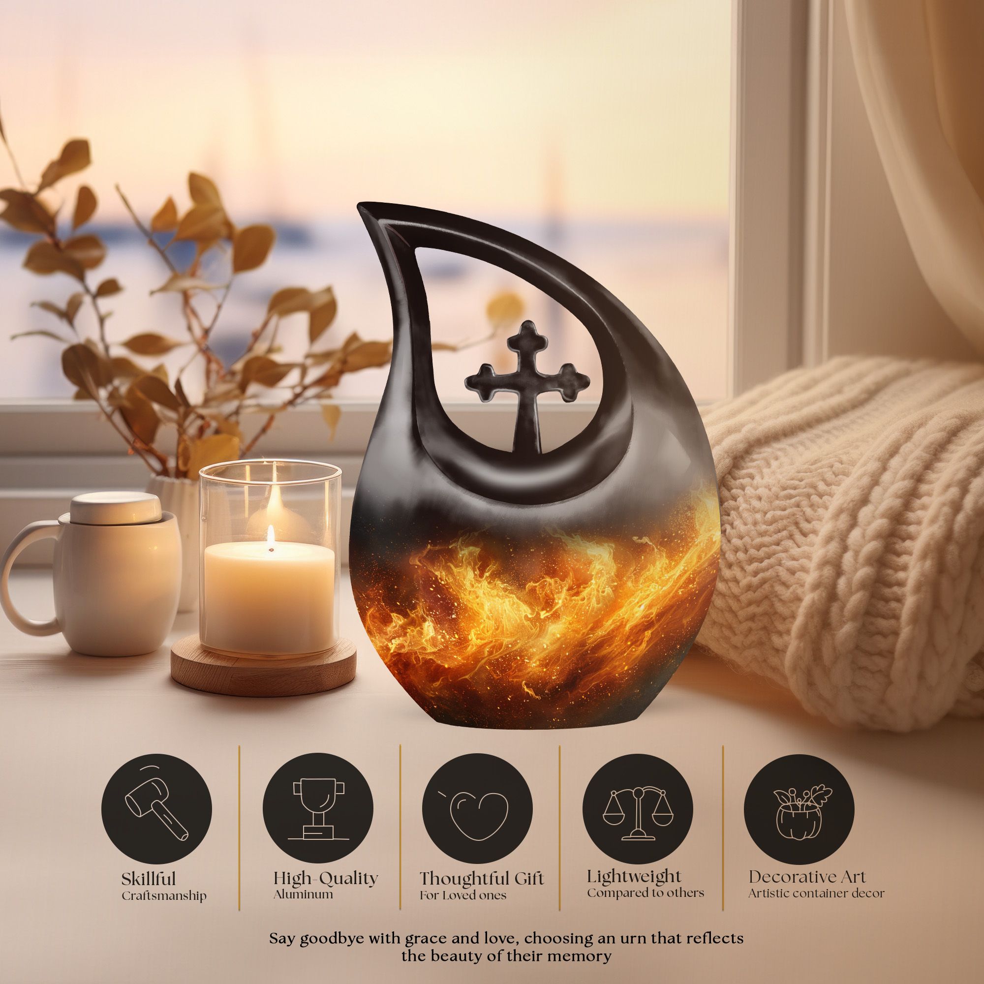 The Fire Burial Urn is a powerful symbol of strength, warmth, and eternal remembrance. Designed for both male and female memorials, this stunning piece offers a respectful resting place while supporting needs for urn keepsakes for human ashes, human ash keepsake options, and meaningful remembrance sharing.